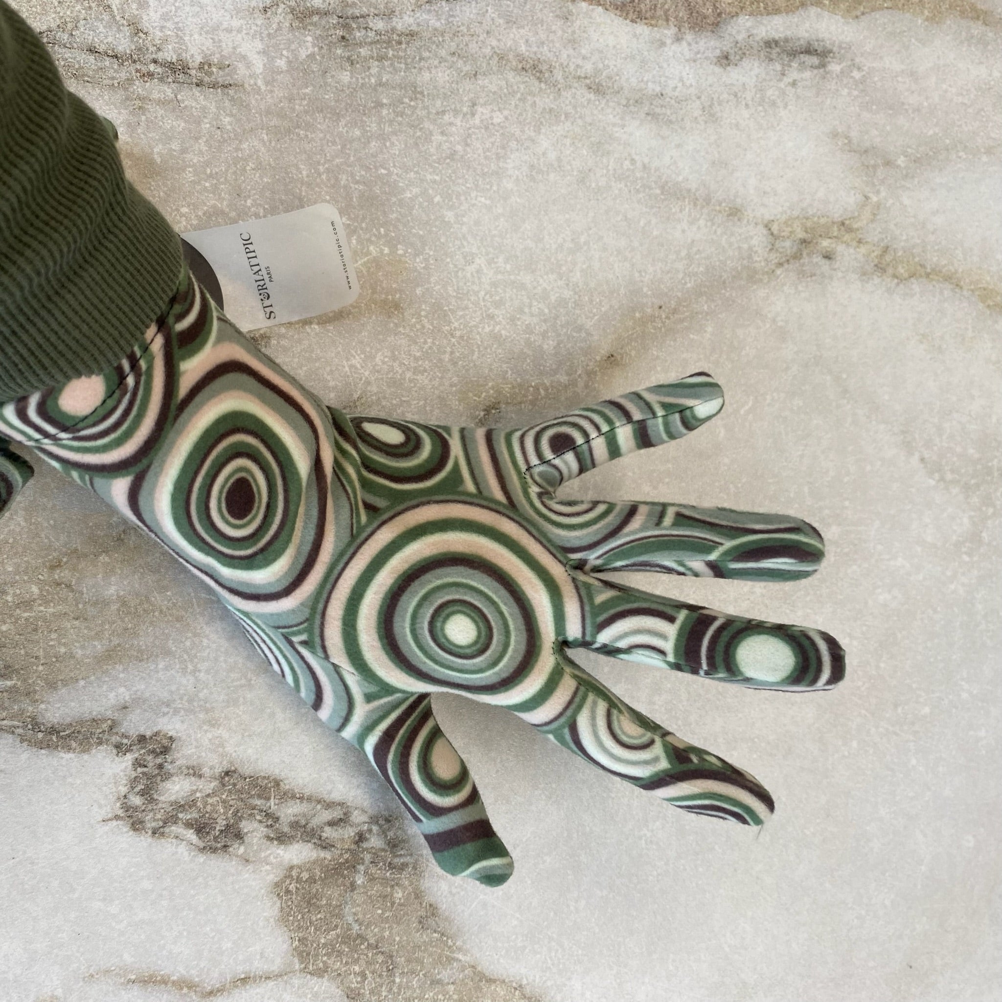 Gants à motifs de la marque Storiatipi Paris. Tissu très doux, légèrement extensible.