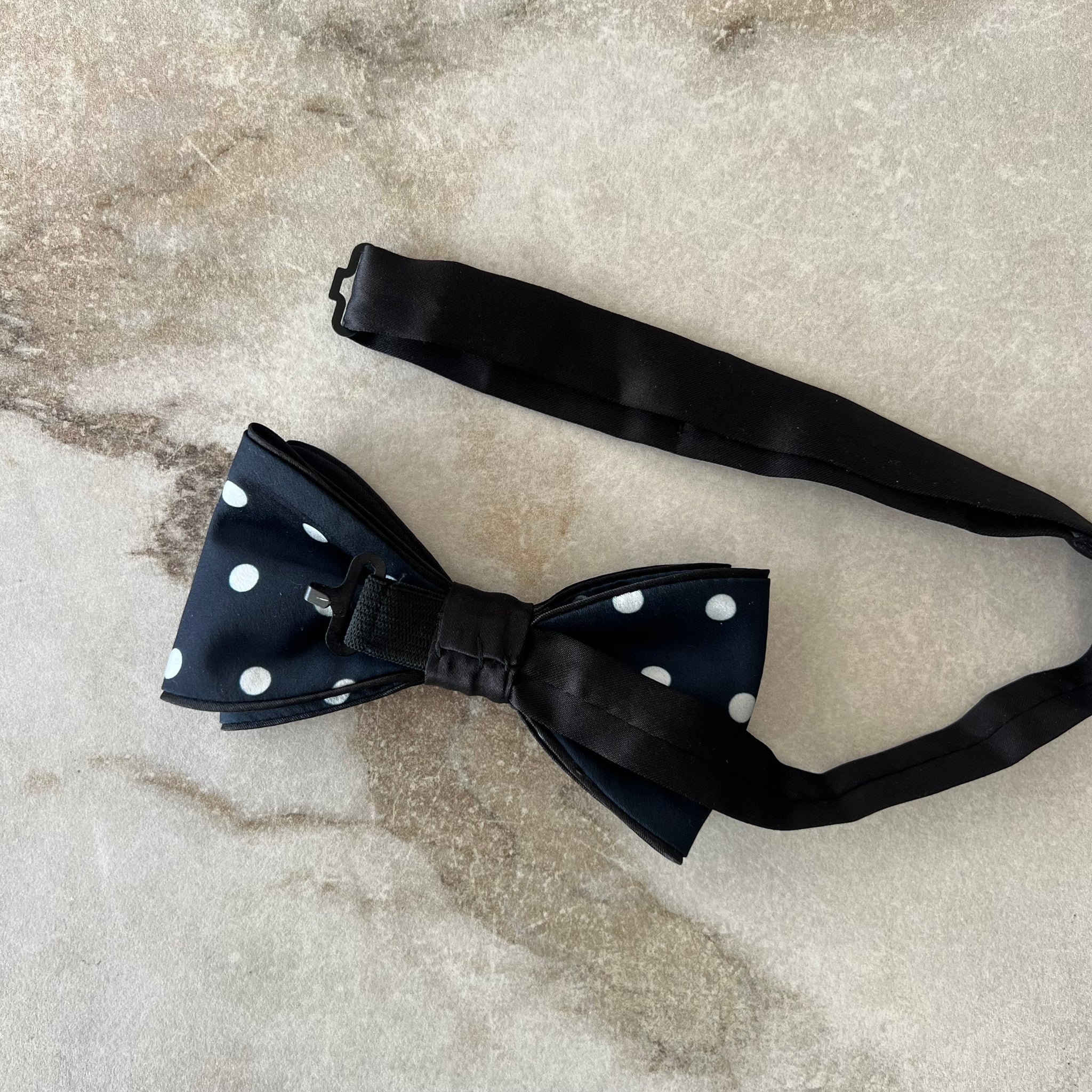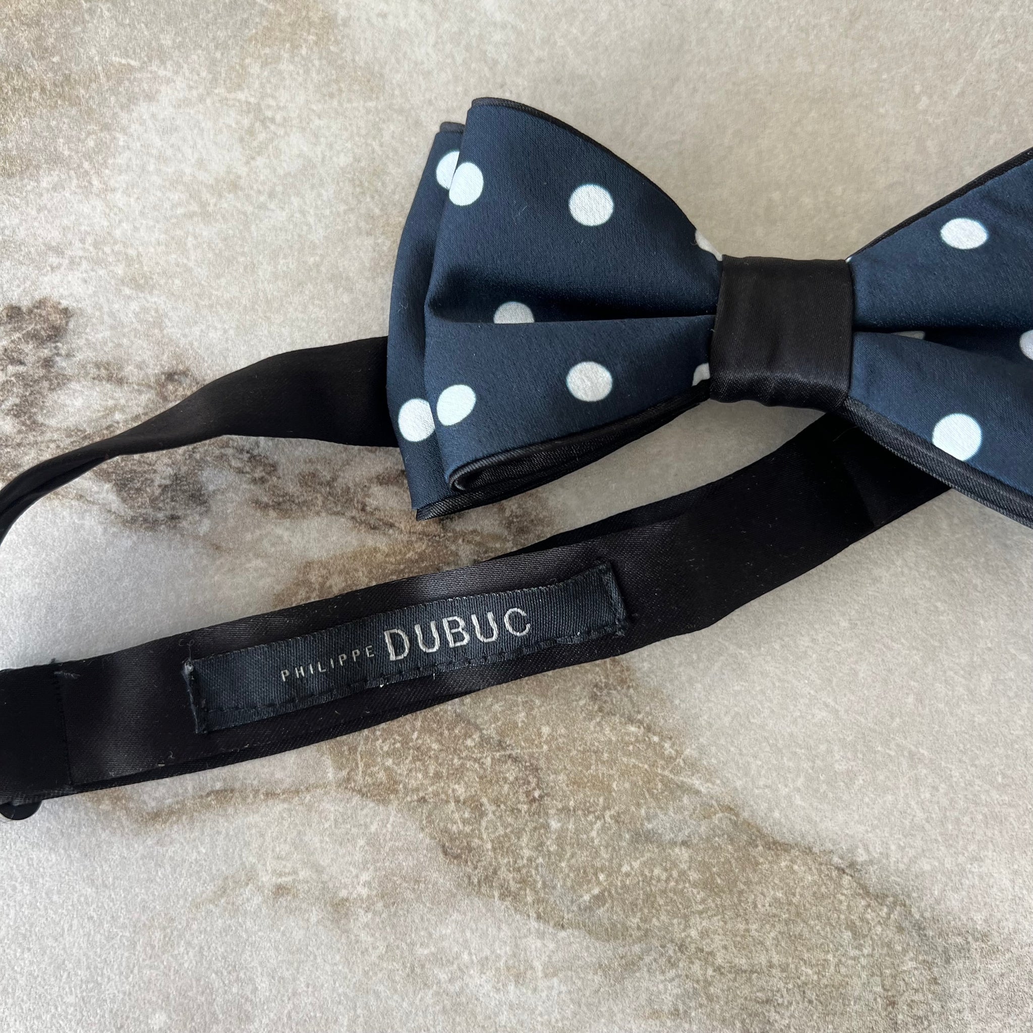 Noeud papillon Philippe Dubuc confectionné pour PROCURE - HALTE AU CANCER DE LA PROSTATE, Édition limitée 2020, longueur ajustable. Avec picot blanc sur fond bleu marin et contour noir.