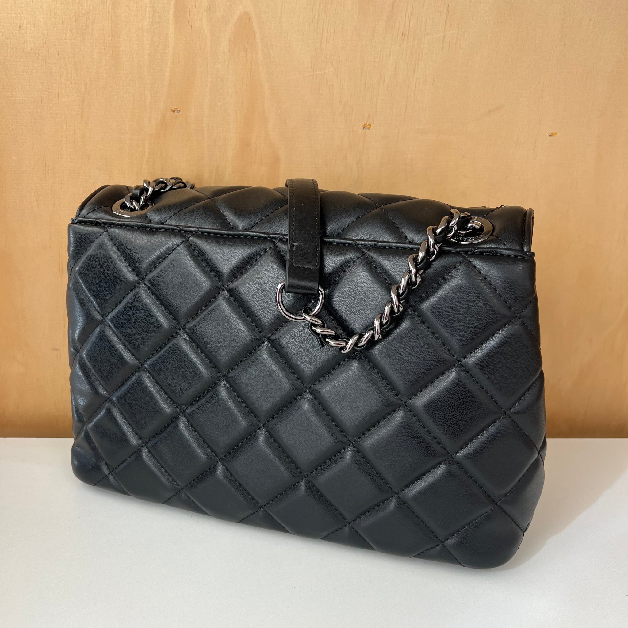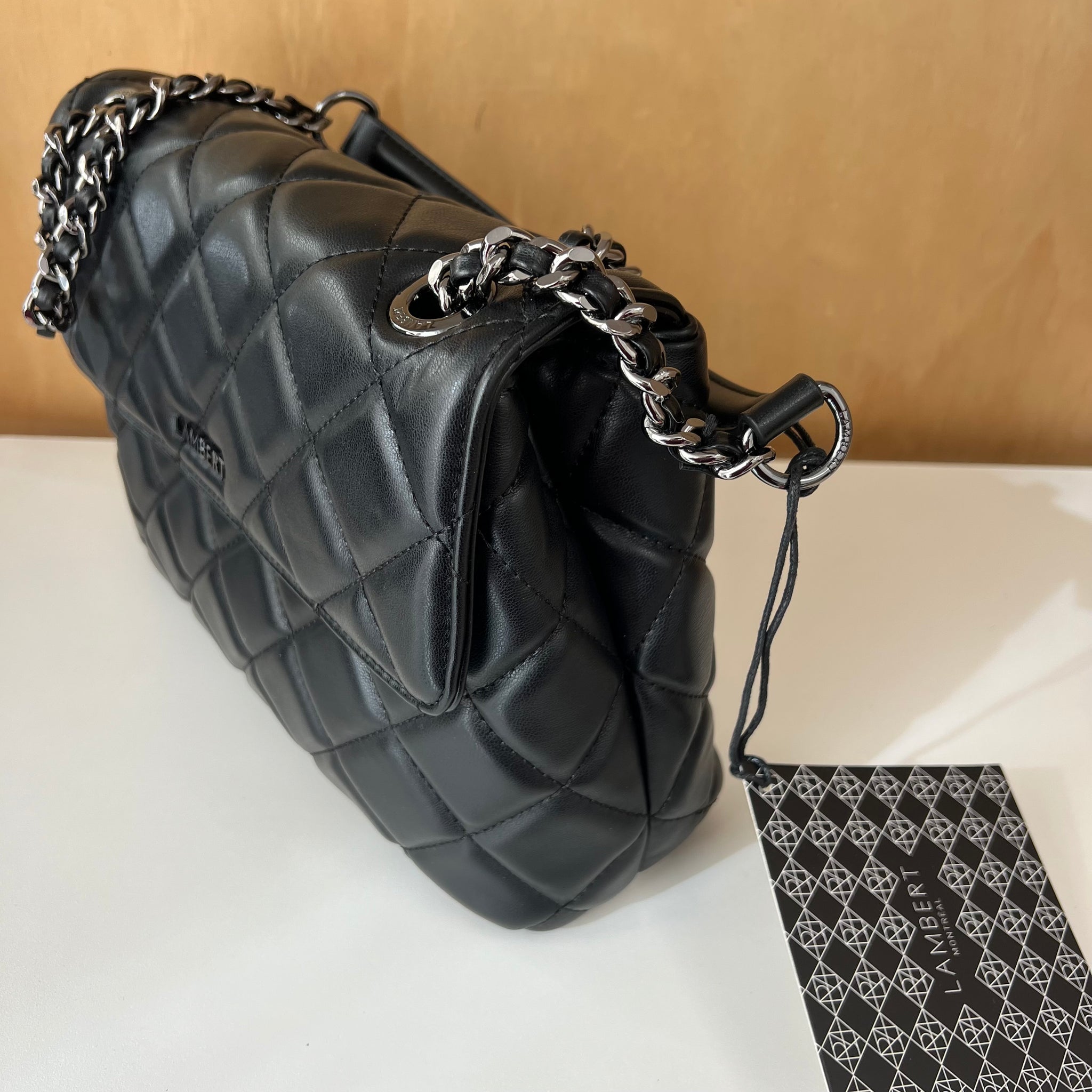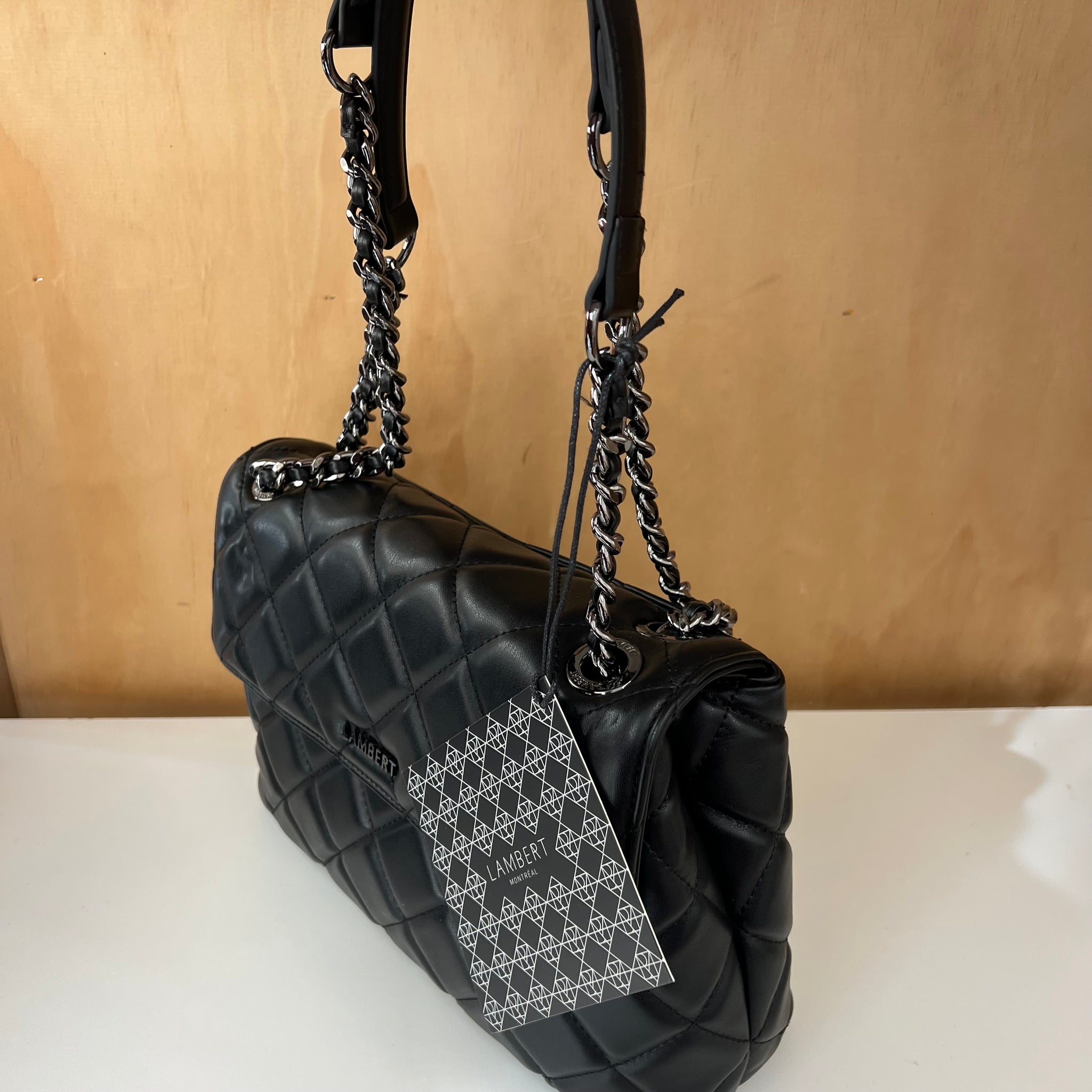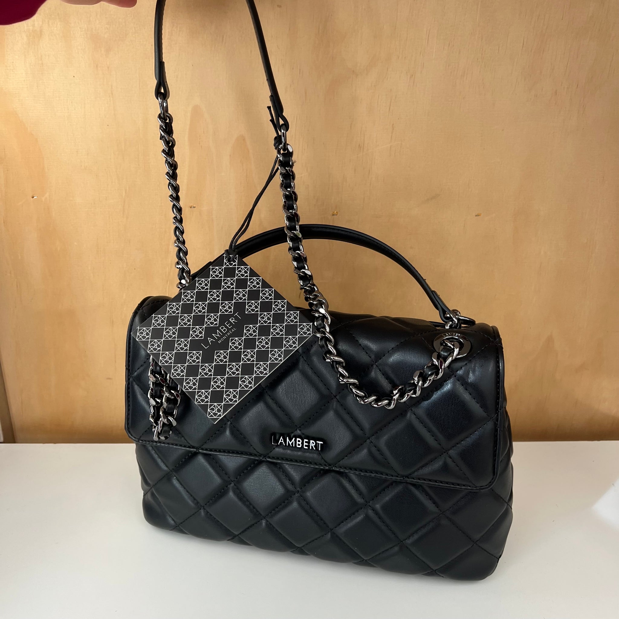 Le Sofia est un sac à main 2-en-1 entièrement monochrome. Comportant plusieurs pochettes, une chaine noire et le logo Lambert en lettrage 3D, pavanez-vous avec assurance. Le Sofia est d'une dimension parfaite pour permettre un mode de vie convivial et pratique. Le Sofia se porte de 2 façons: À l’épaule (avec la chaîne doublée) ou en sac bandoulière (en tirant sur une des chaînes)