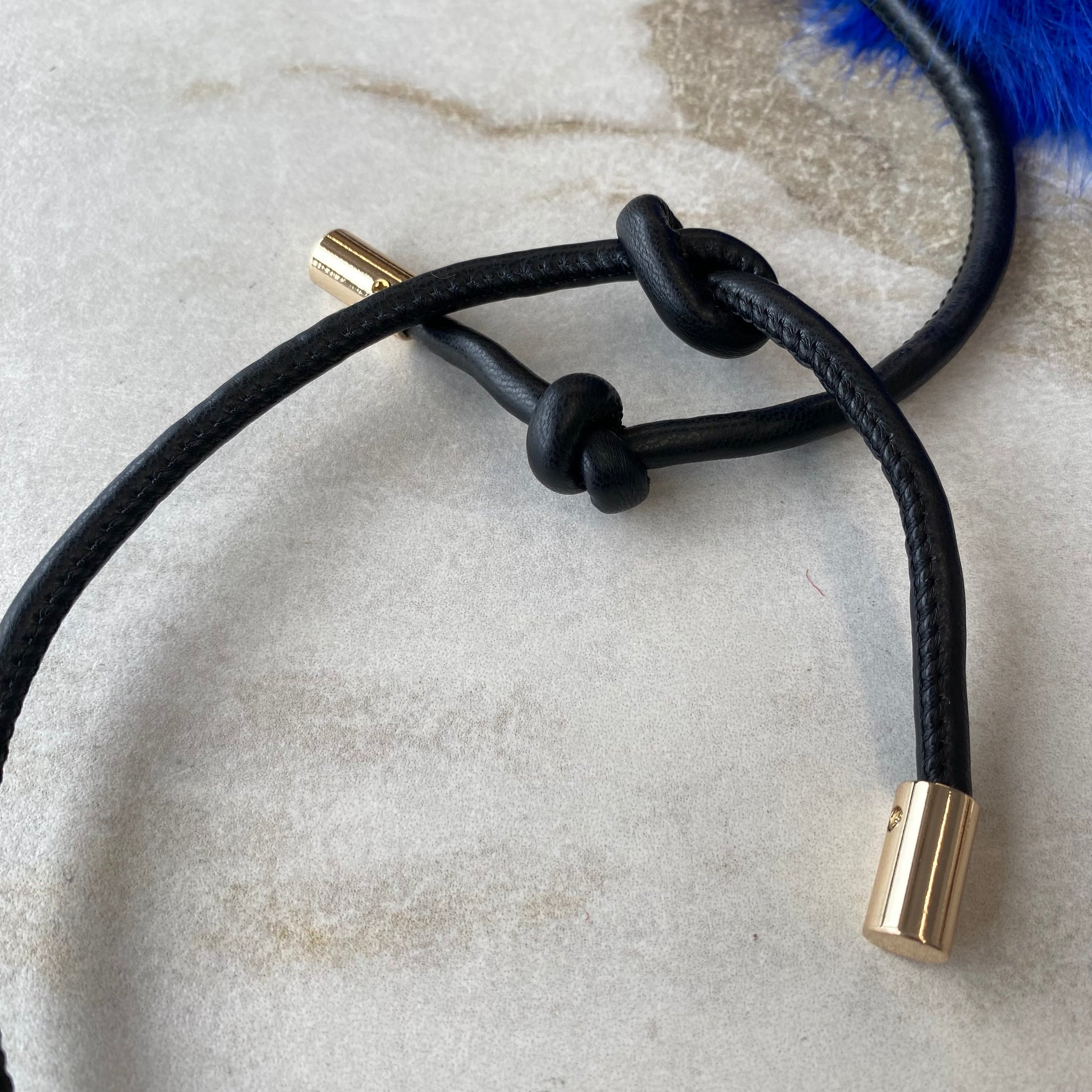 Sac à main rectangulaire bleu de la marque Atoll Palme modèle en fausse fourrure. Corde bandoulière réglable.