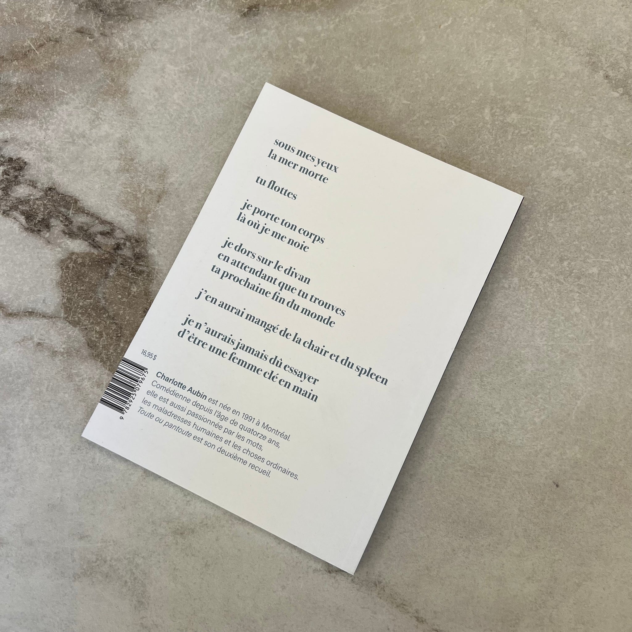 Recueil de poésie Toute ou pantoute de Charlotte Aubin. D'une valeur de 16,95$