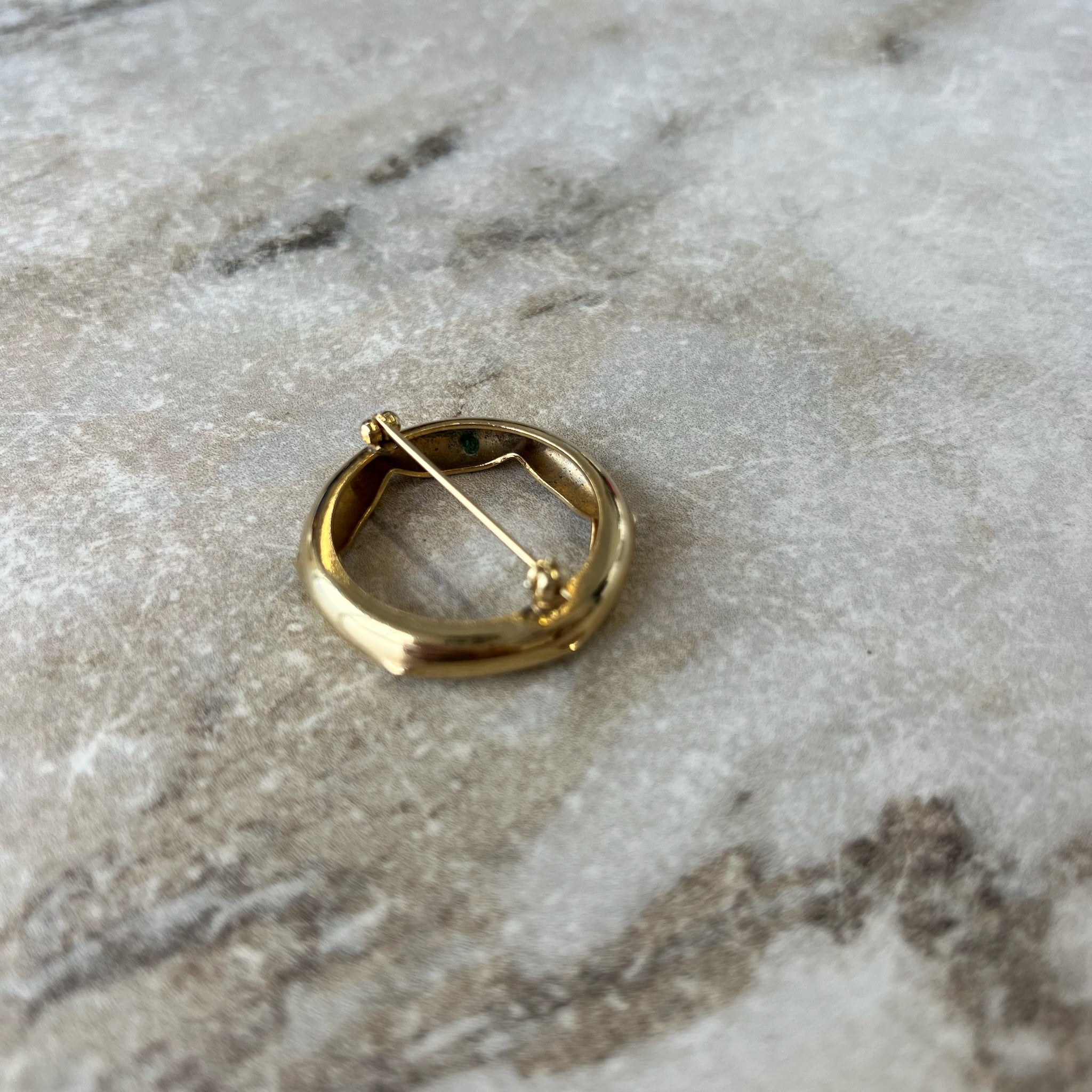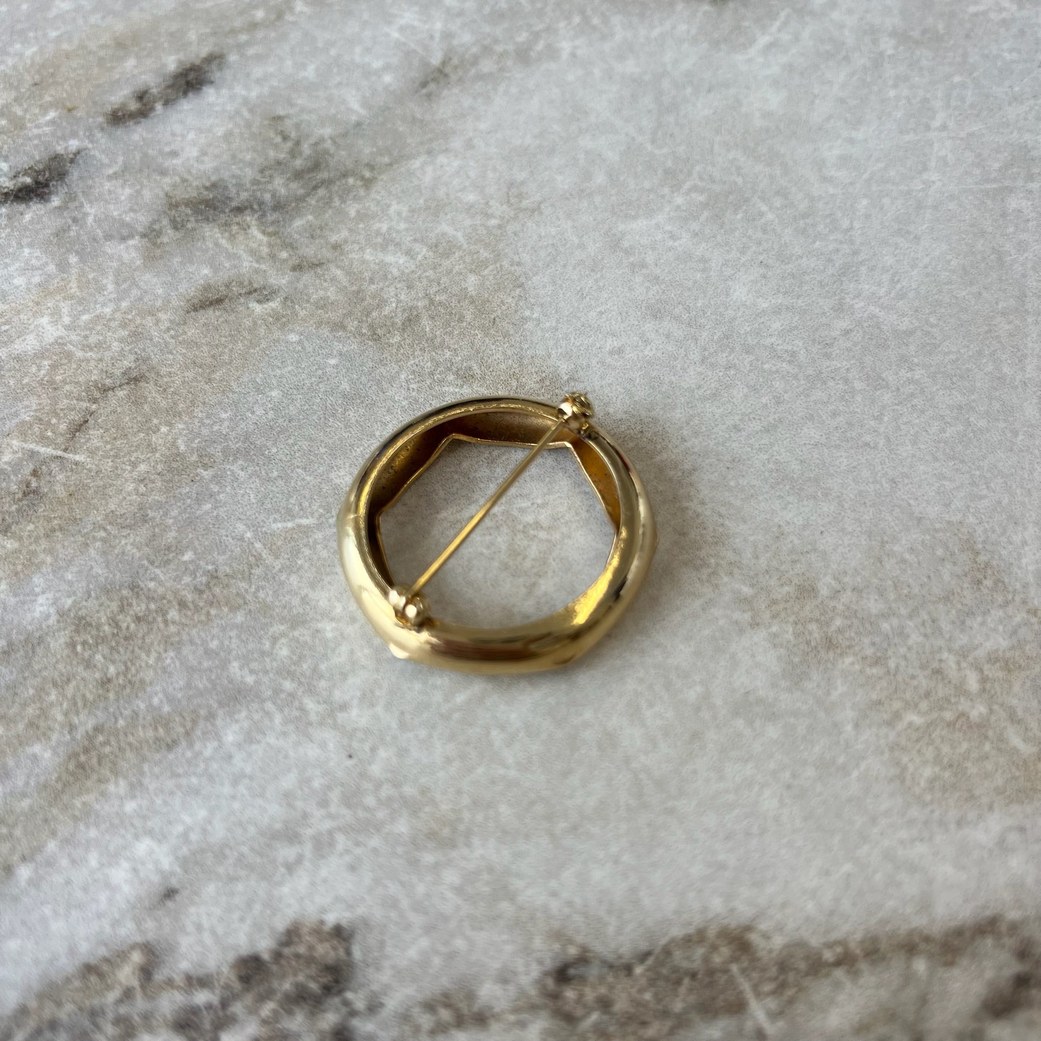 Cette broche dorée présente une forme hexagonale aux contours arrondis, offrant un mélange harmonieux des formes. Un accessoire polyvalent et raffiné, idéal pour offrir ou compléter votre tenu avec originalité.