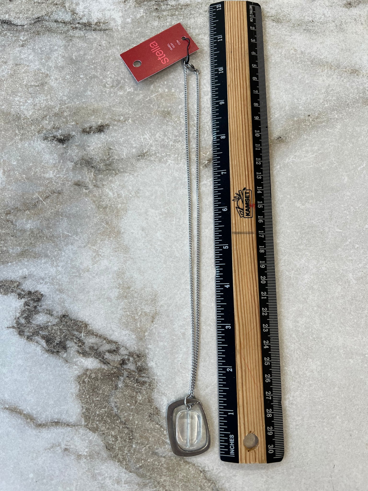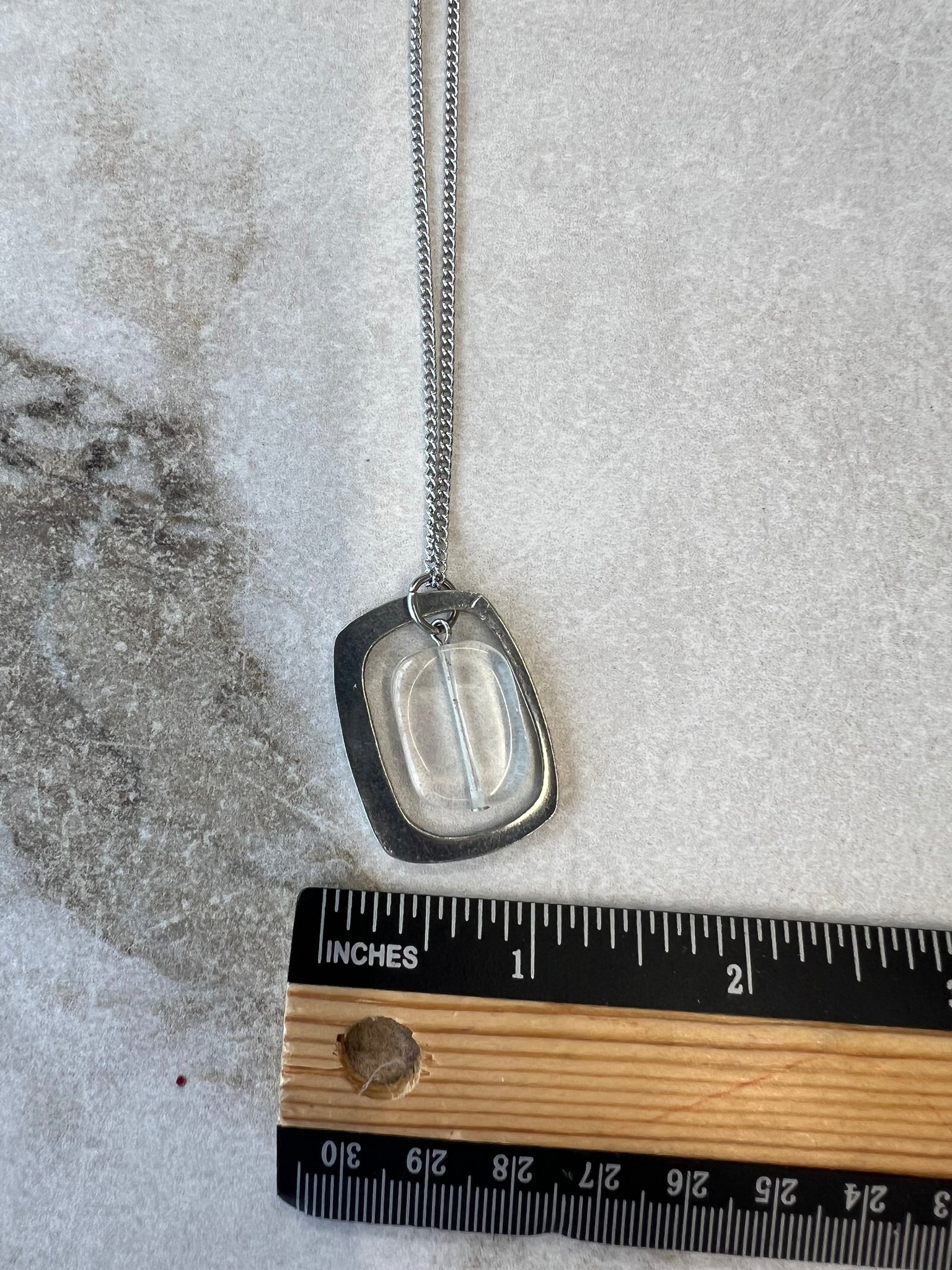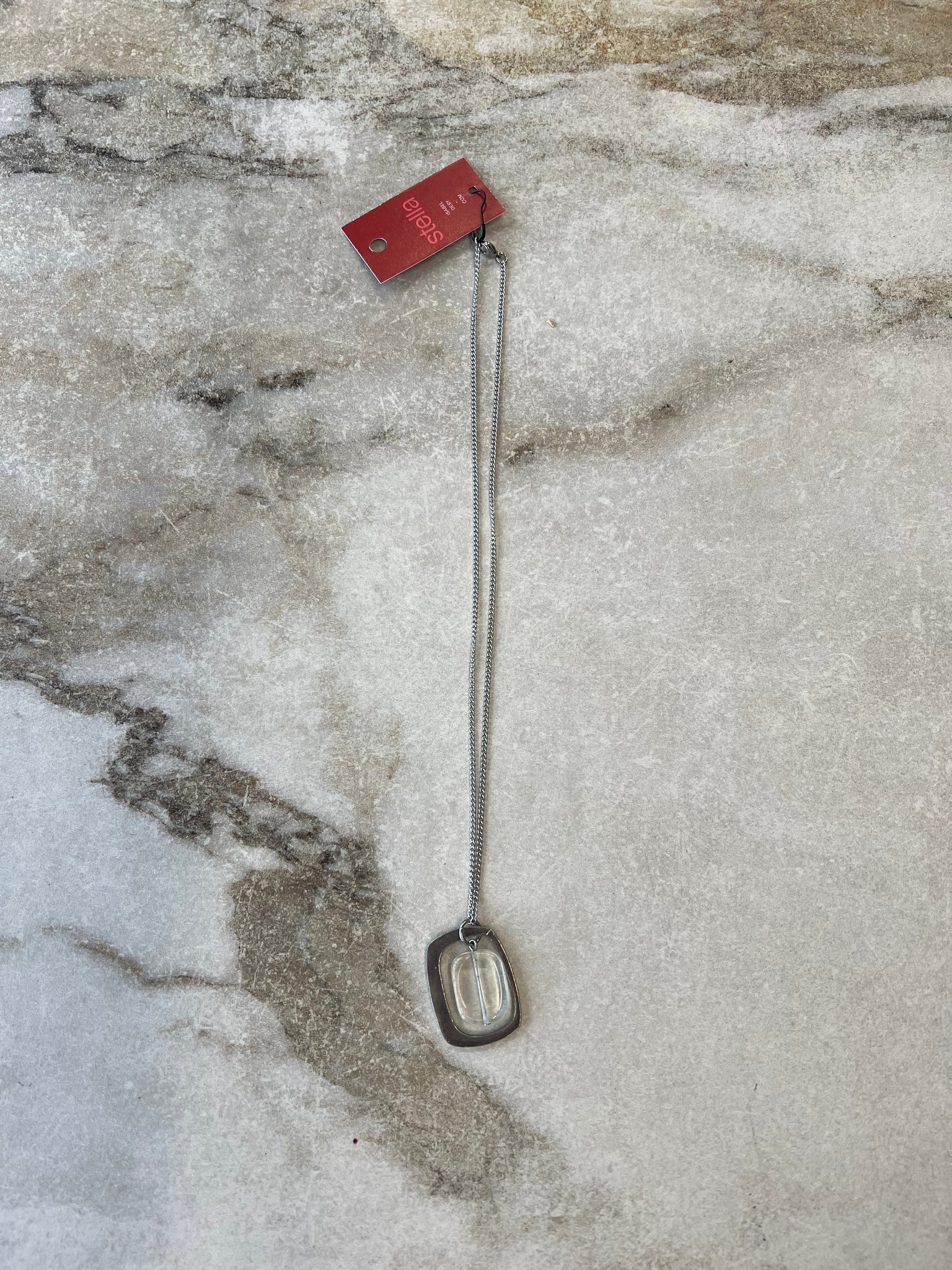Chaîne en inox de couleur argent avec 2 breloques dont une en étain et une en verre transparent