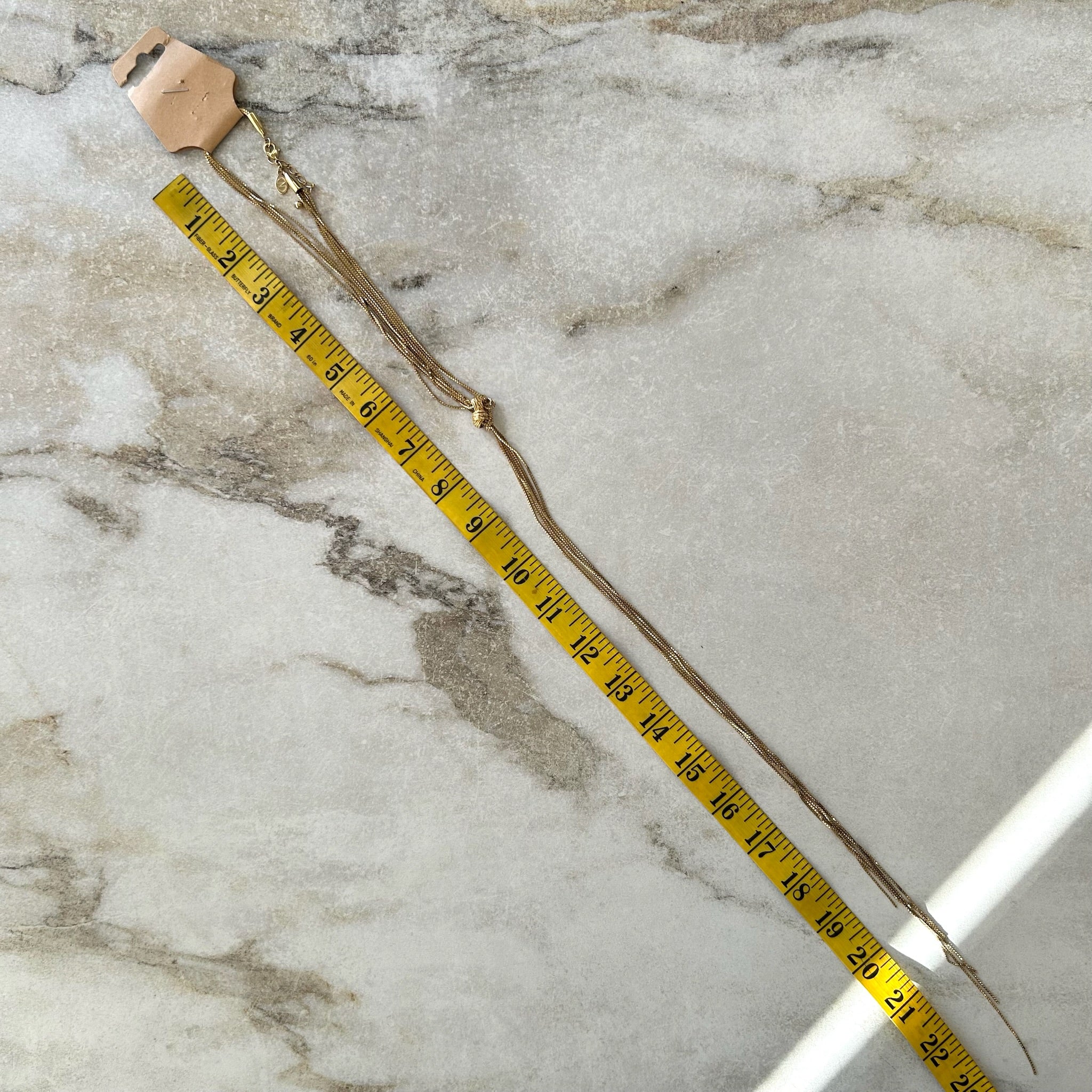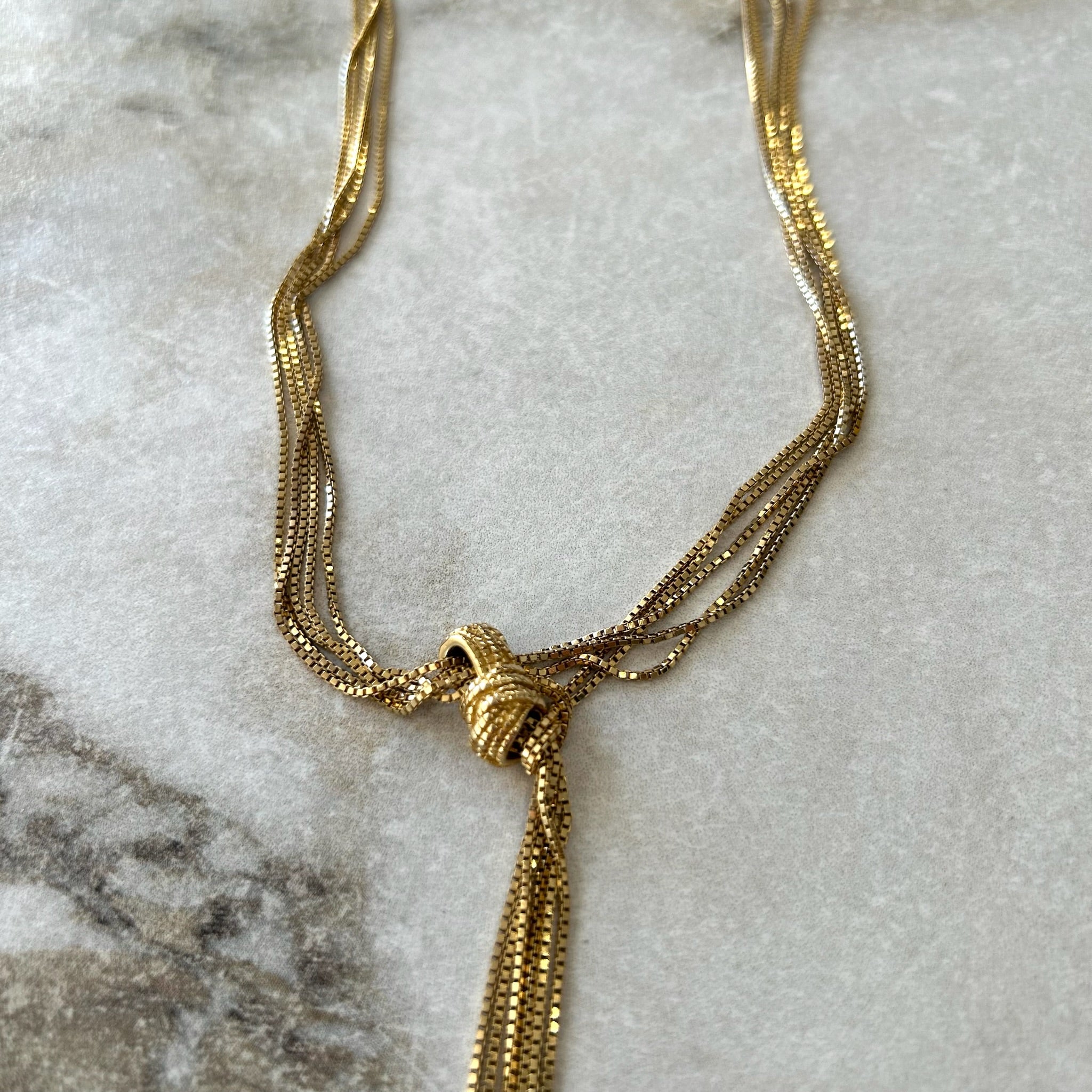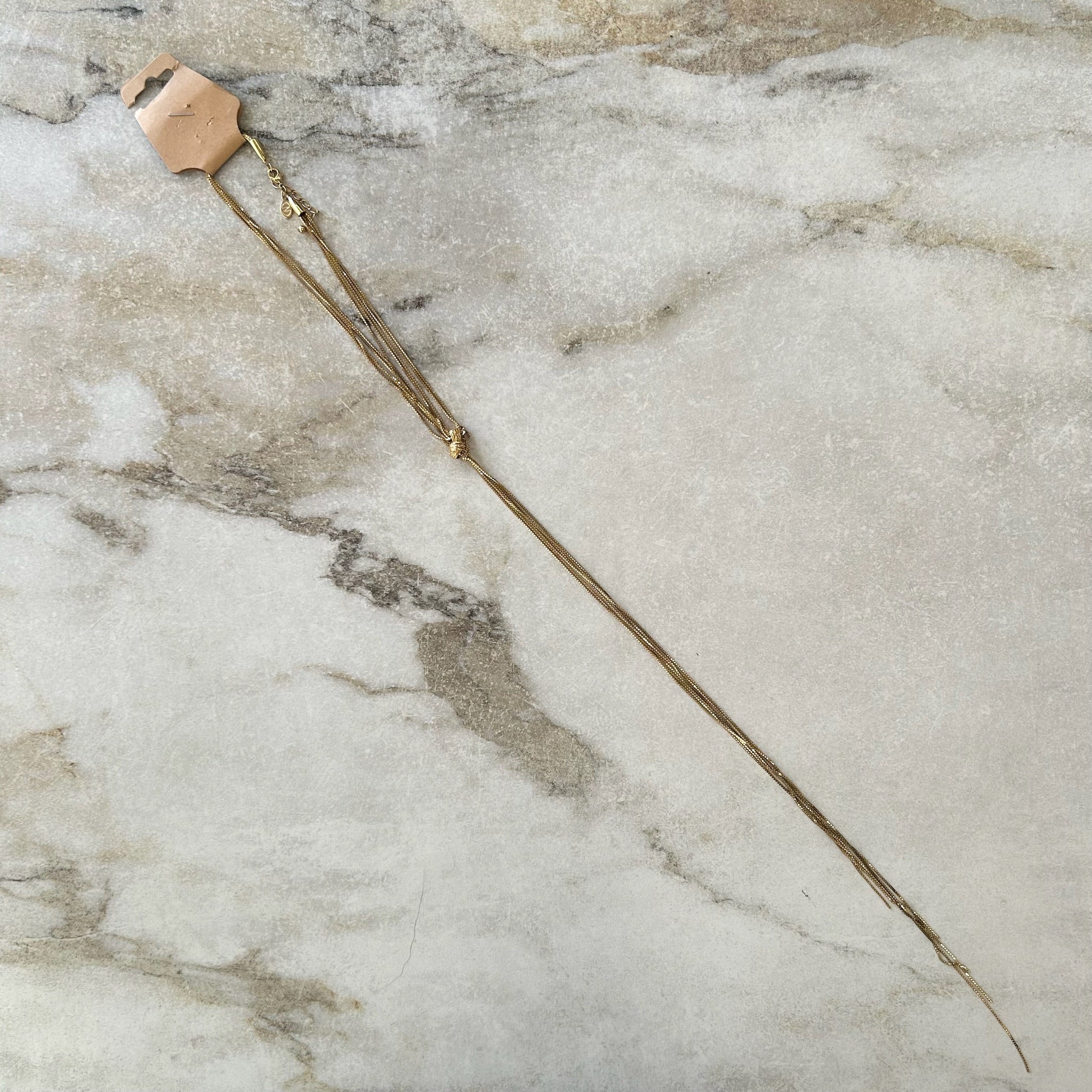 Très longue chaîne avec un nœud de la marque Caroline Néron. Chaine ajustable.