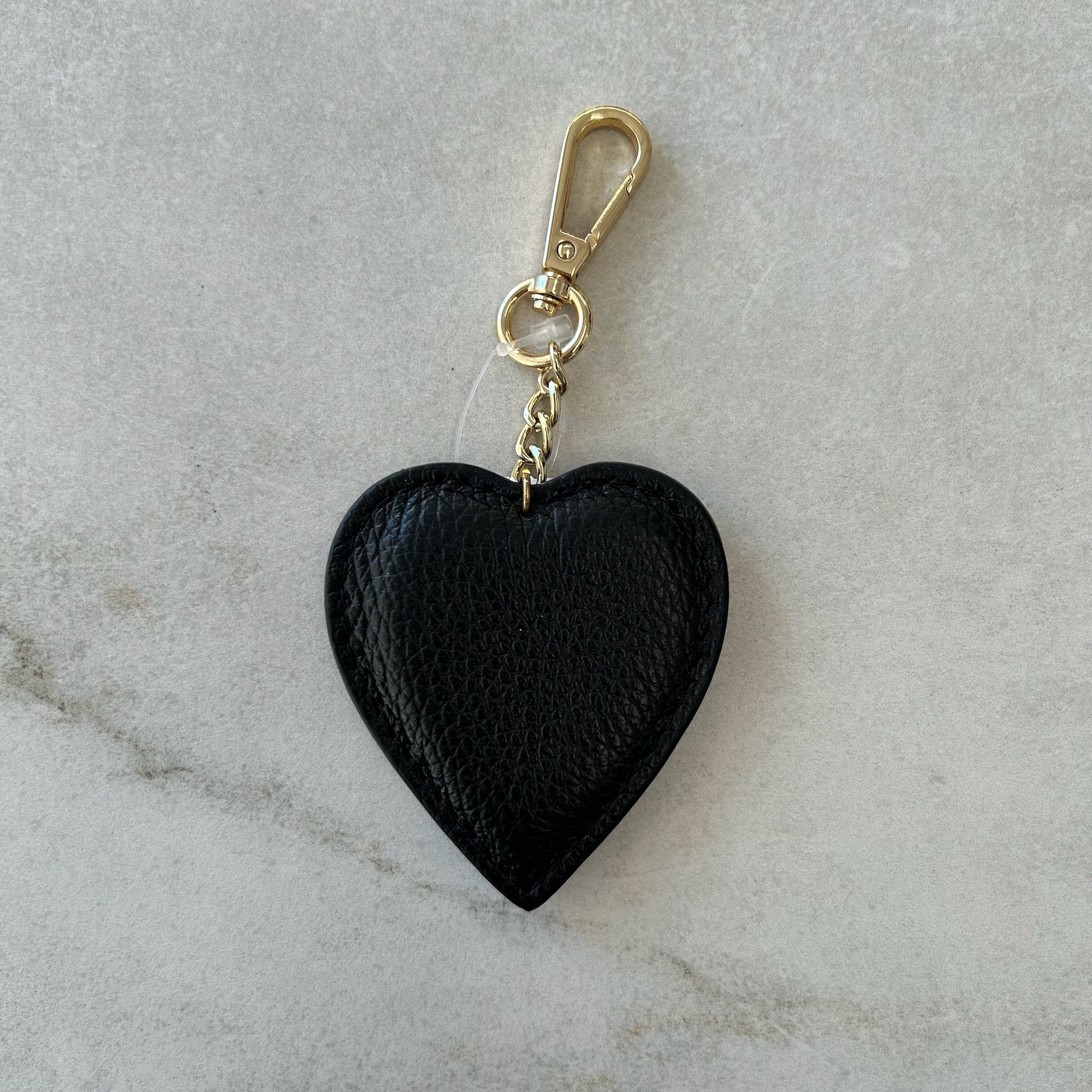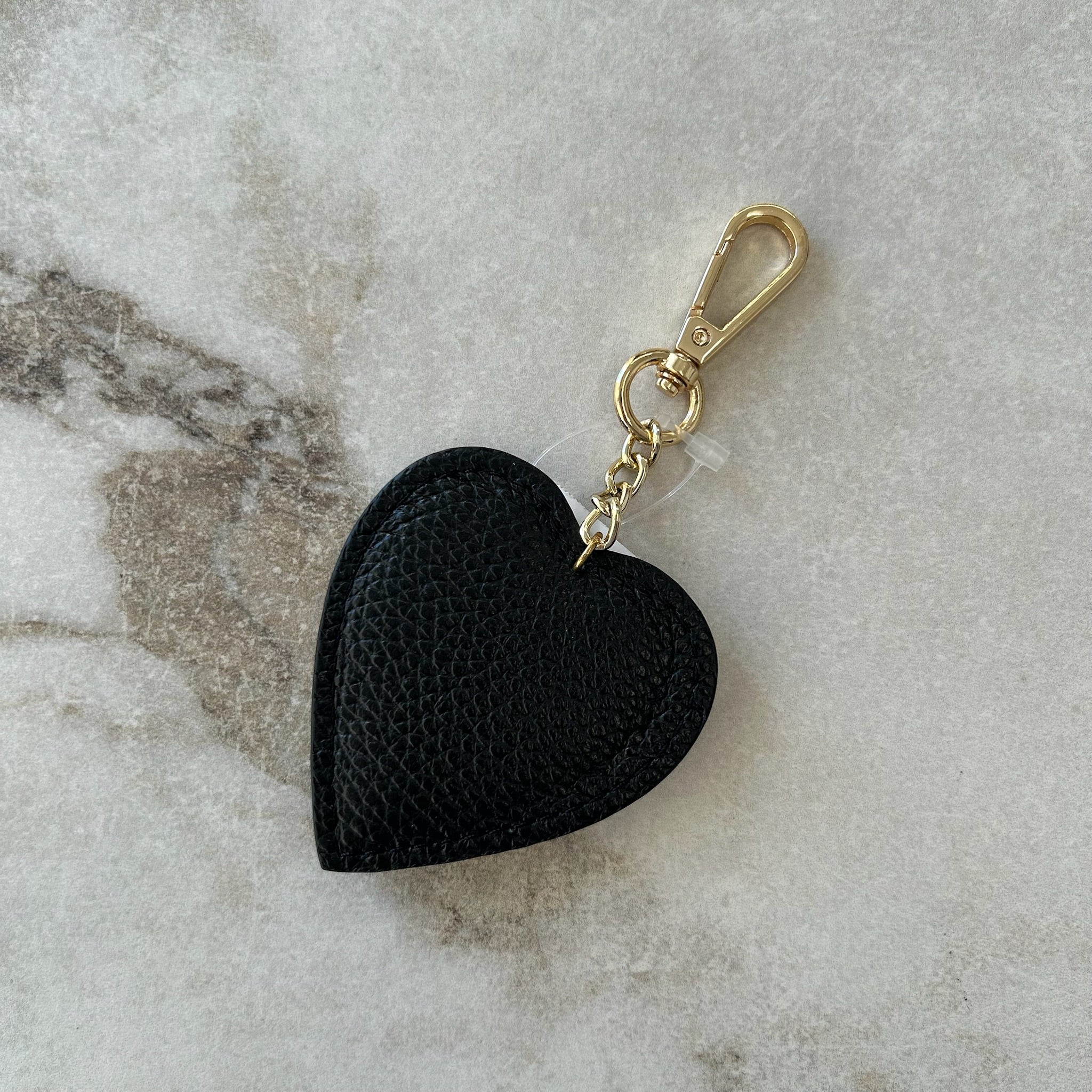 Porte-clé en forme de cœur en cuir avec chaine dorée.