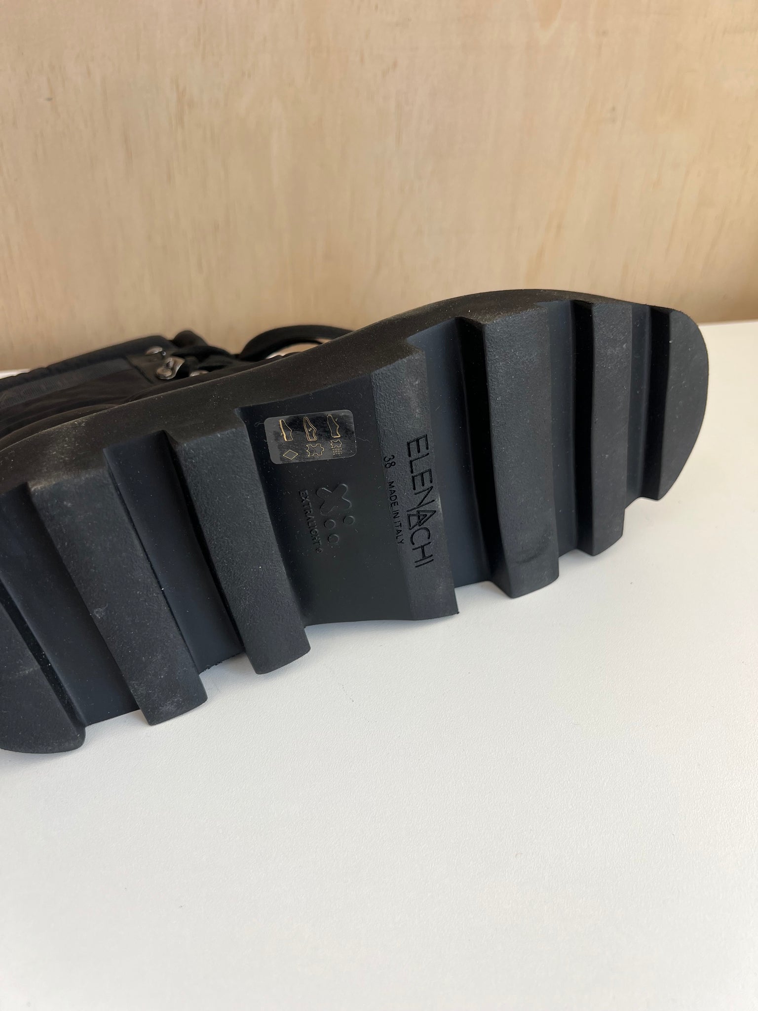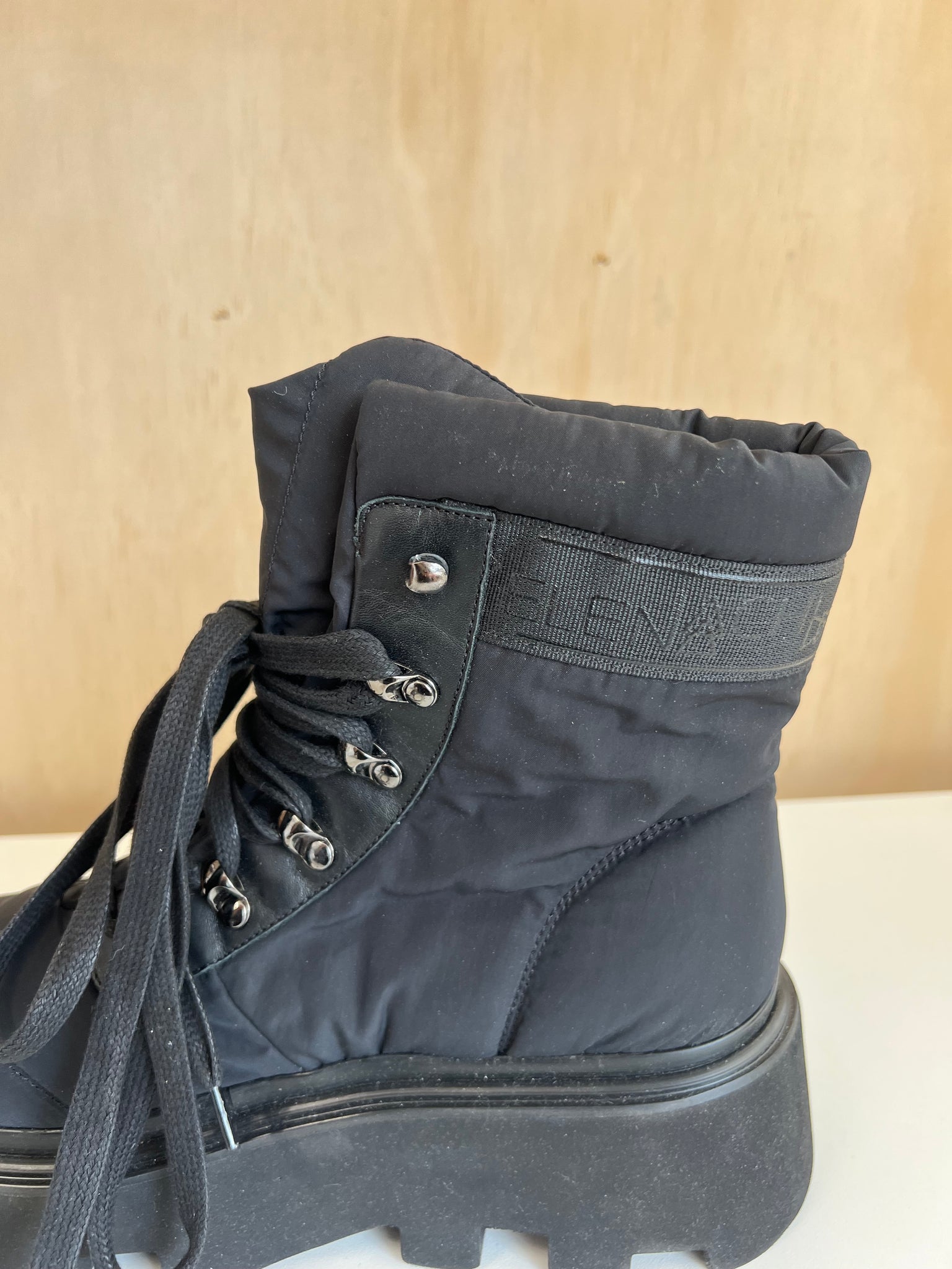 Bottes matelassée de la marque italienne Elena Richi modèle Zoom Nero. à lacets, semelle compensée Une touche audacieuse et stylée à vos tenues hivernales. Légères et dotées d'un intérieur en cuir. D'une valeur de 485$