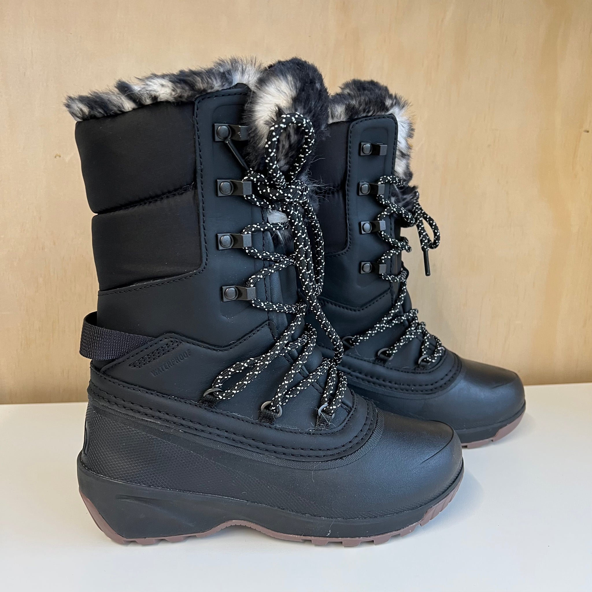 Bottes imperméables pour femme de la marque The North Face modèle Shellista IV Luxe. Avec une empeigne qui combine le cuir pleine fleur avec du P.E.T. indéchirable recyclé. Doublure du col en fausse fourrure et quincaillerie antirouille.