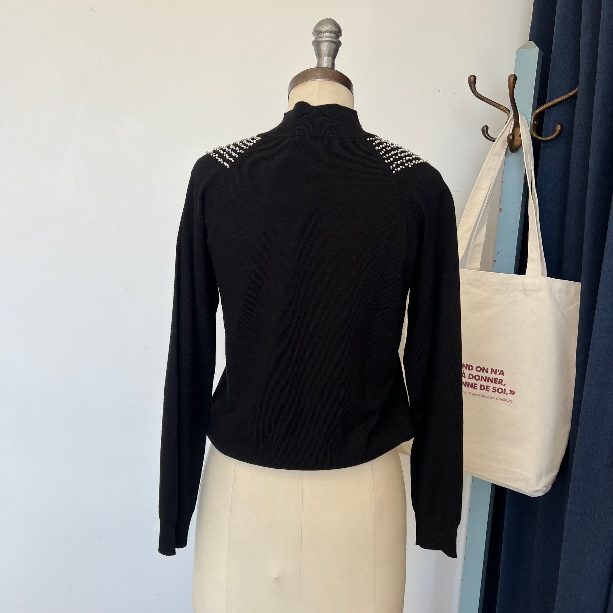 Pull à col cheminée de la marque Leo & Ugo. Avec plastron perlé. D'une valeur de 295$.