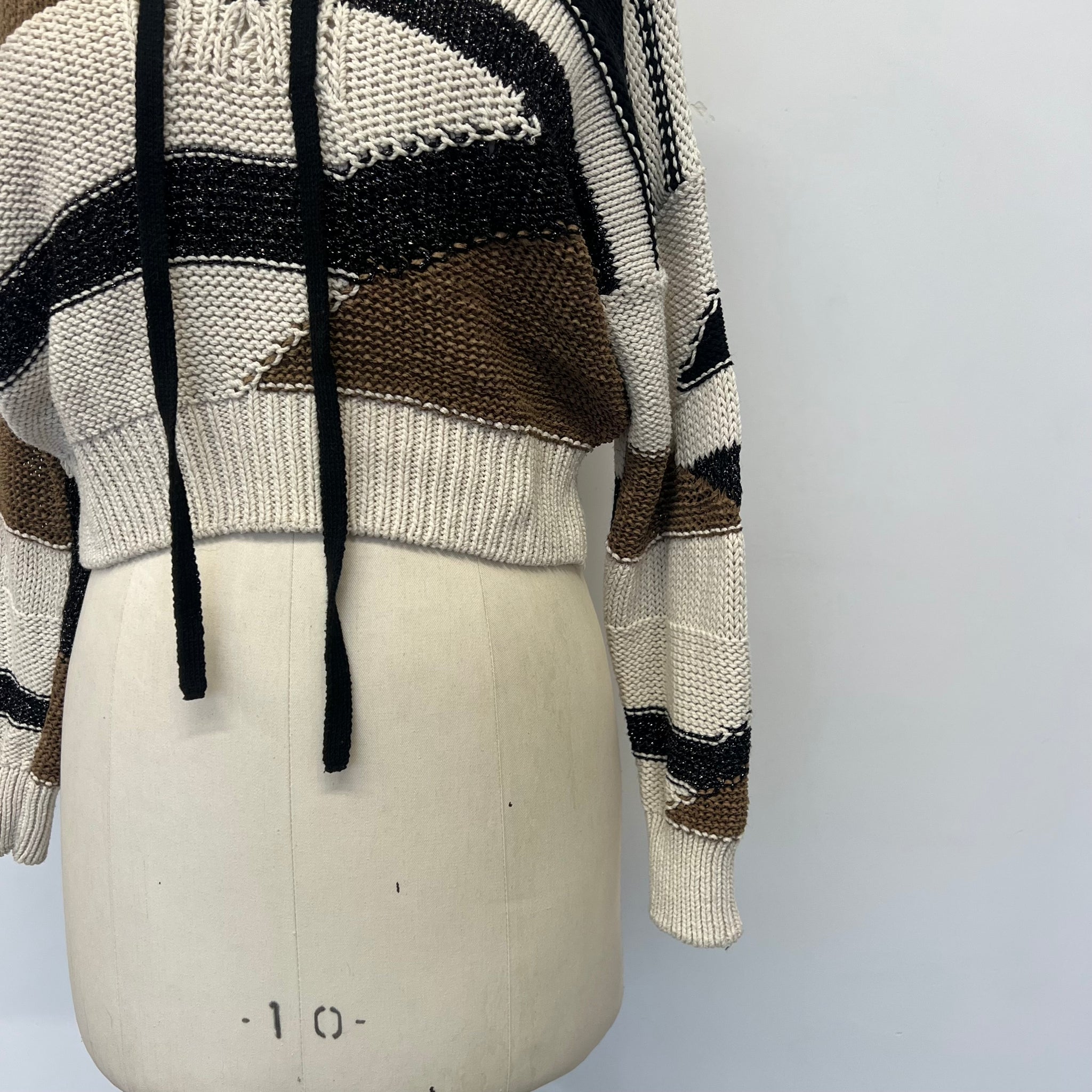Tricot court triclore de la marque italienne Liu Jo, avec cordon ajustable à la poitrine. Semi transparent.