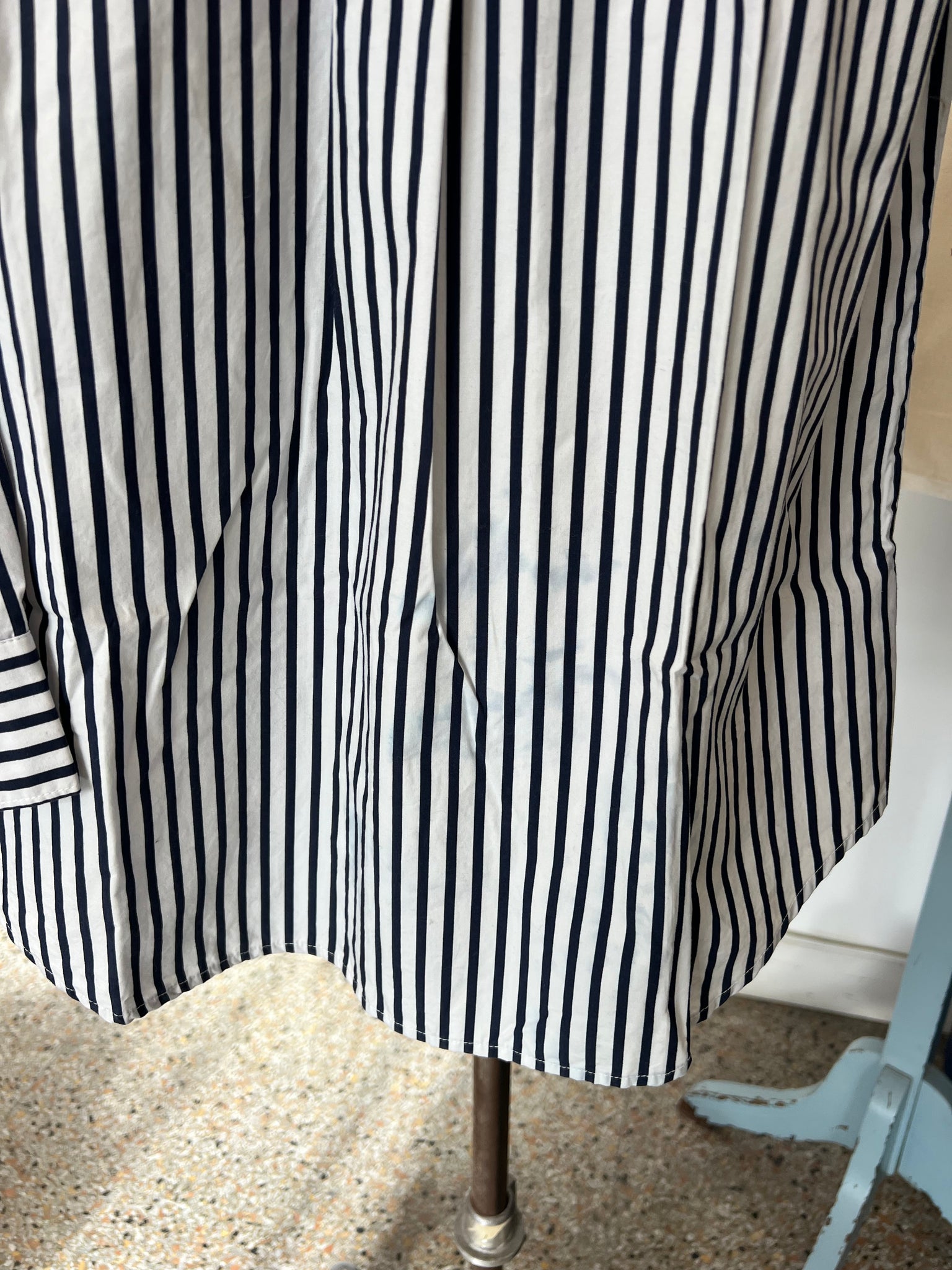 oupe droite classique, polyvalente se porte aussi bien seule qu’en superposition. Son ourlet arrondi enveloppe gracieusement votre silhouette et son pli au dos assure une grande liberté de mouvement. Double boutons aux manches, D'une valeur de 130$.