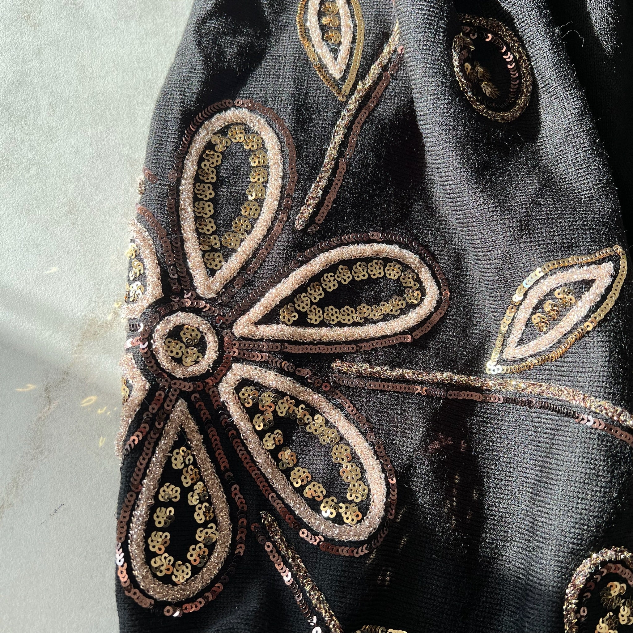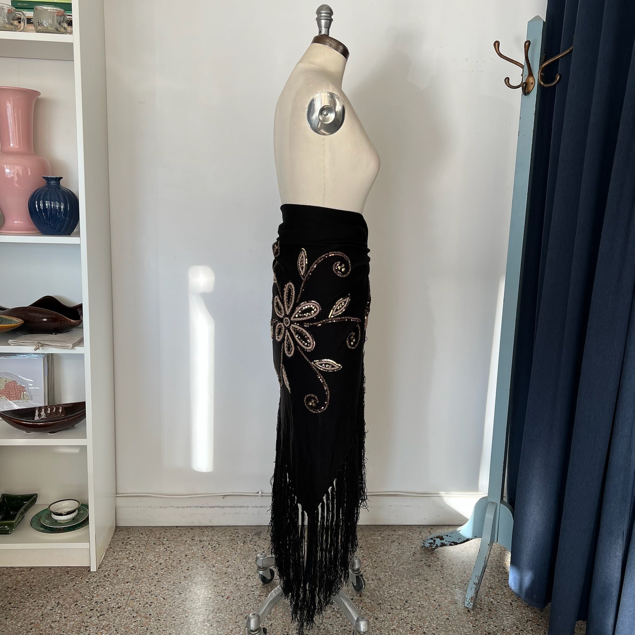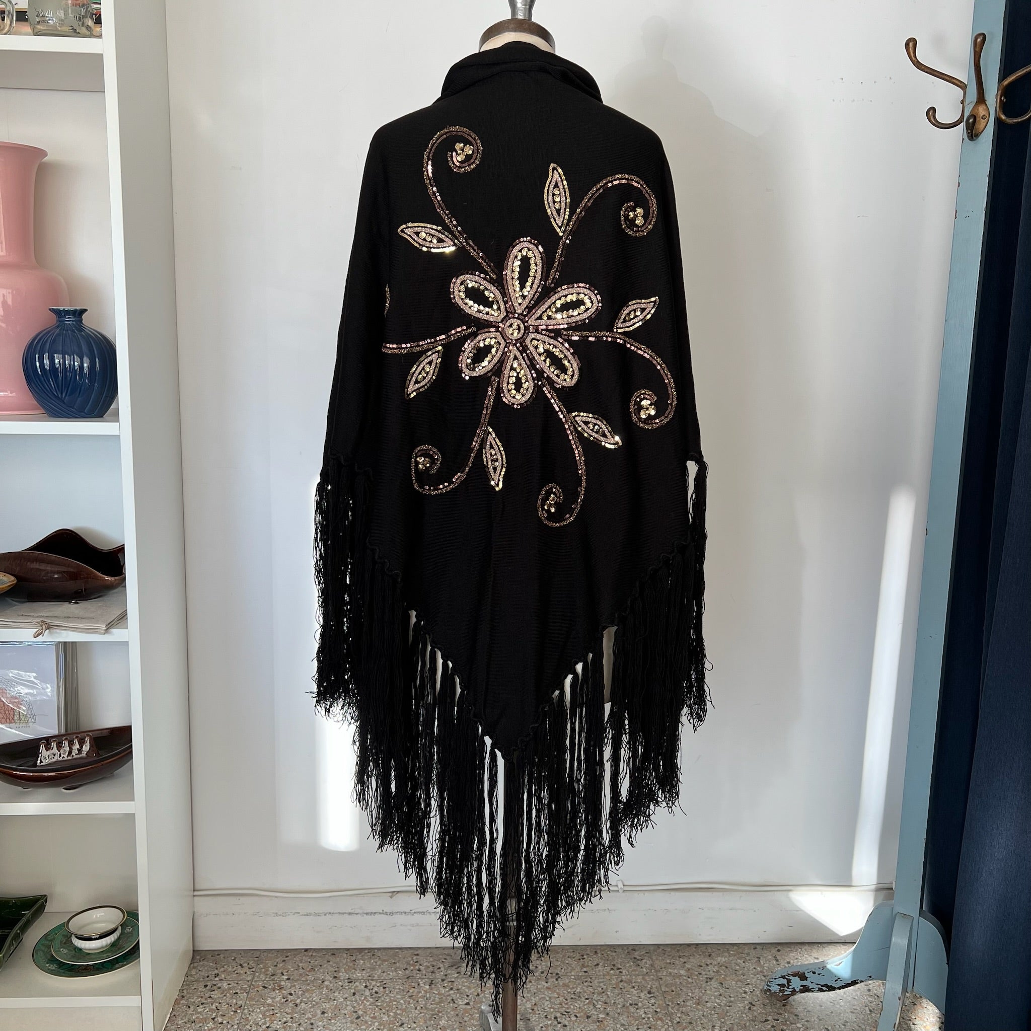 Magnifique châle de la marque Güler Triko. Doux, avec franges et décorations à paillettes. Forme triangulaire pourrait se porter d'autres façons également.