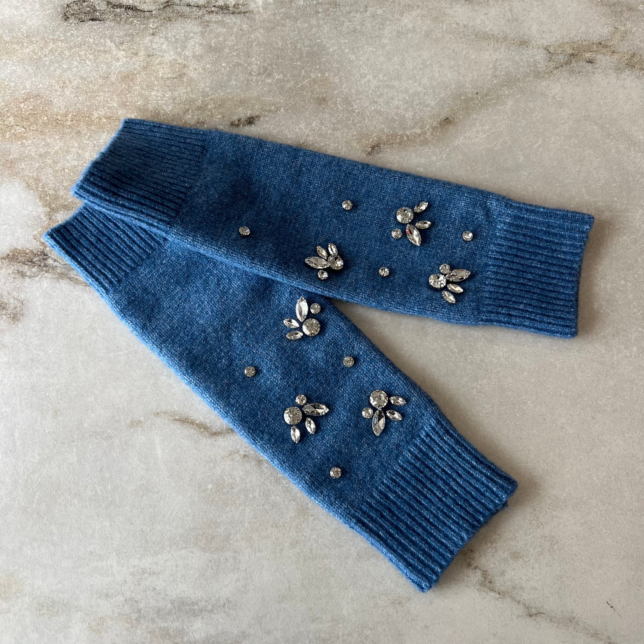 Mitaines de style manchettes ultra douces de la marque An'ge modèle Fazie. Avec magnifique décoration argentées et trous pour les pouces. Chandail et tuque assortis également disponibles. D'une valeur de 65$.