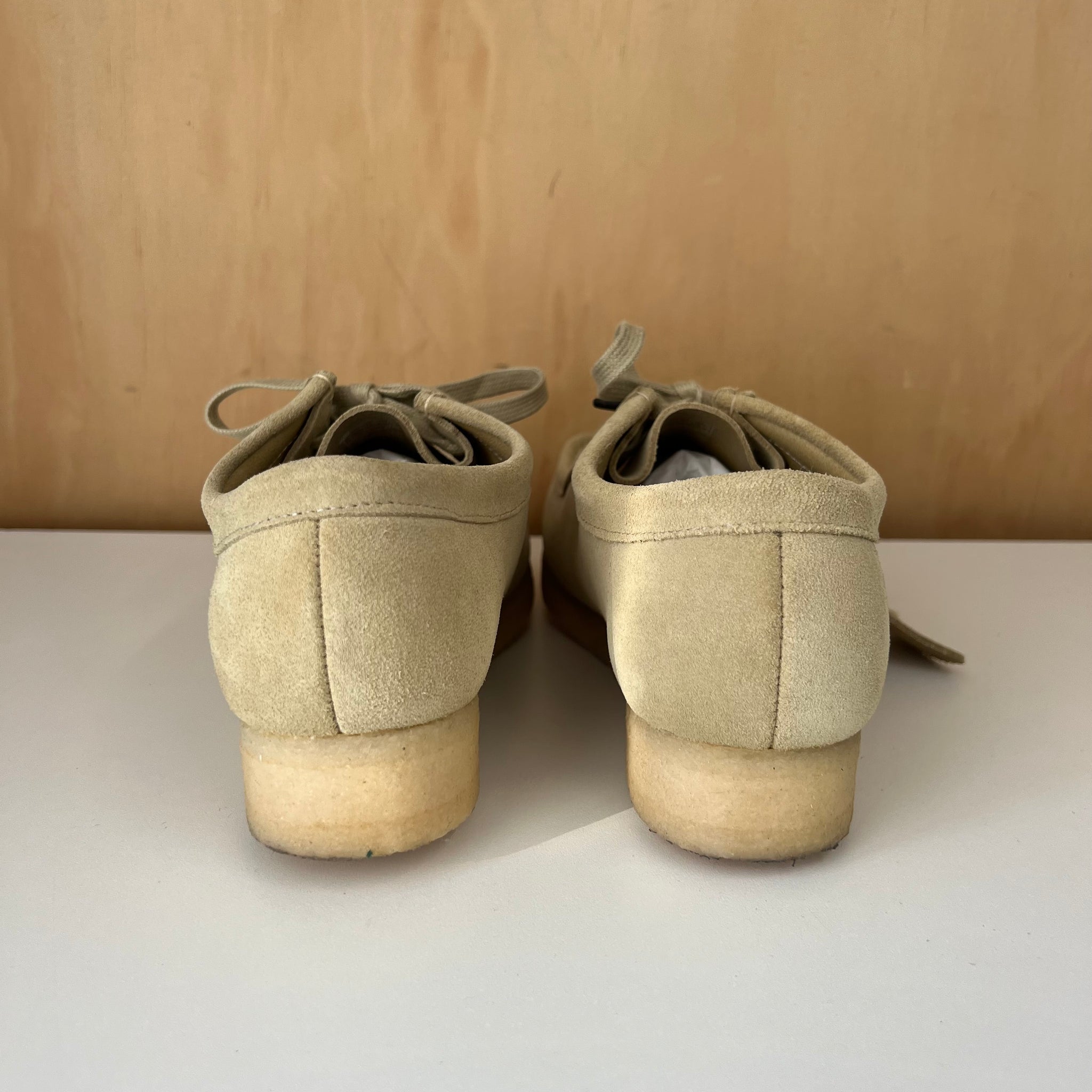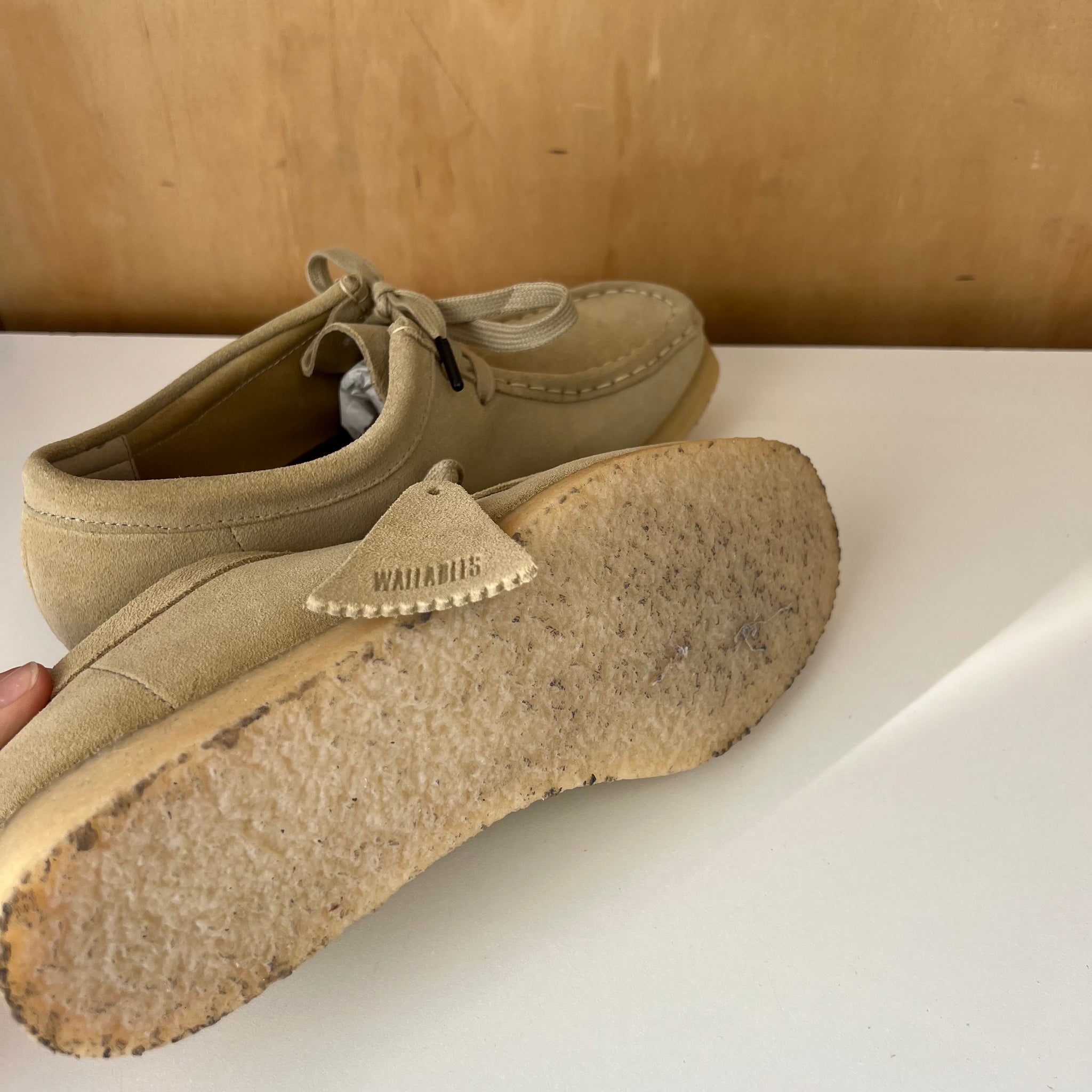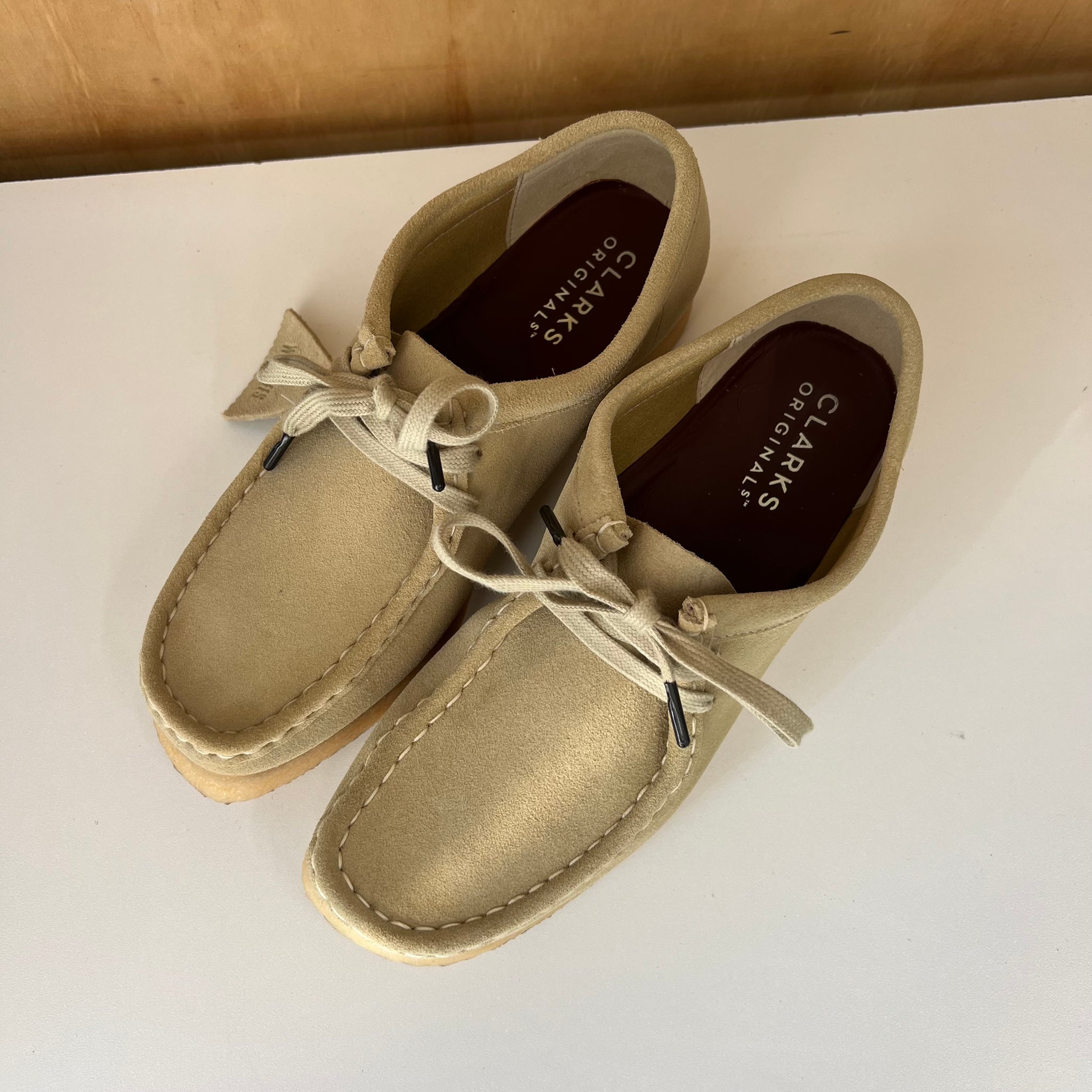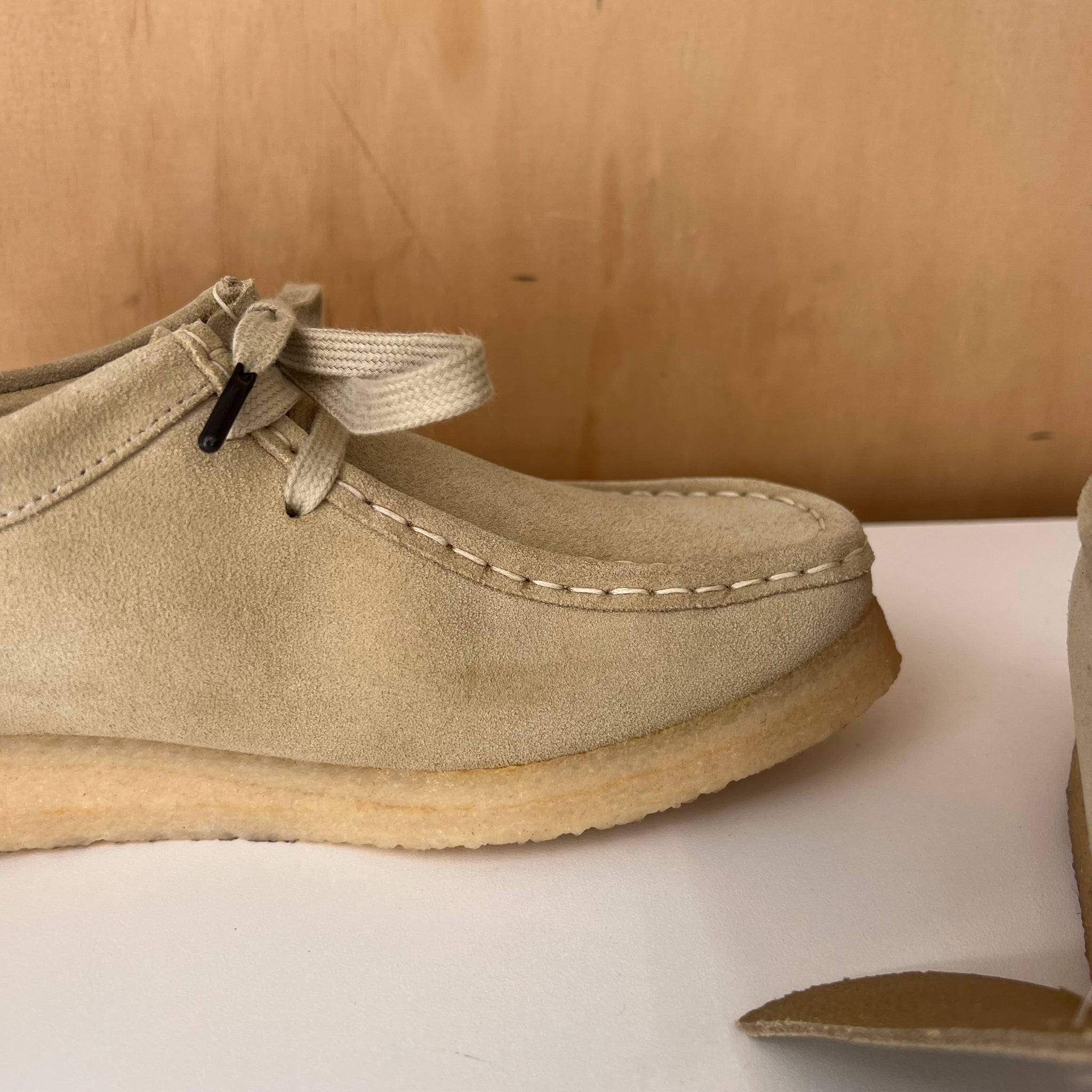 Chaussures en suédine de la marque Clarks modèle Wallabee. Icône classique de la collection Clarks Originals dans le monde entier grâce à sa coupe façon mocassin et à sa forme structurée. Affichant des lignes épurées et simples, ce modèle confortable à lacets a été réalisé à partir de daim couleur érable de Stead’s. Fabriquées en suède avec la technologie GORE-TEX® pour une respirabilité et une protection imperméable. Semelle épaisse Vibram® pour une adhérence optimale. D'une valeur de 200$.