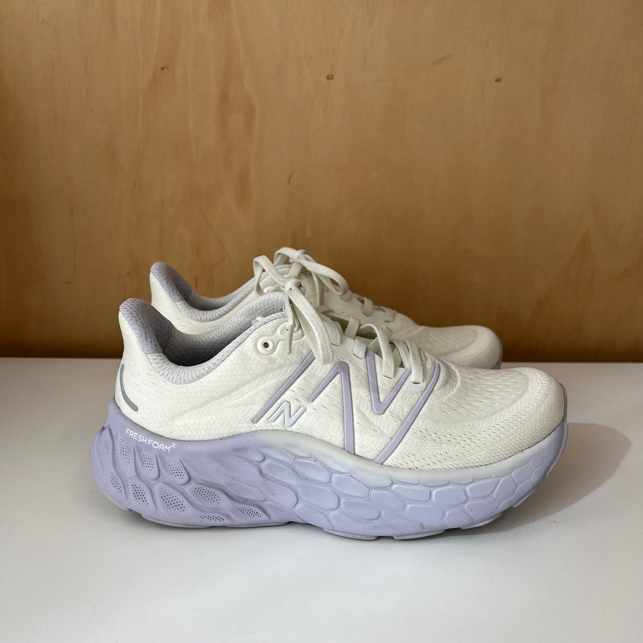 Chaussures de course de la marque New Balance modèle Wide Fresh Foam X More v4. Stable et confortable avec semelle extérieure munie de zones d'amorti disposées de manière statégique, ainsi que de zones flexibles pour une foulée naturelle. Le profilé à bascule favorise une transition et une foulée tout en douceur. Le tout sous une empeigne en maille technique qui vous maintient ancré avec un confort et un soutien respirants. D'une valeur de 190$.