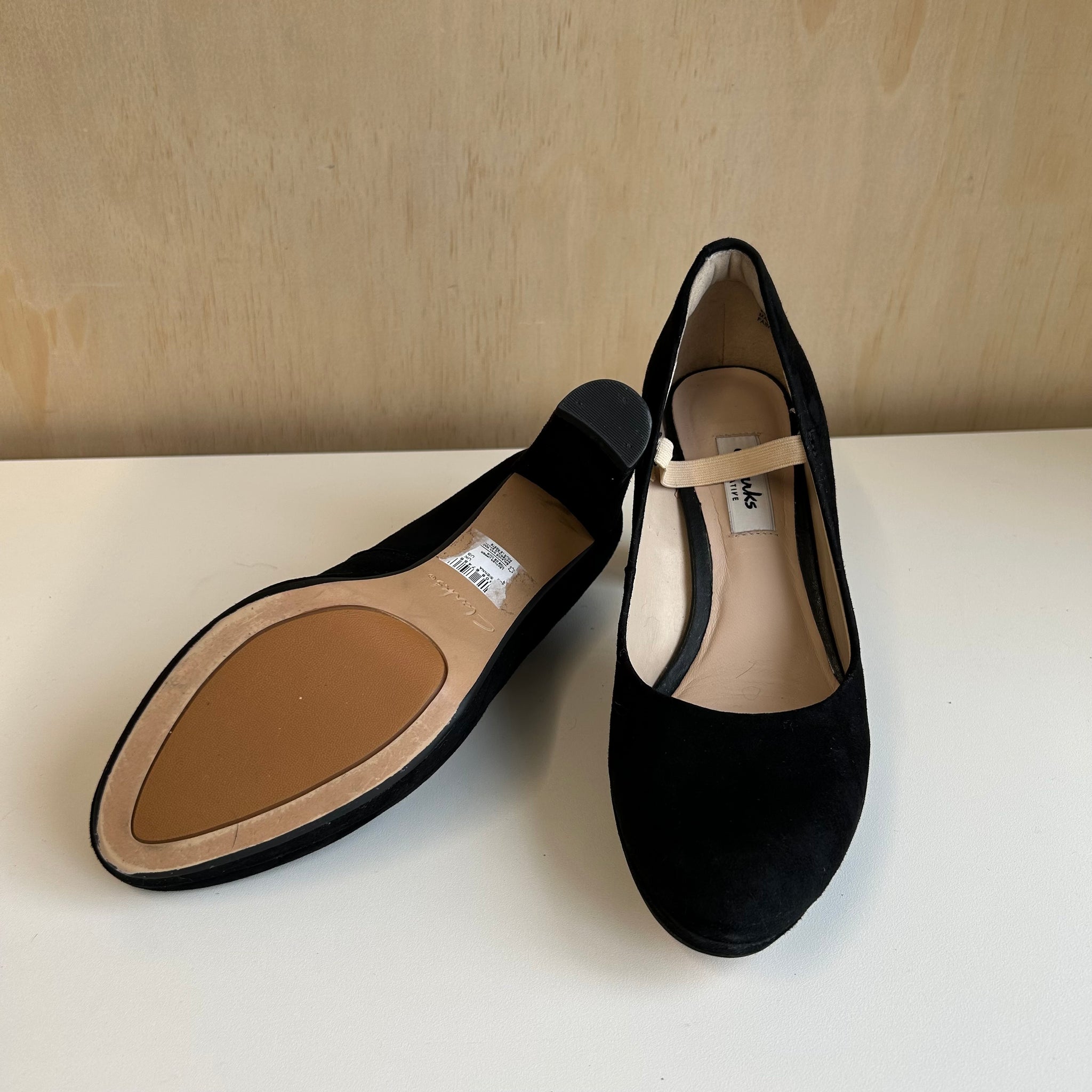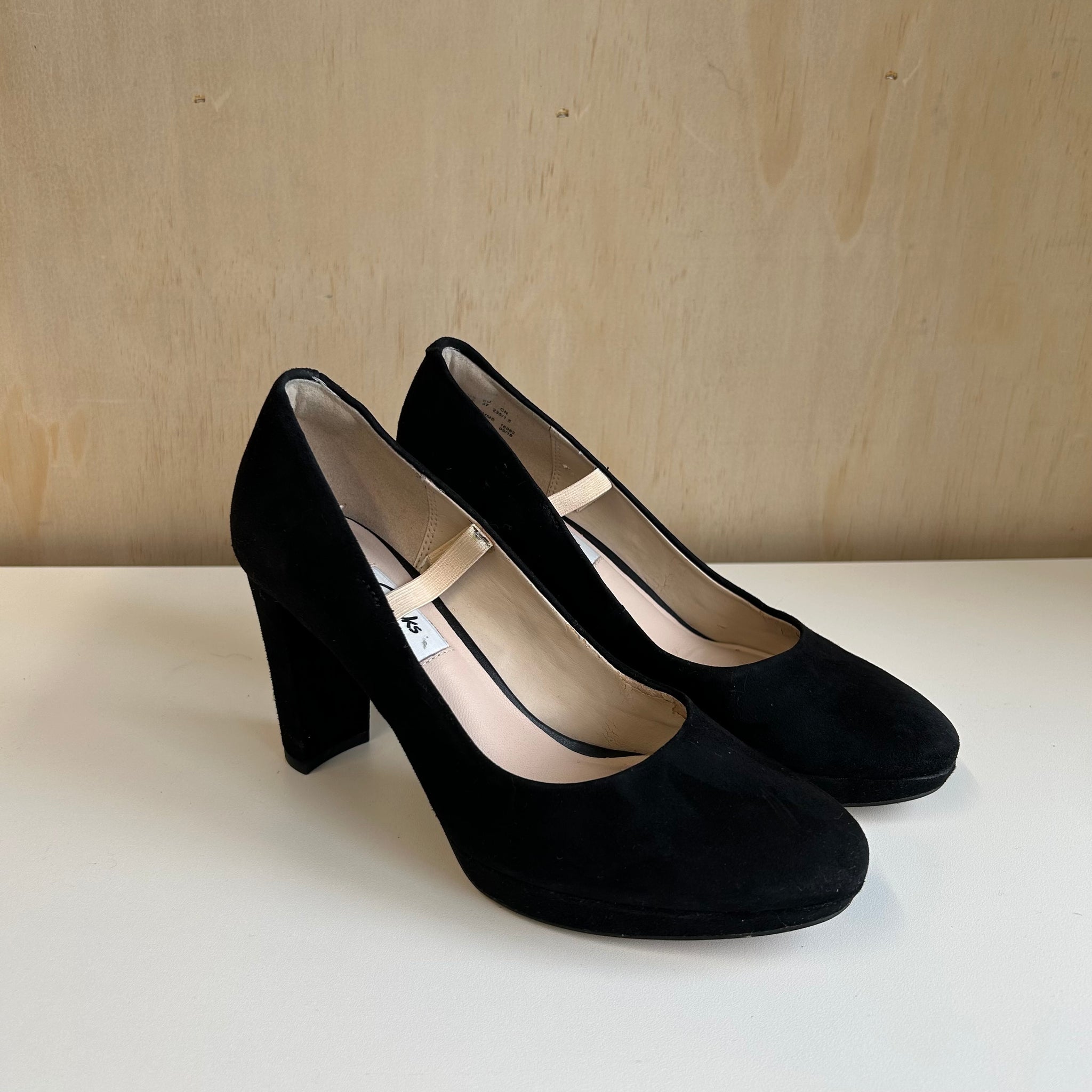 Chaussures à talon haut de la marque Clarks modèle Kendra Sienna velours. En cuir daim noir.