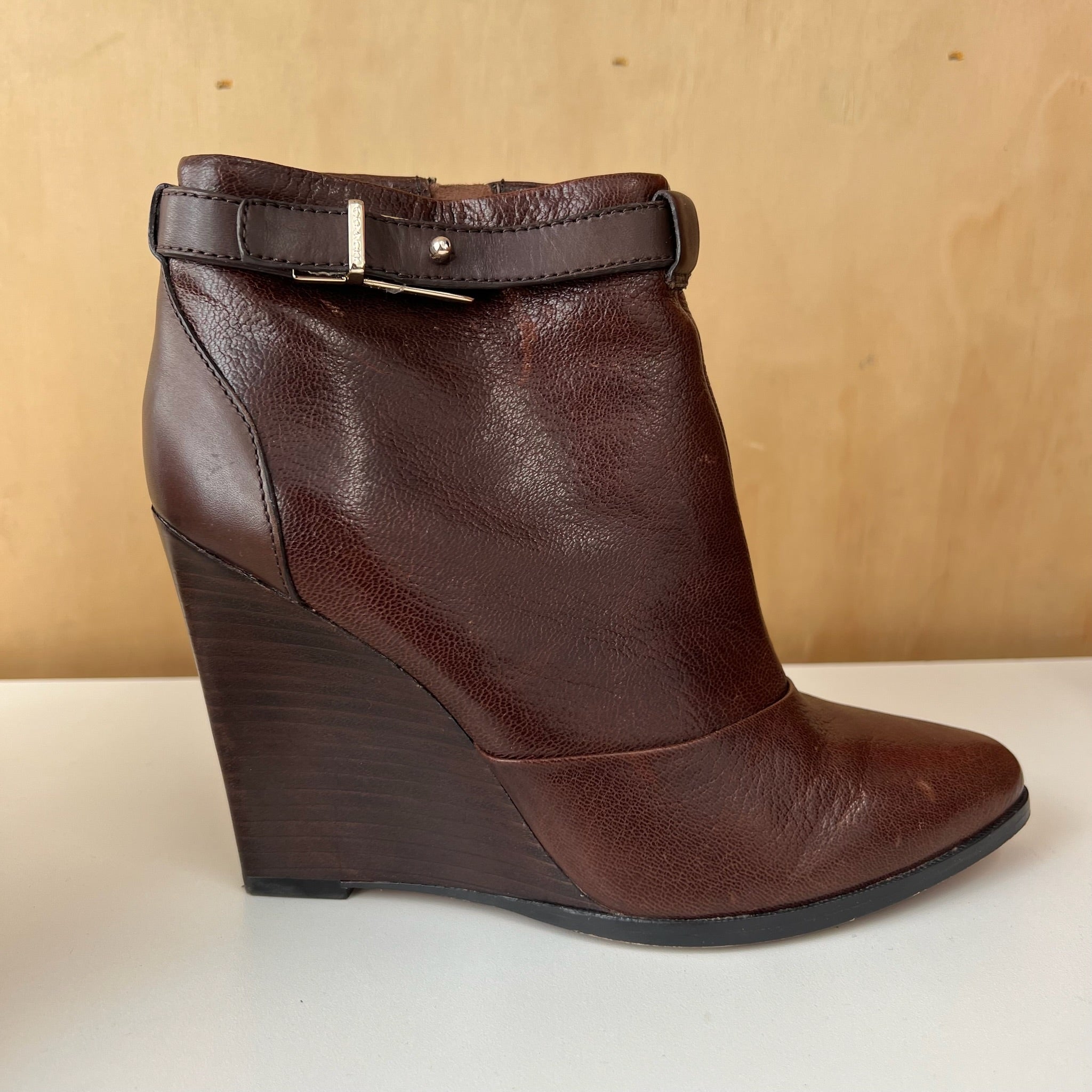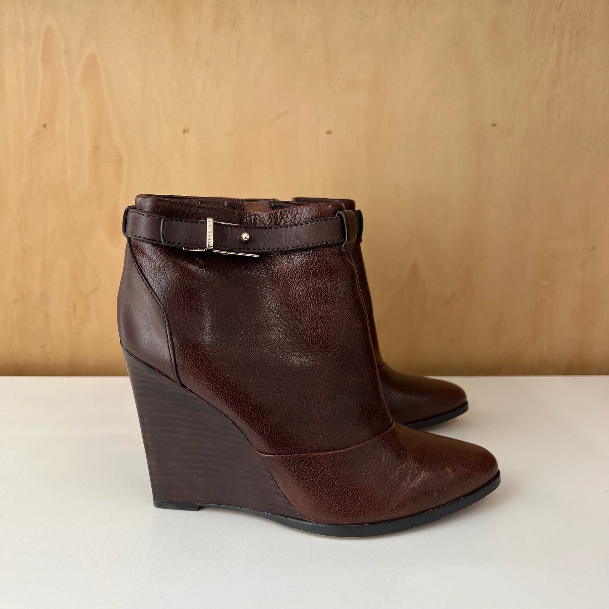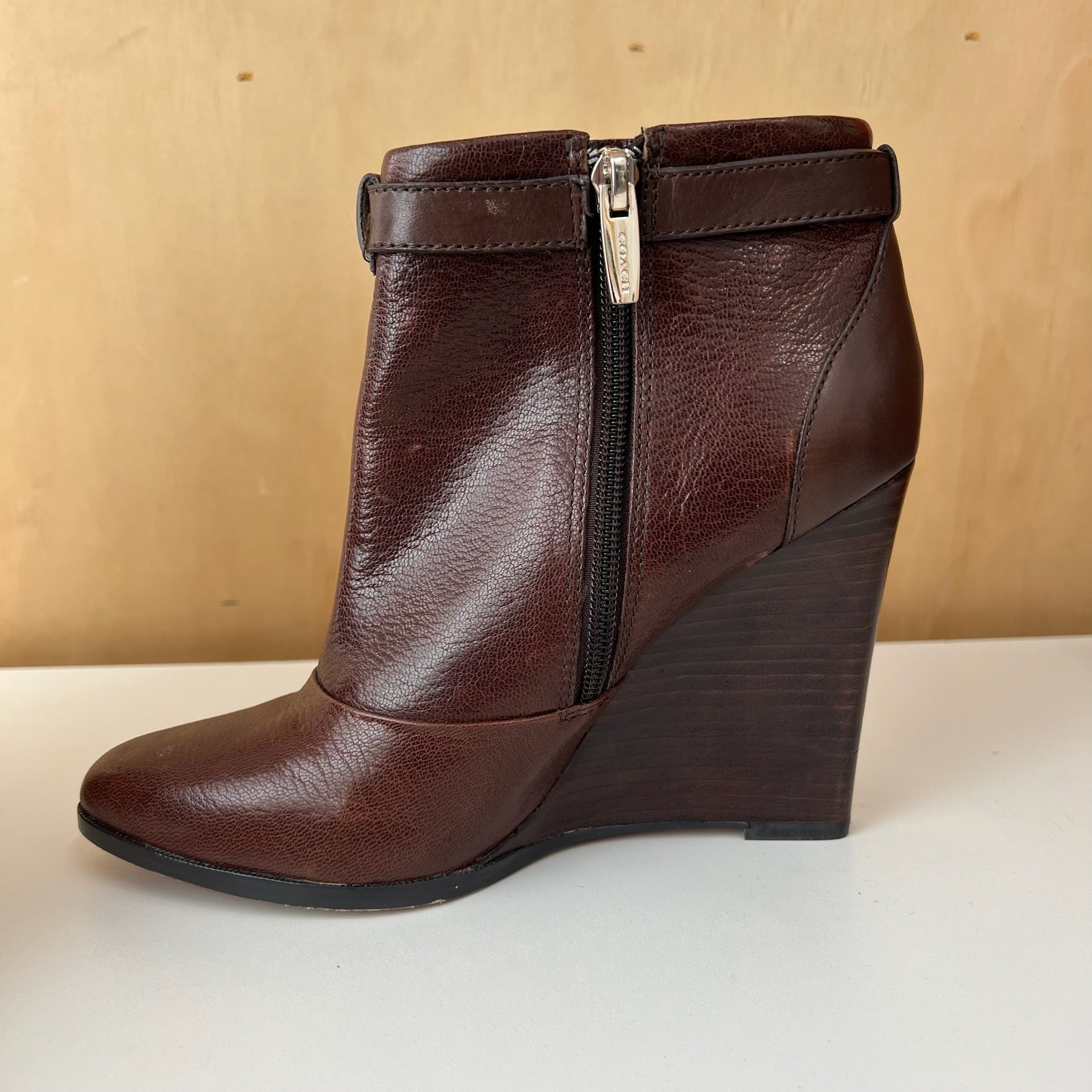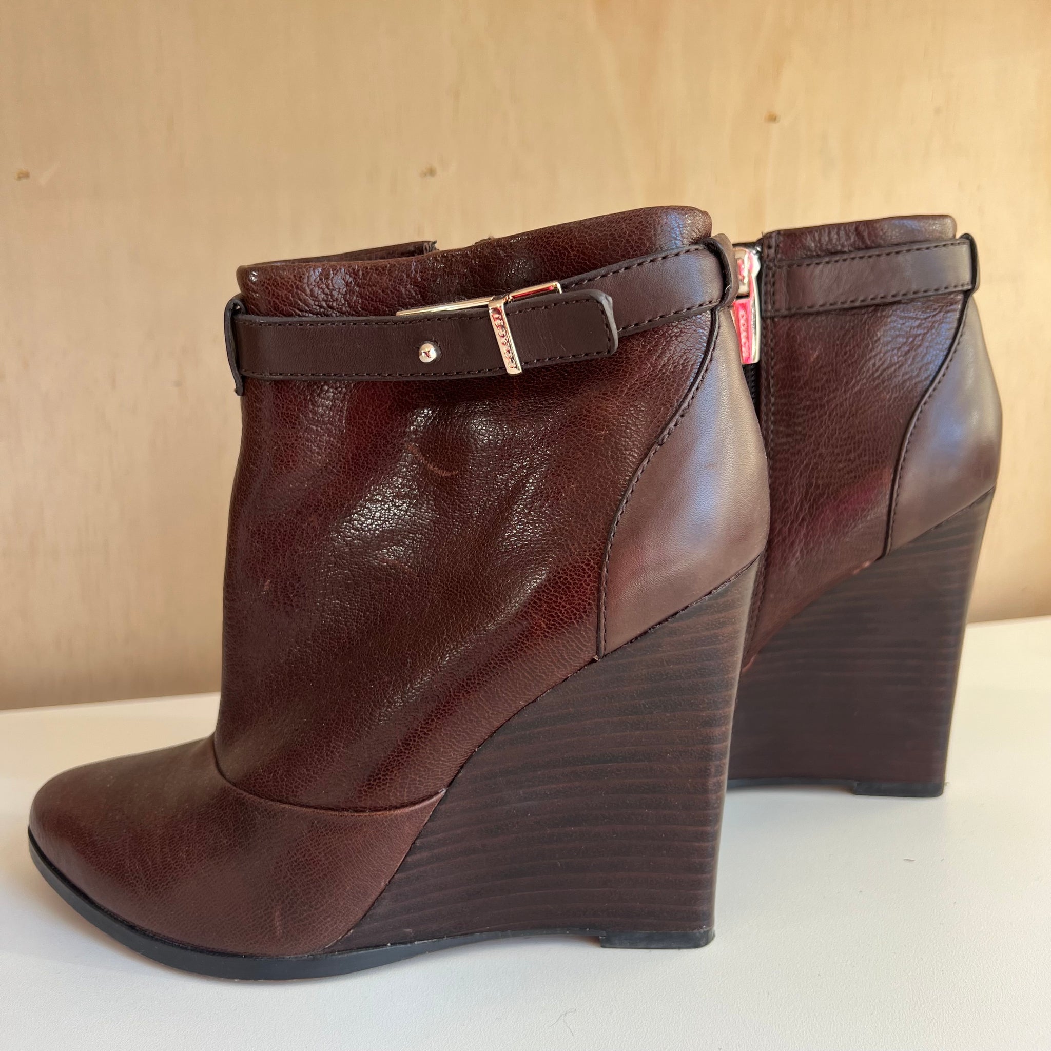 Chaussures en cuir de style bottillons à talons hauts de la marque Coach. Modèle Melody. Bout pointu, ganse décorative avec boucle et fermeture éclair sur le coté.