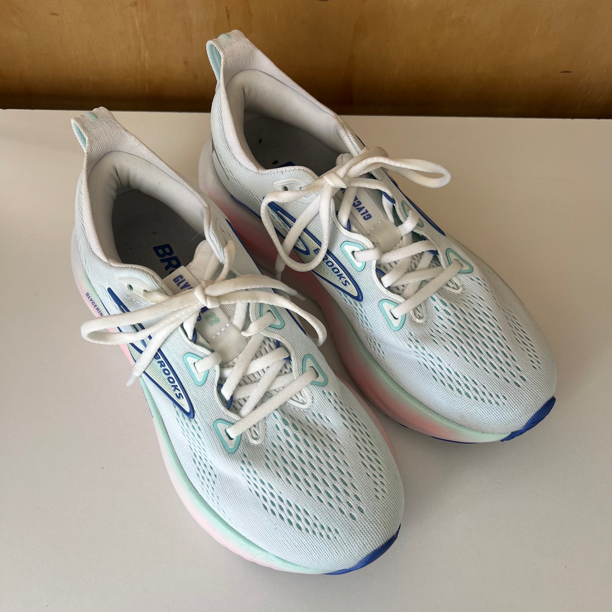 Chaussures de course de la marque Brooks modèele Glycerin GTS 22. Pour course sur route, longues courses. D'une valeur de 200$