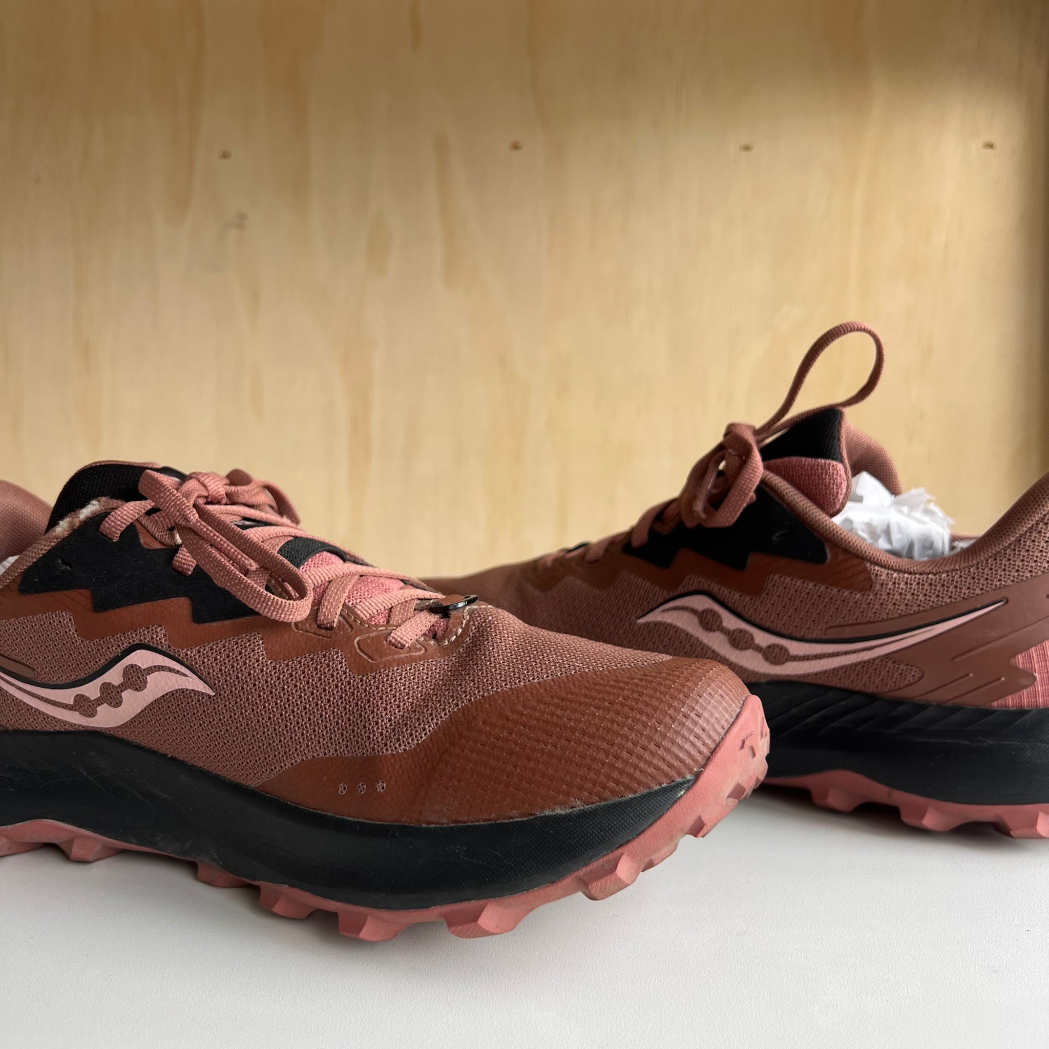 Chaussures de course de la marque Saucony Peregrine 14 GTX. Spécialiste tout-terrain résistant aux intempéries en qui vous avez confiance sur tous les terrains. D'une valeur de 200$.