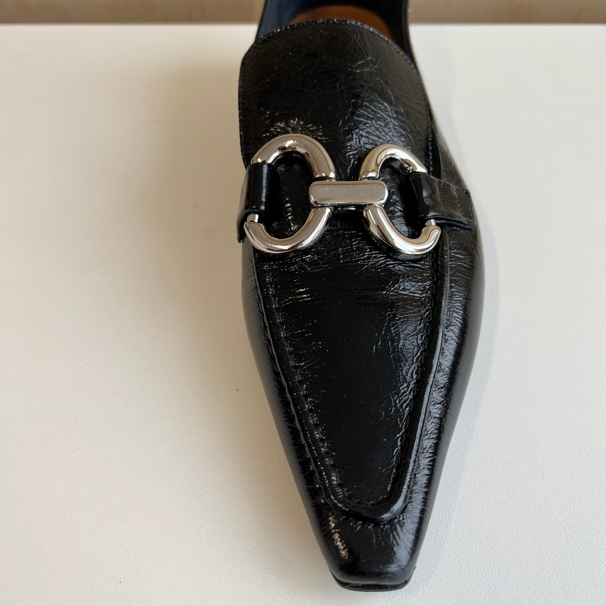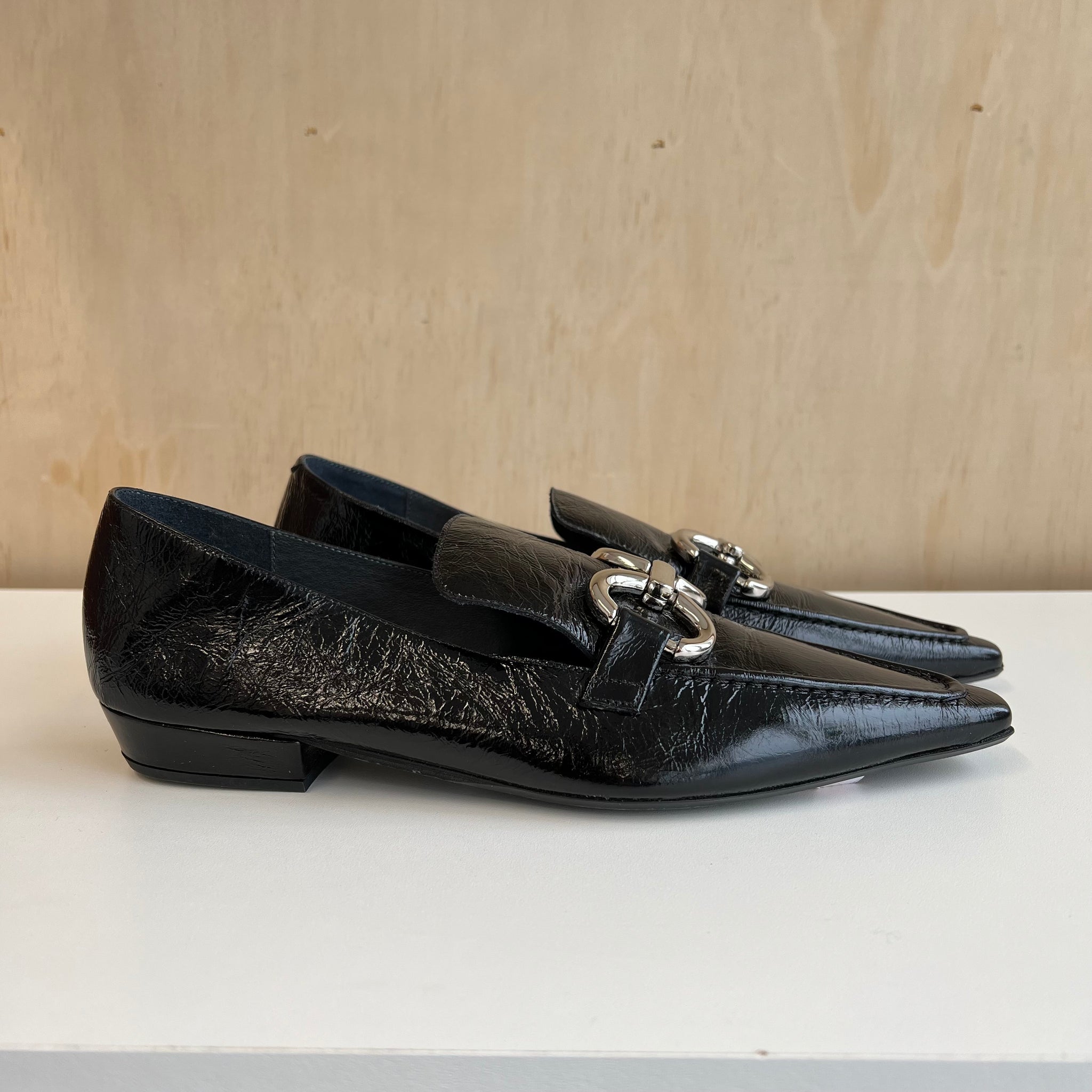 Flâneurs à talon bas de la marque Jonak modèle Dalemo. Bouts pointus et boucle en métal sur le dessus. D'une valeur de 275,00$.