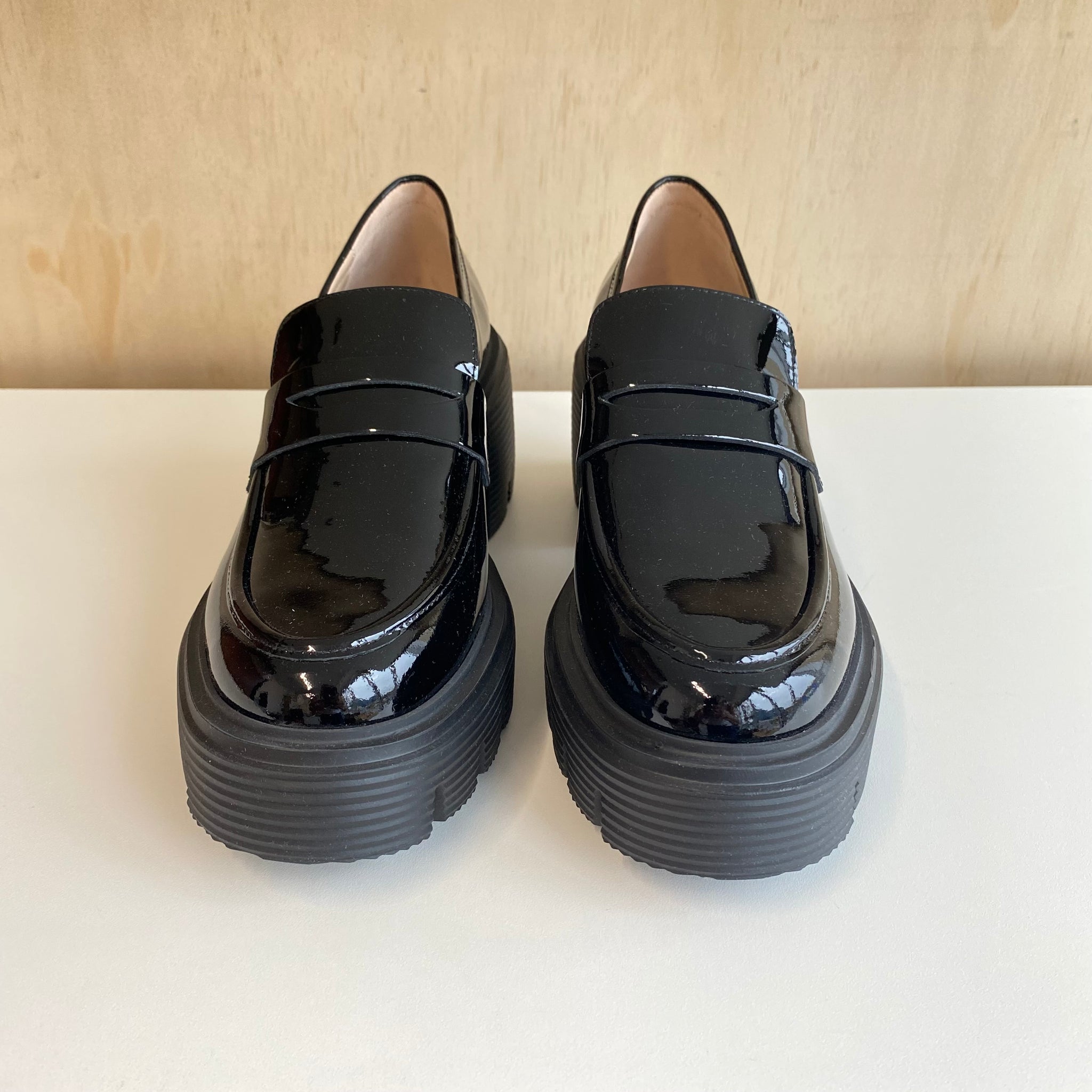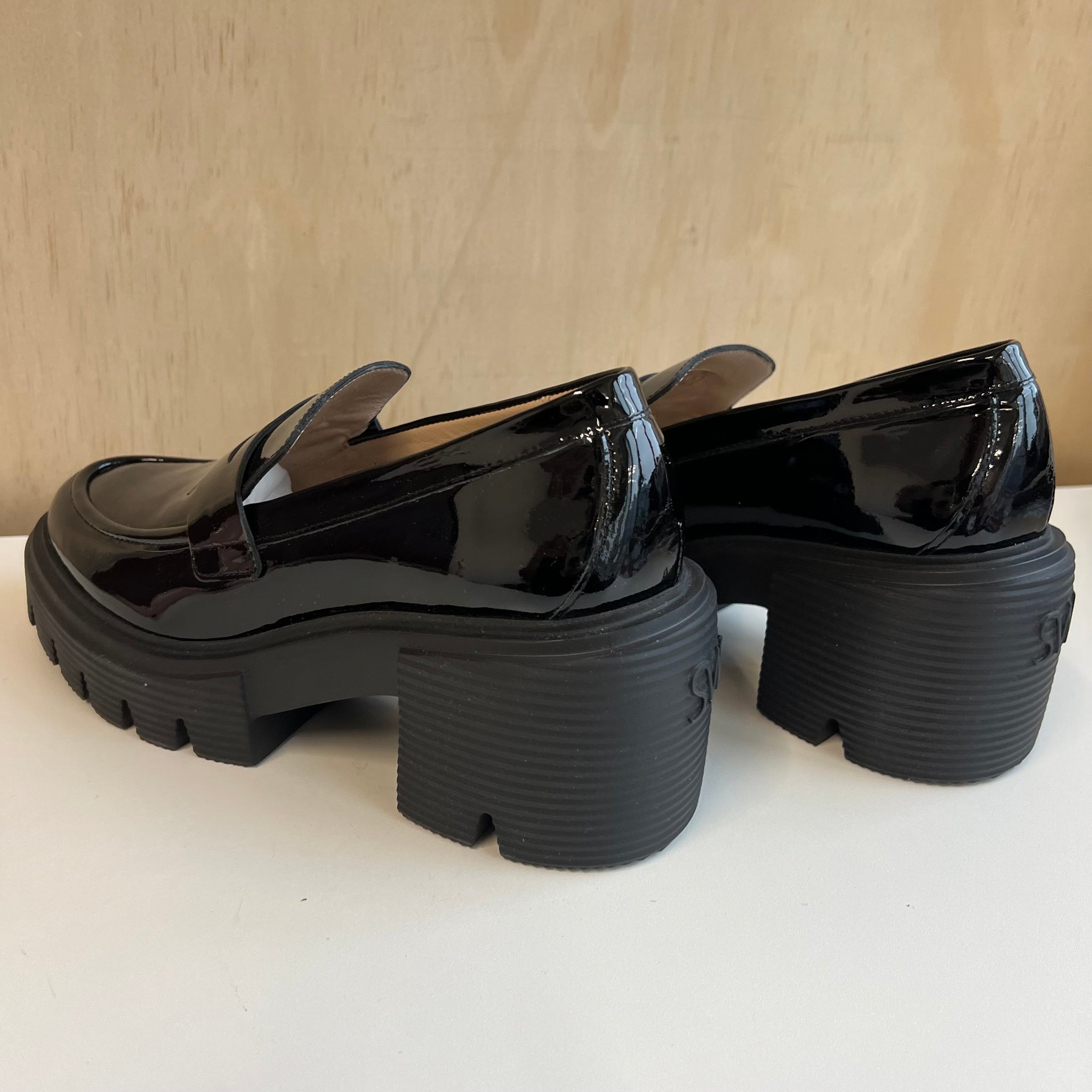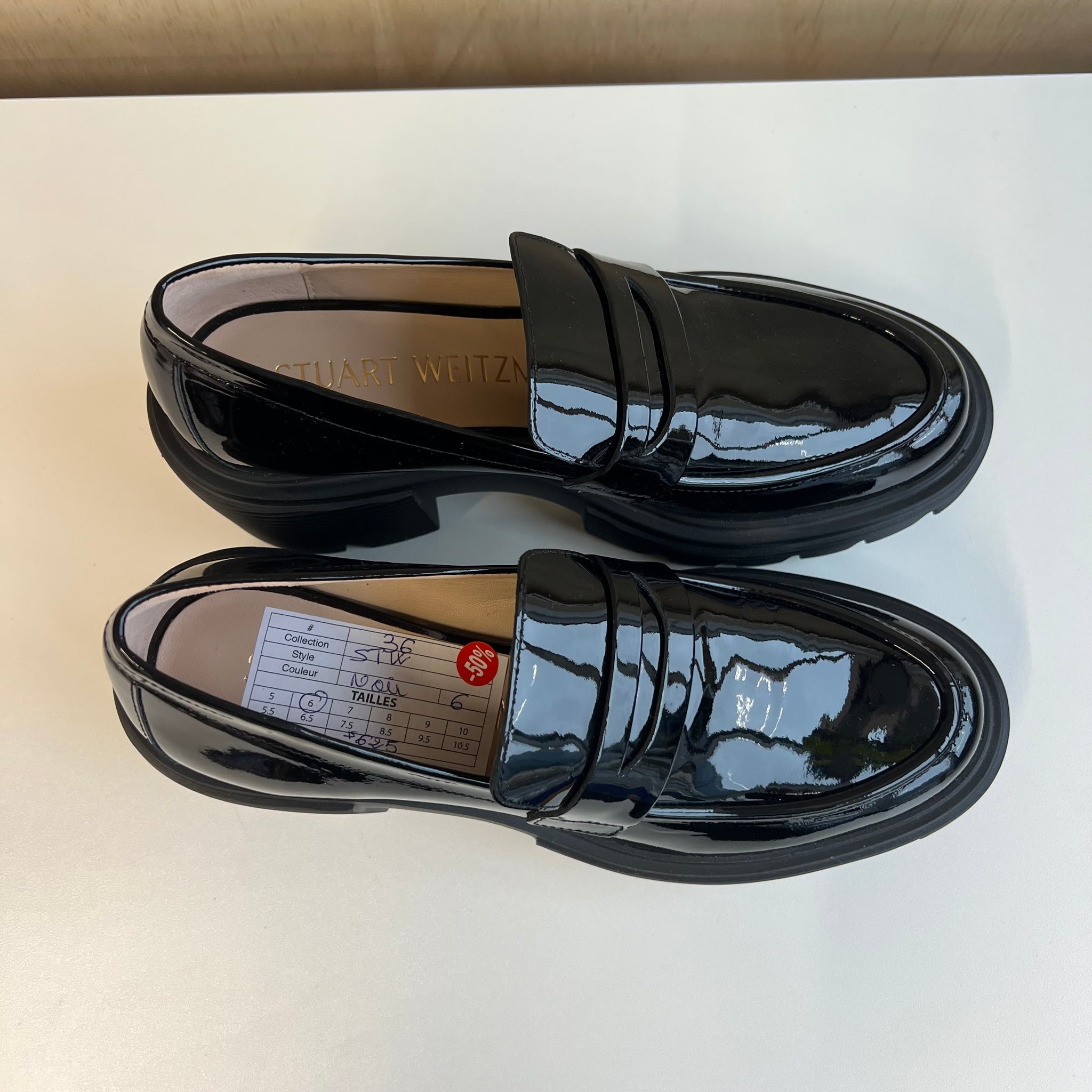 Chaussures de la marque Stuart Weitzman modèle Soho loafers à talons. Fini lustré sur le dessus. d'une valeur de 625$.