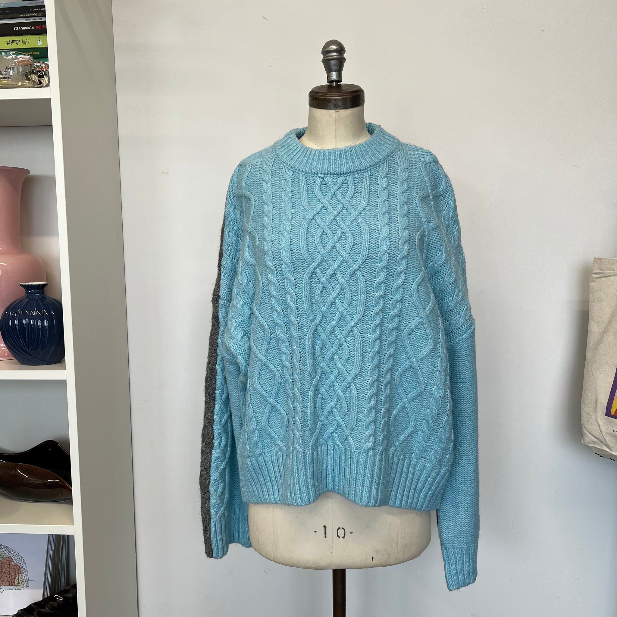 Chandail doux à manches longues de la marque Noisy May. Tricot fait oversized deux couleurs. Col rond et grosses mailles.