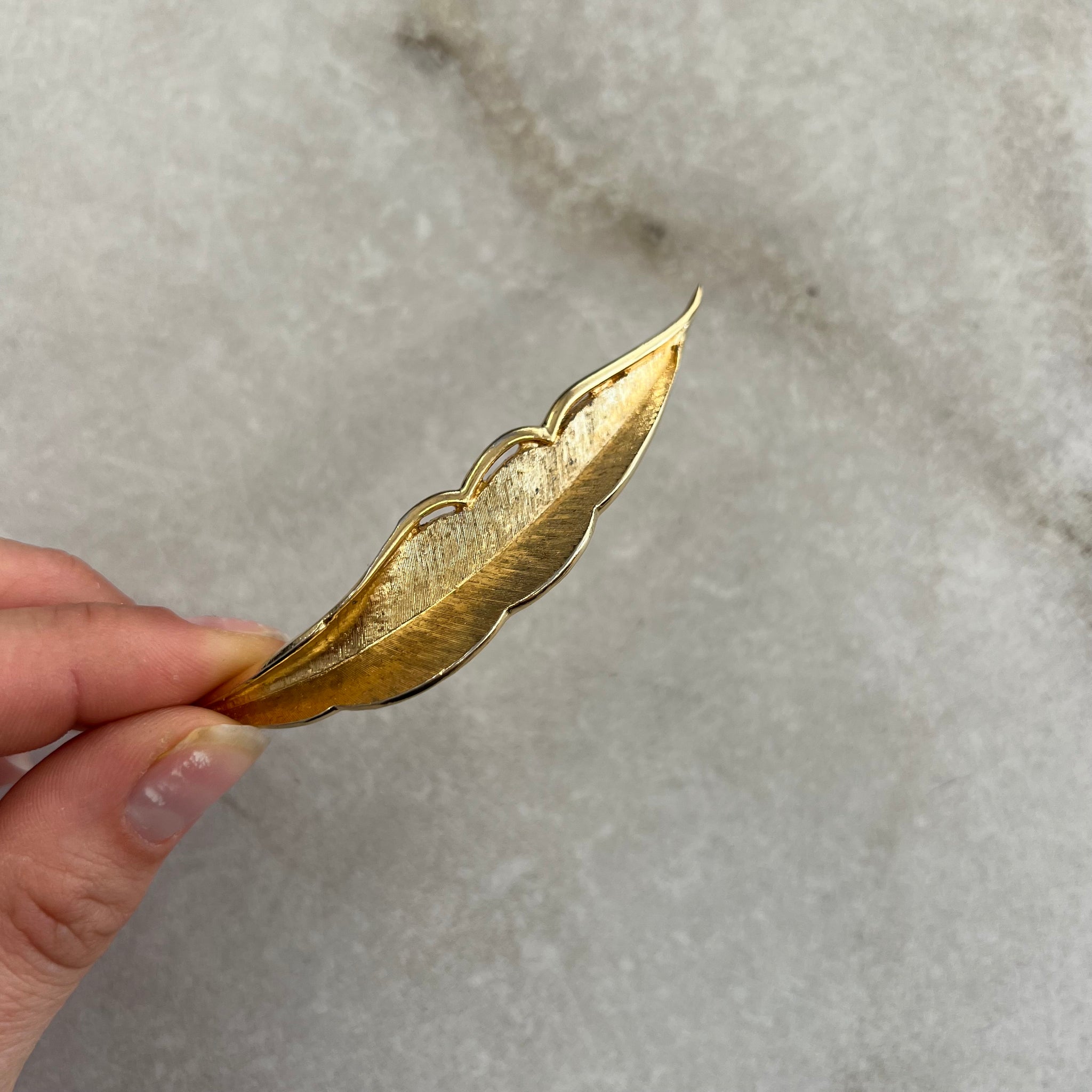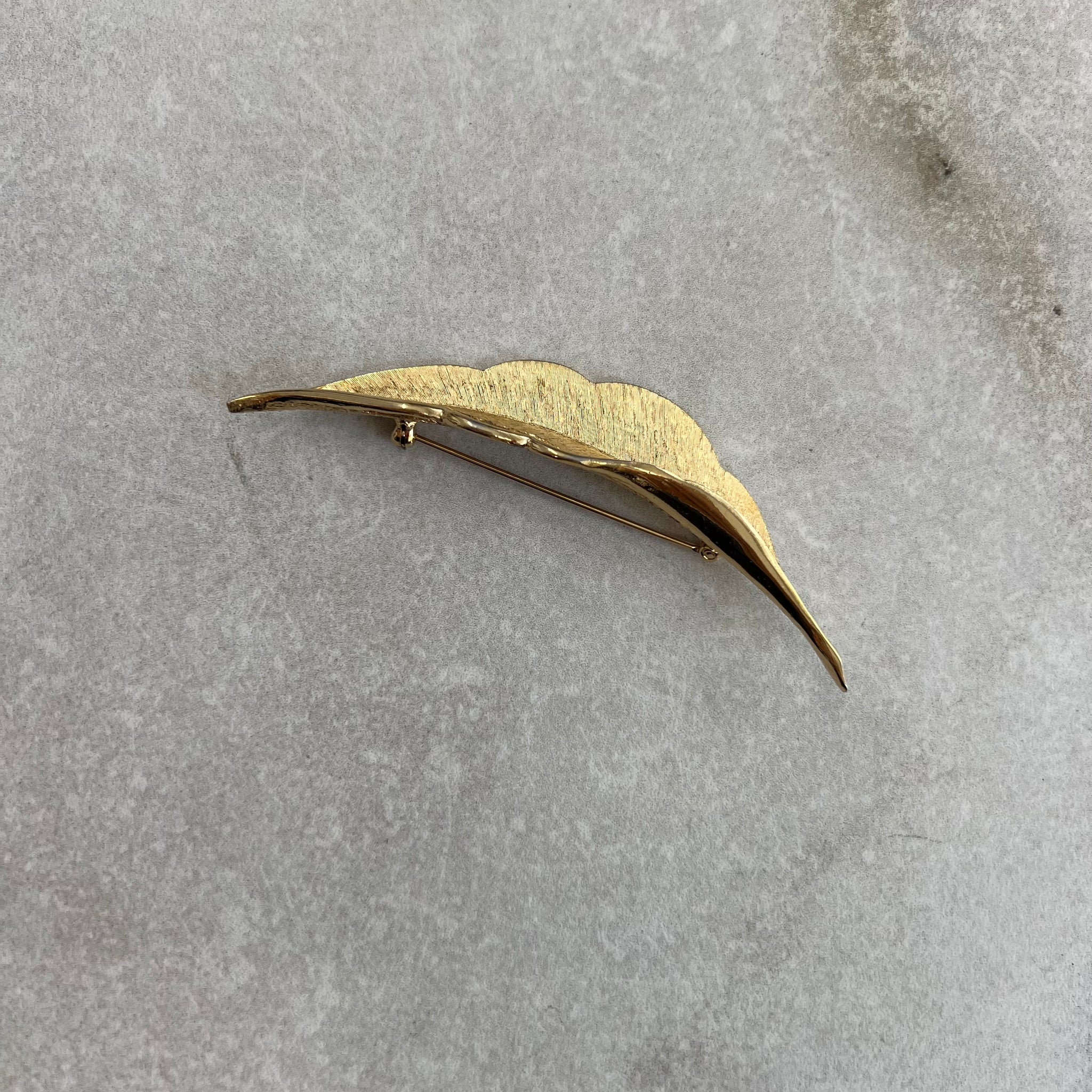 Broche de couleur or en forme de feuille de la marque Boucher.