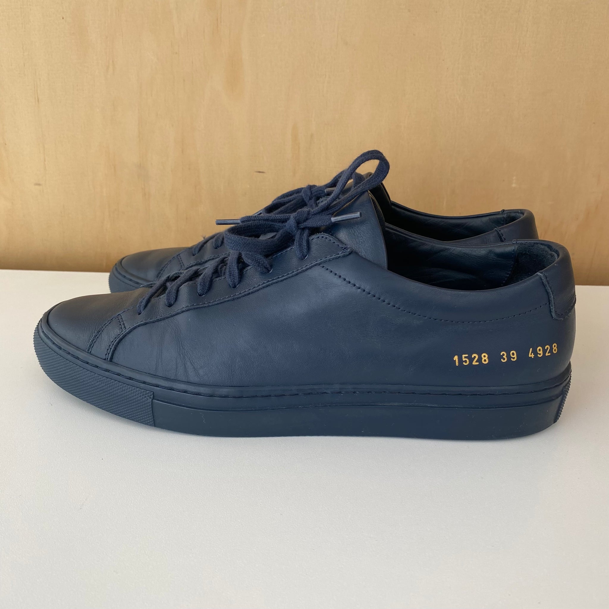 Chaussures pour homme Common Projects numéro 1528 39 4928 . Modèle emblématique Achilles de la marque de luxe Common Projects. Fabriquées en Italie, chaussure en cuir de haute qualité et une doublure 100 % cuir, ces chaussures offrent un confort exceptionnel et un style épuré. Silhouette minimaliste, rehaussée du discret numéro doré estampé sur le côté. D'une valeur de plus de 500$