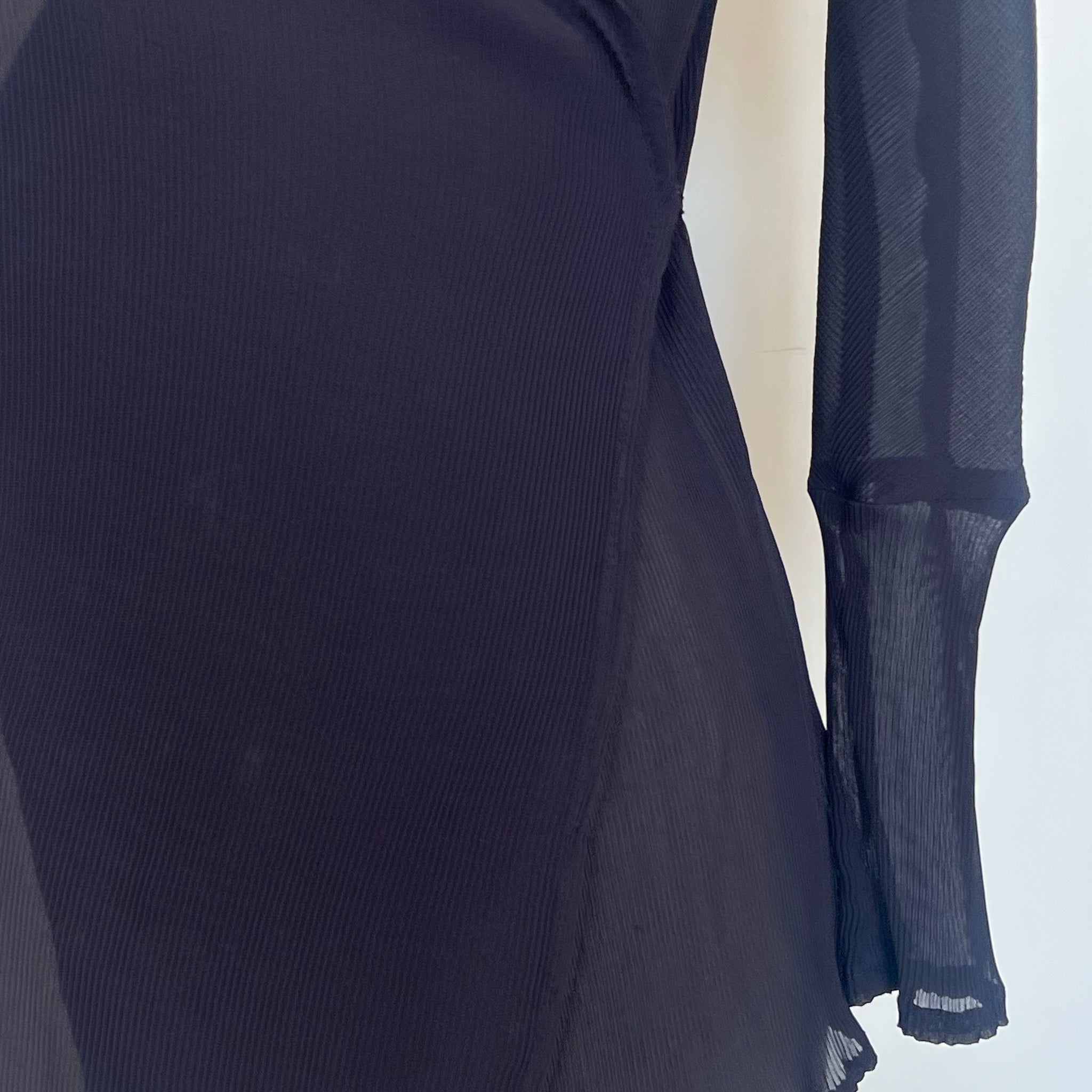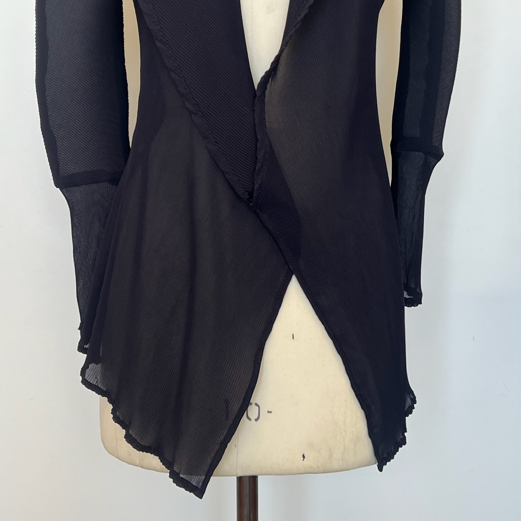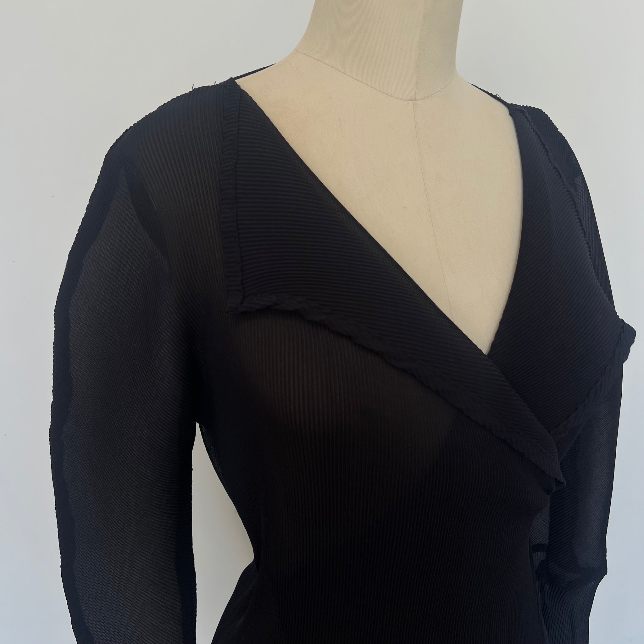 Par-dessus léger de la marque Barbeau. Fermeture discrète à l’avant, col plongeant et poignets ajustés. Se porte détaché ou en portefeuille. Tissu texturé translucide pour une allure élégante et sophistiquée.