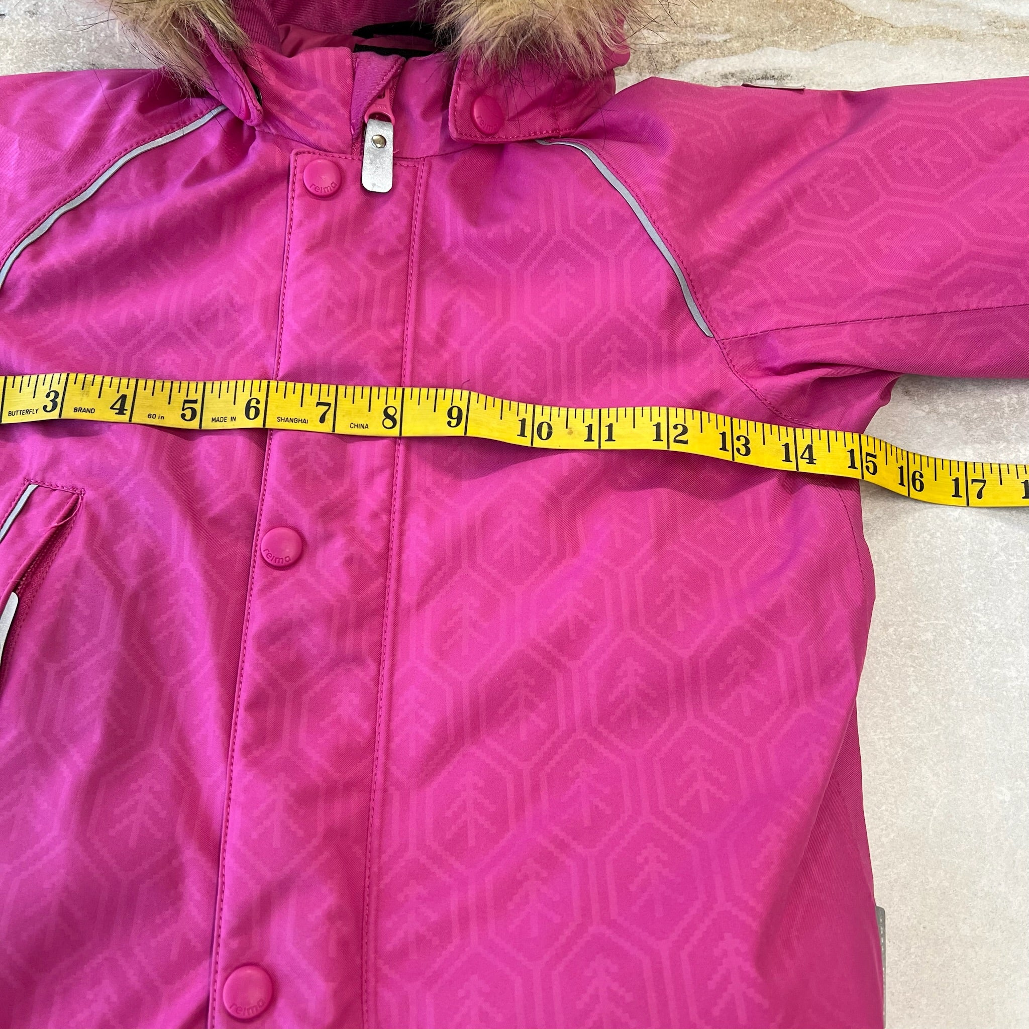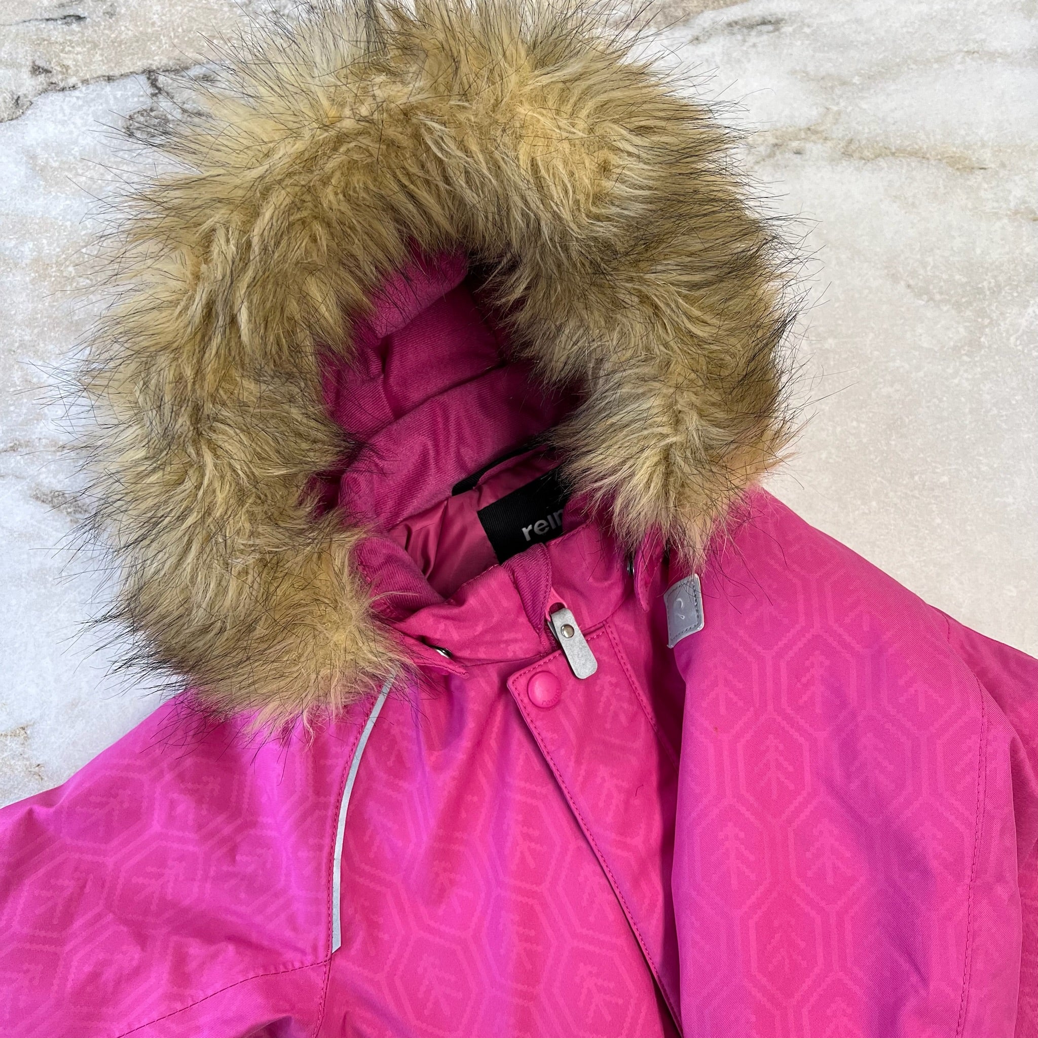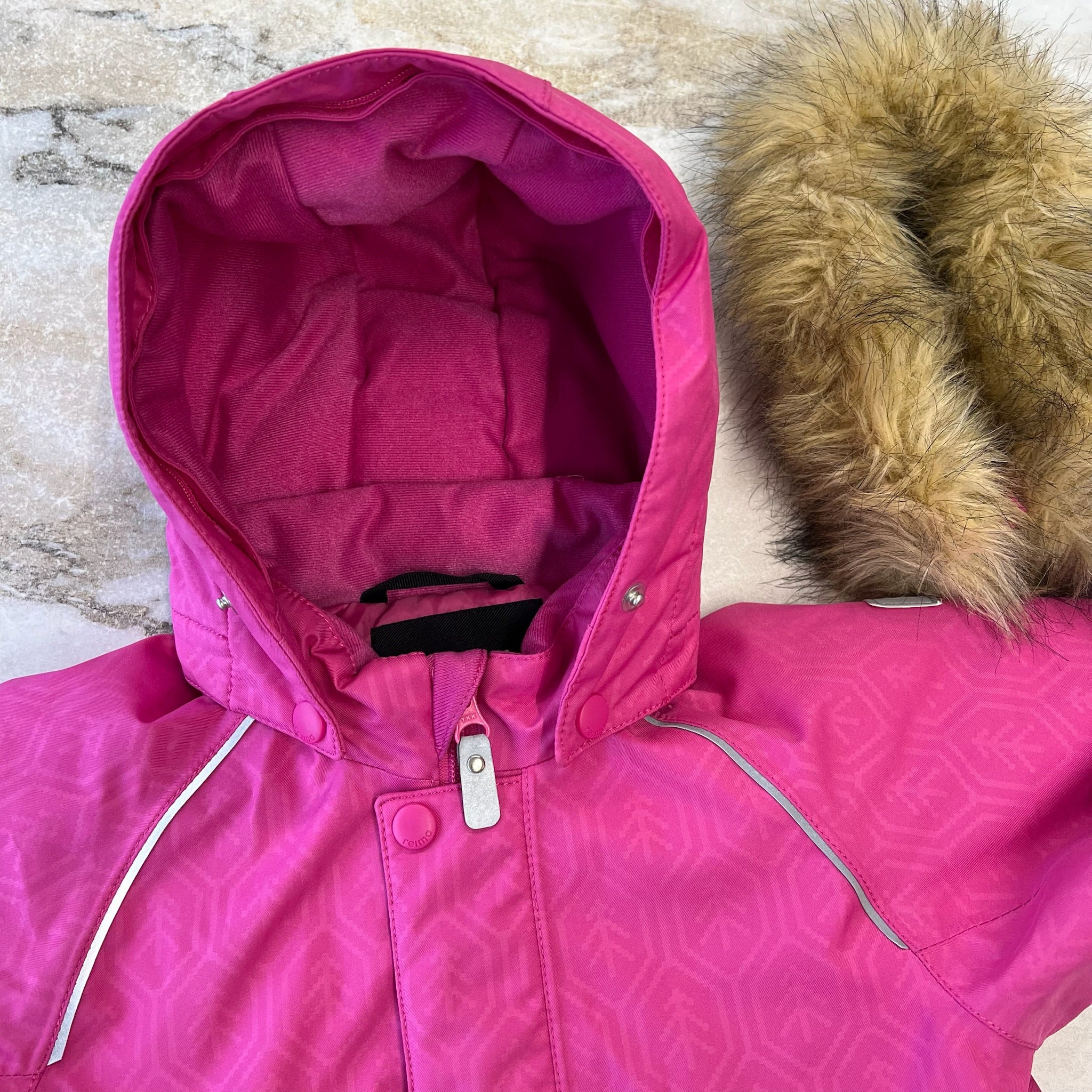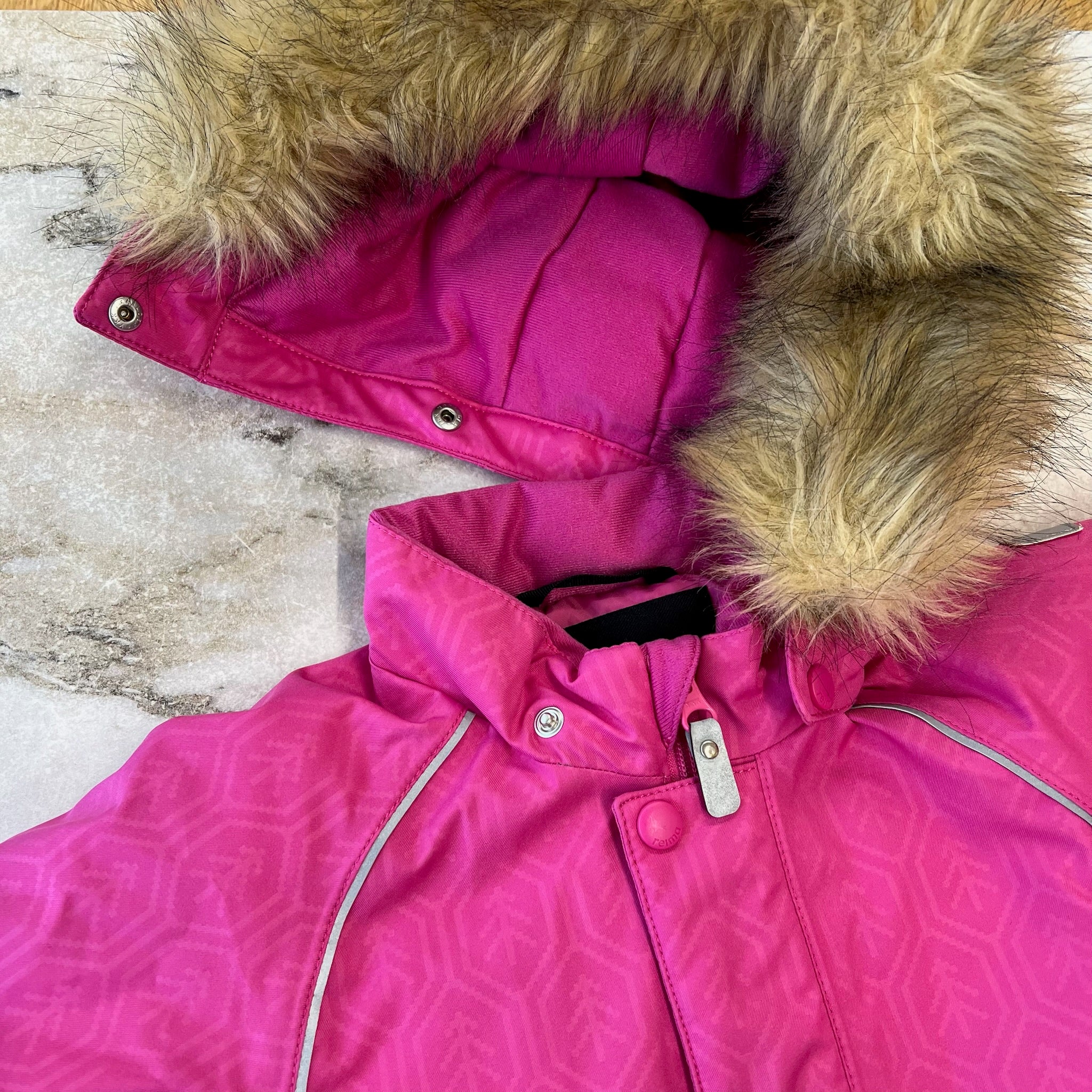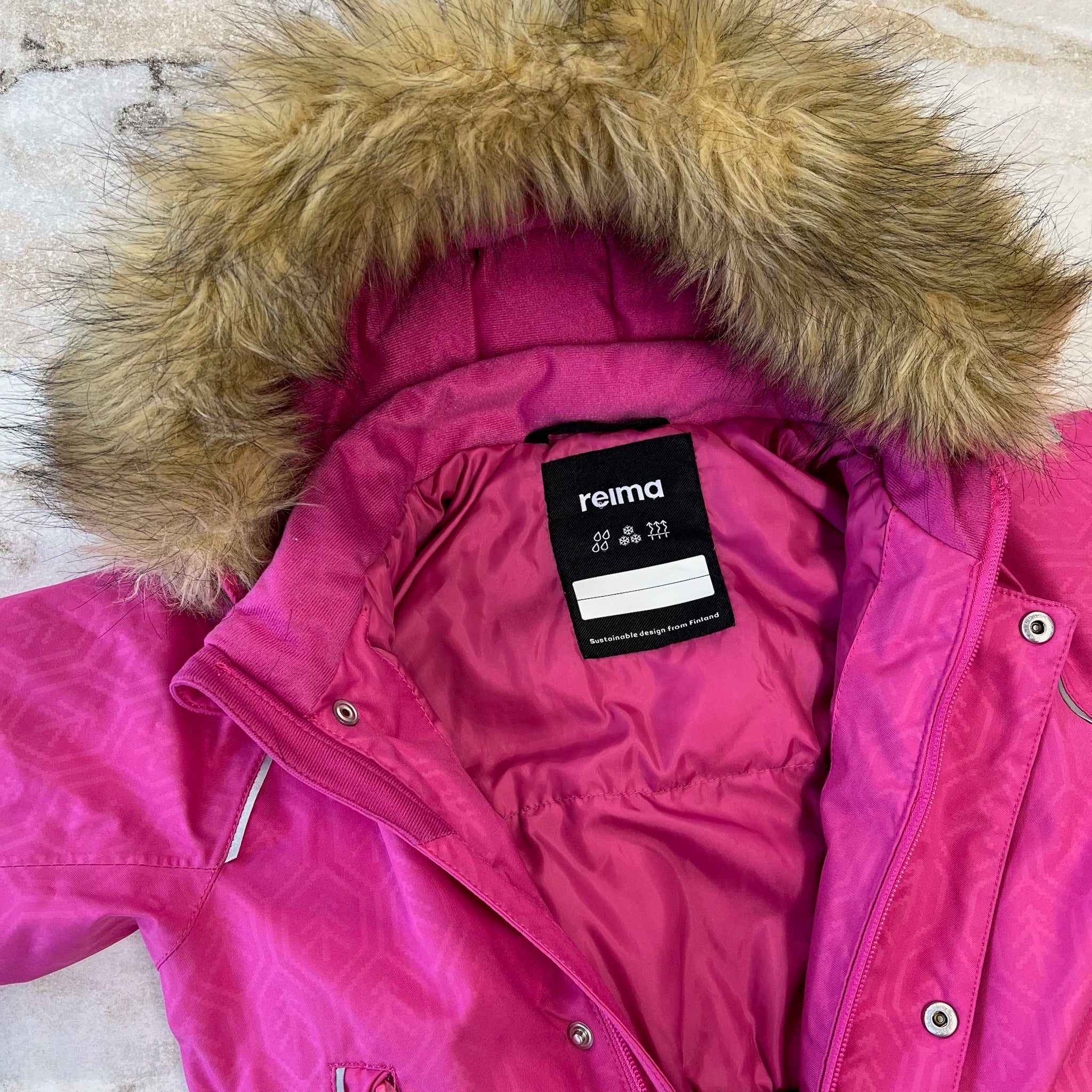 Ensemble une pièce d'hiver de la marque Reima. Toutes les coutures sont scellées, surface imperméable, hydrofuge et repousse la saleté, doublure lisse permet un habillement facile, de plus, muni d’un capuchon amovible. Une chaleur optimale, isolation est à 60% duvet et 40% plumes et la partie du siège est en ouate. Une poche à glissière pour garder les essentiels en sécurité.