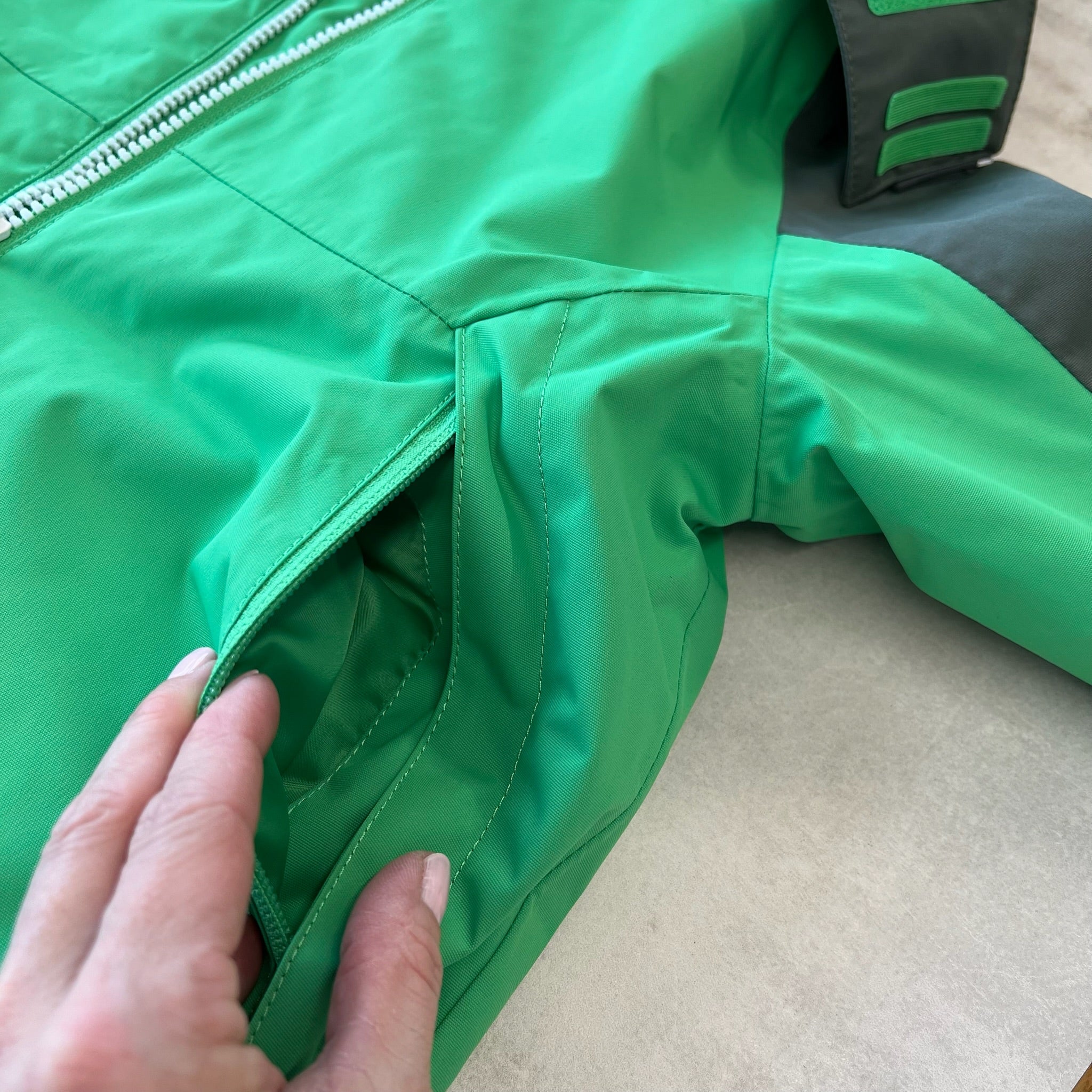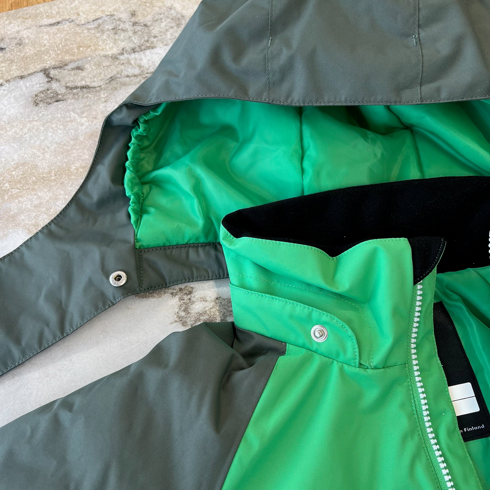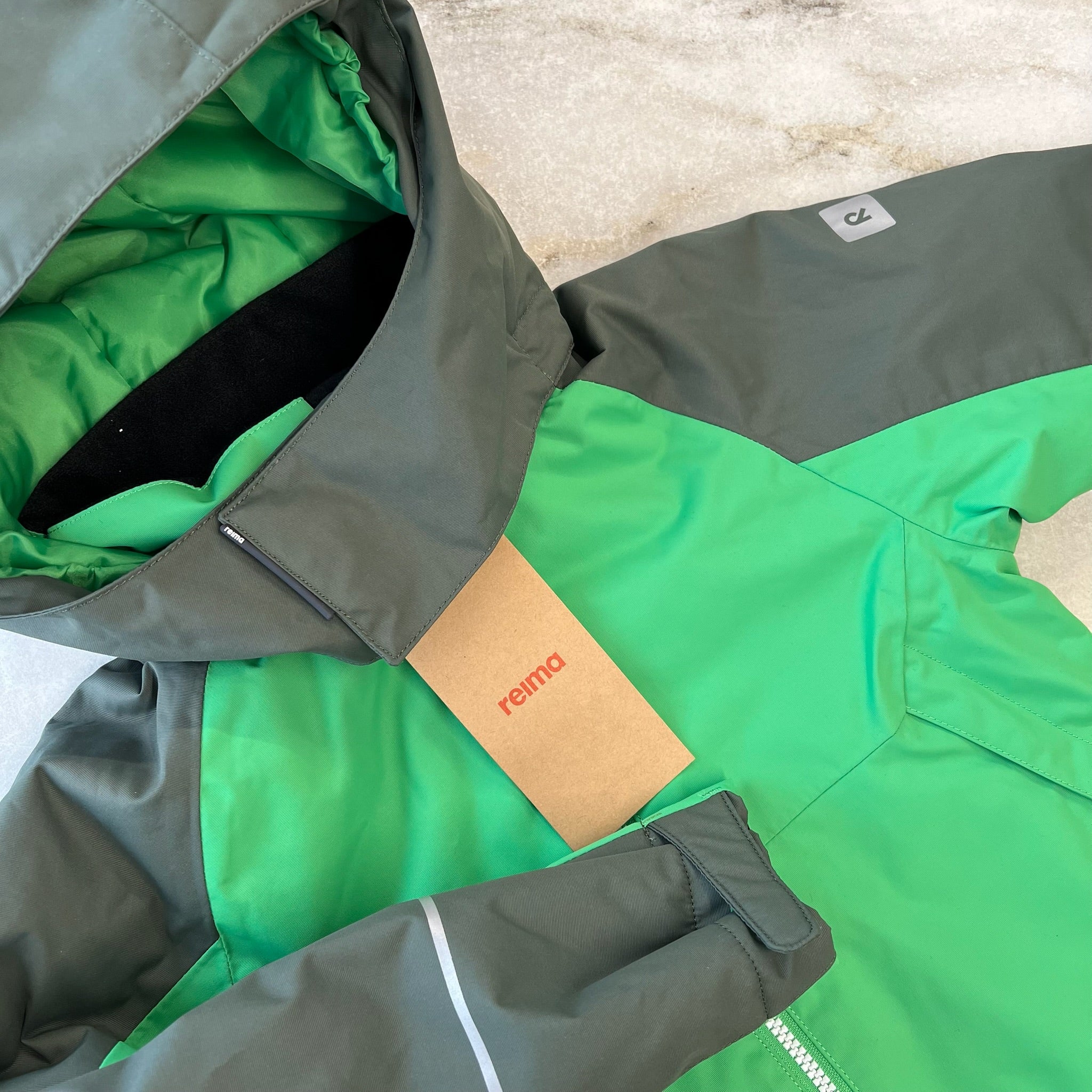 Manteau d'hiver de la marque Reima modèle Autti. Toutes les coutures de cette veste de ski pour enfants Reima sont scellées pour garantir une imperméabilité totale. Le matériau à base de fibres recyclées est imperméable et coupe-vent, tout en étant respirant. Grâce à la doublure lisse en fibres recyclées, cette veste d'hiver pour enfants est facile à porter et confortable, même lorsqu'elle est associée à des couches intermédiaires chaudes. Elle est équipée d'un ourlet et de poignets réglables pour une protection supplémentaire. La jupe pare-neige maintient la neige à distance et peut être fixée à un endroit spécial dans la doublure lorsqu'elle n'est pas utilisée. La capuche amovible et réglable est sûre car elle se détache facilement si elle s'accroche à quelque chose. Elle est également dotée d'un rabat coupe-vent et d'une visière qui protègent le cou. La veste est dotée d'une poche pratique pour le forfait de ski sur la manche. Elle peut également être séchée au sèche-linge pour être rapidement prête à repartir sur les pistes. D'une valeur de plus de 150$.