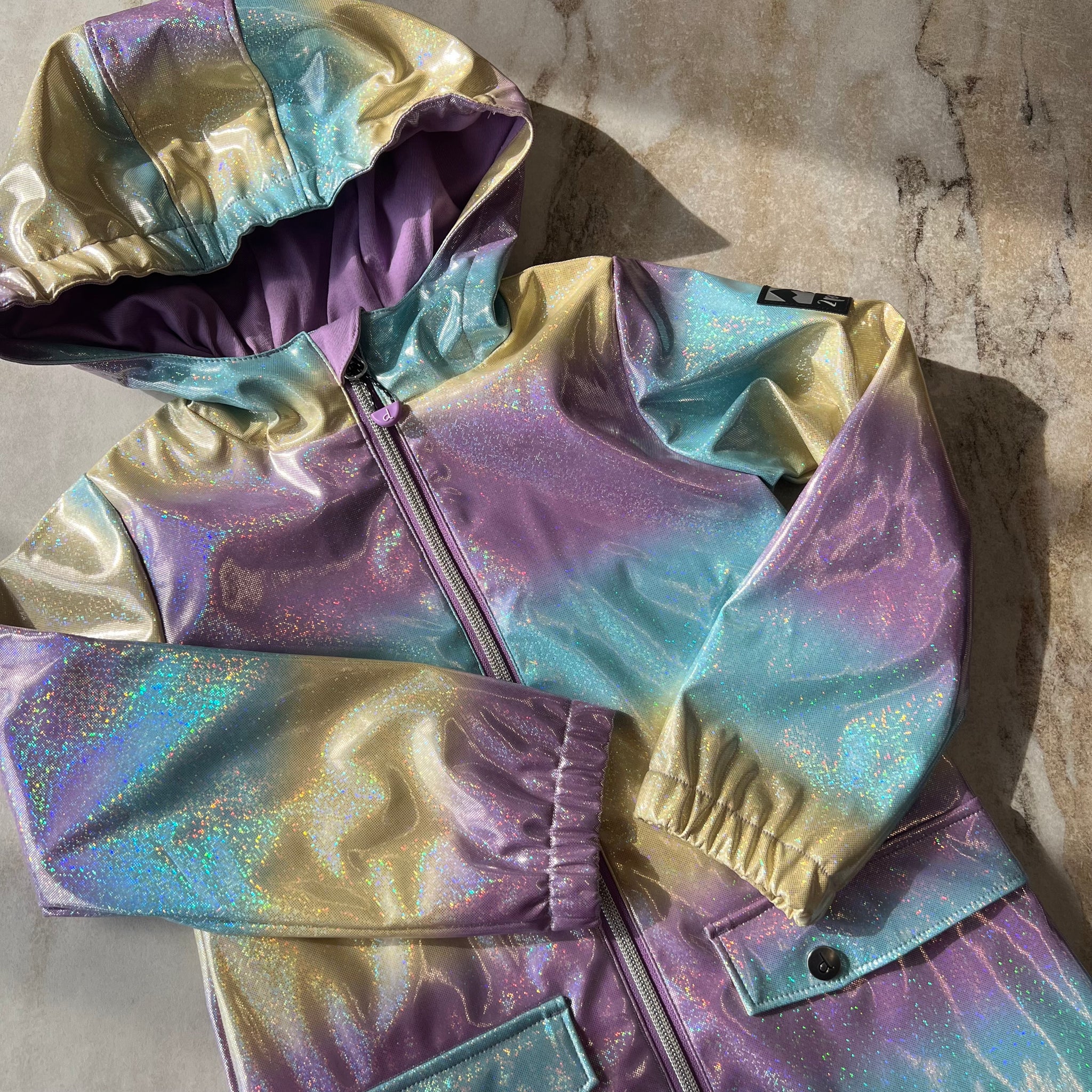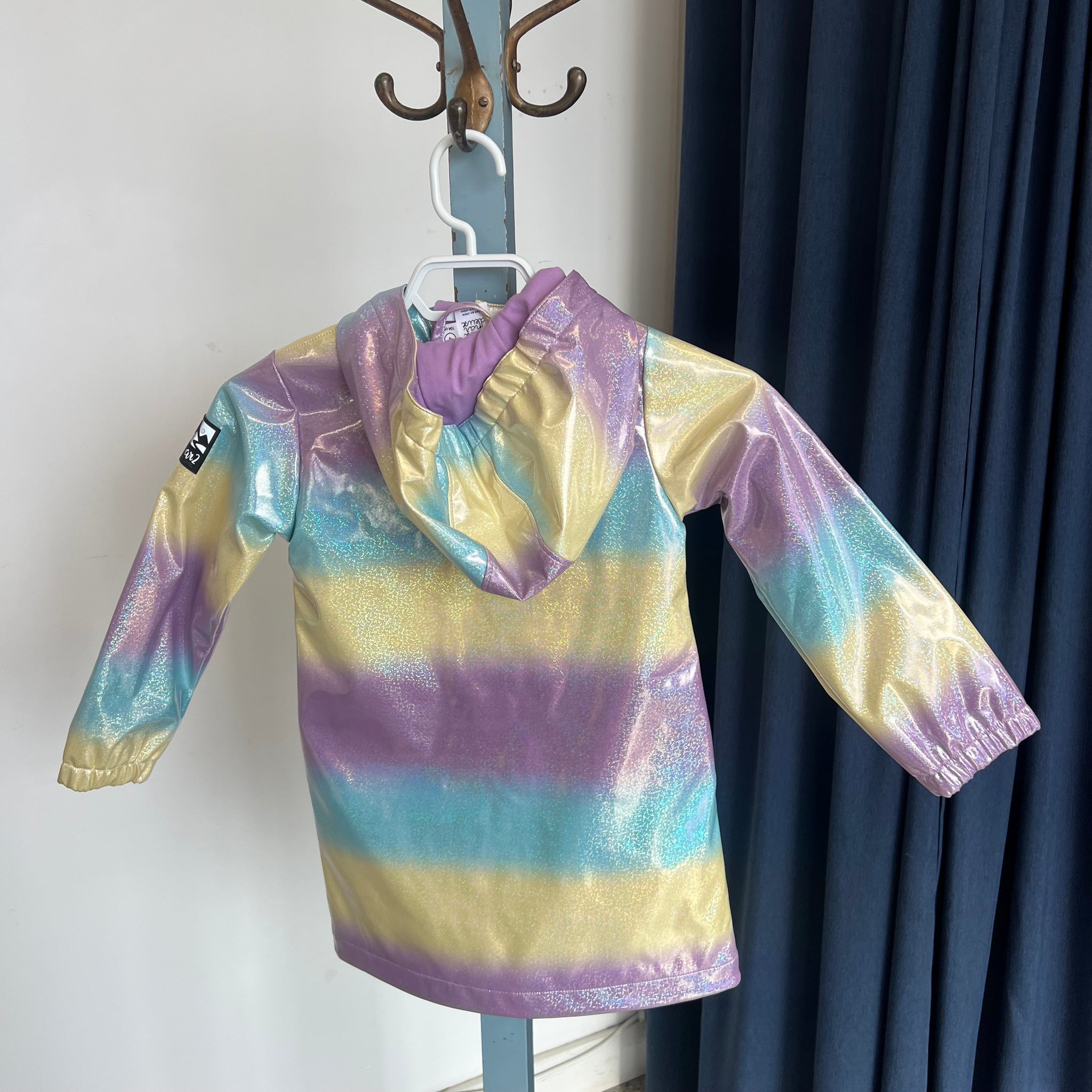 Cette adorable veste est fabriquée à partir de tissu recyclé et dispose d'un revêtement Teflon pour la déperlance, ainsi qu'un revêtement intérieur en polyuréthane qui la rend imperméable. Avec poches à rabat avec bouton-pression et une doublure en polyester pour le corps et une doublure en maille de coton doux pour la capuche