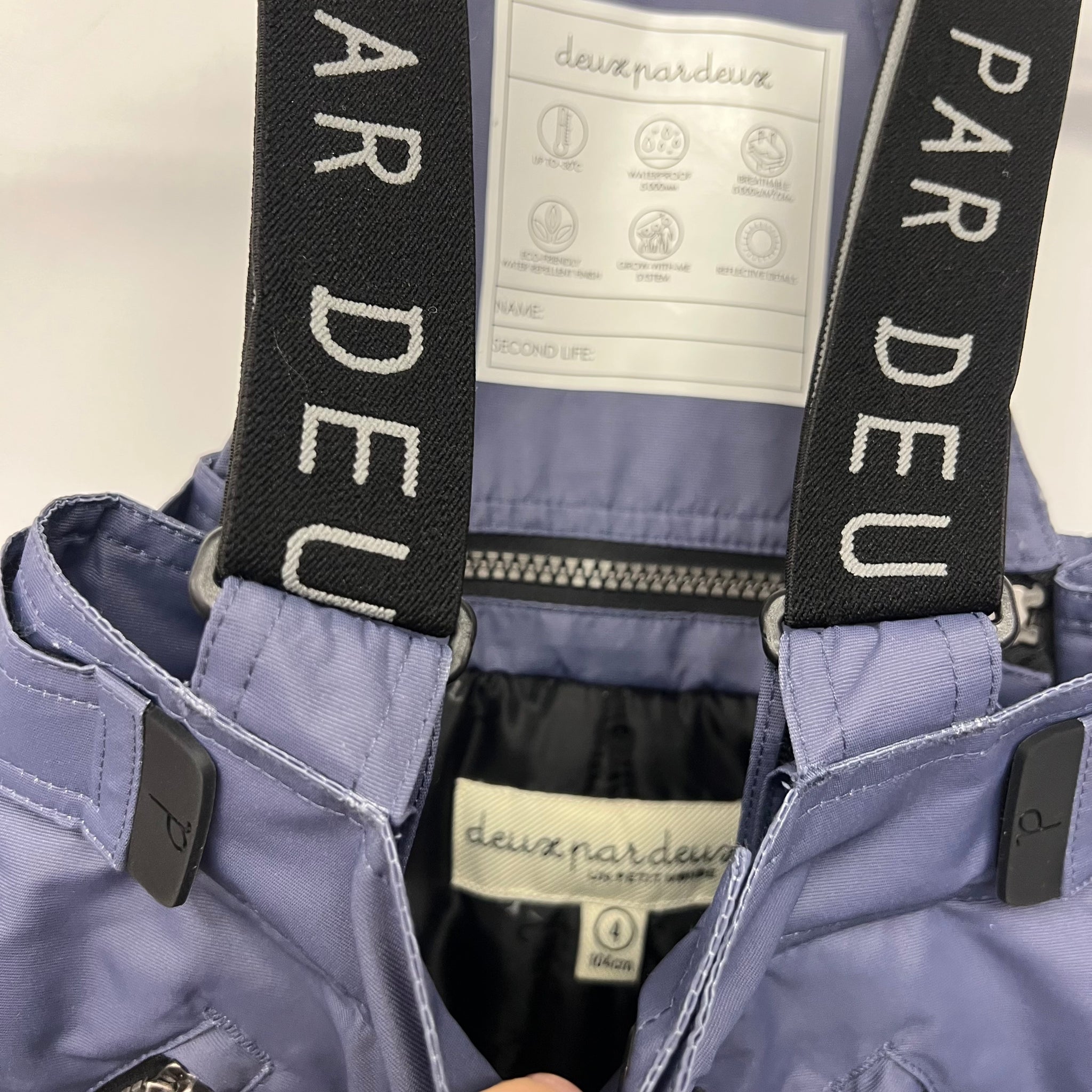 Pantalon de neige bleu pâle de la marque Deux par Deux. Chaud et résistant, conçu pour affronter l’hiver jusqu’à -30 °C (-22 °F). Isolation en fibres de polyester (170 g), tissu imperméable (5000 mm) et respirant (5000 g/m²/24h), idéal pour les activités hivernales.