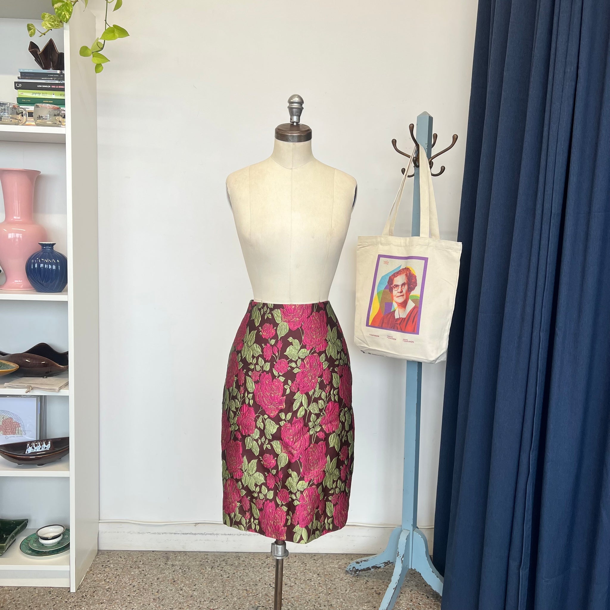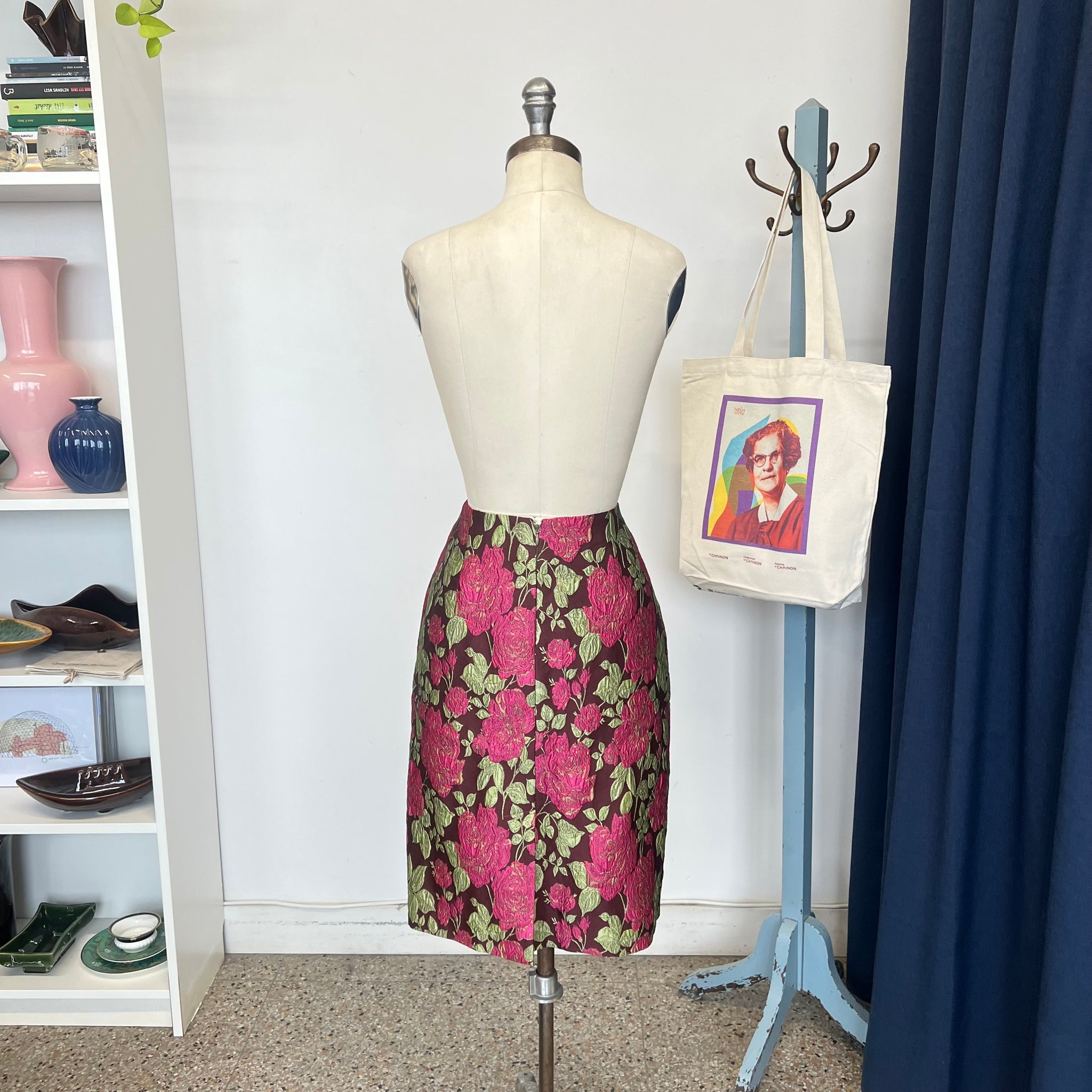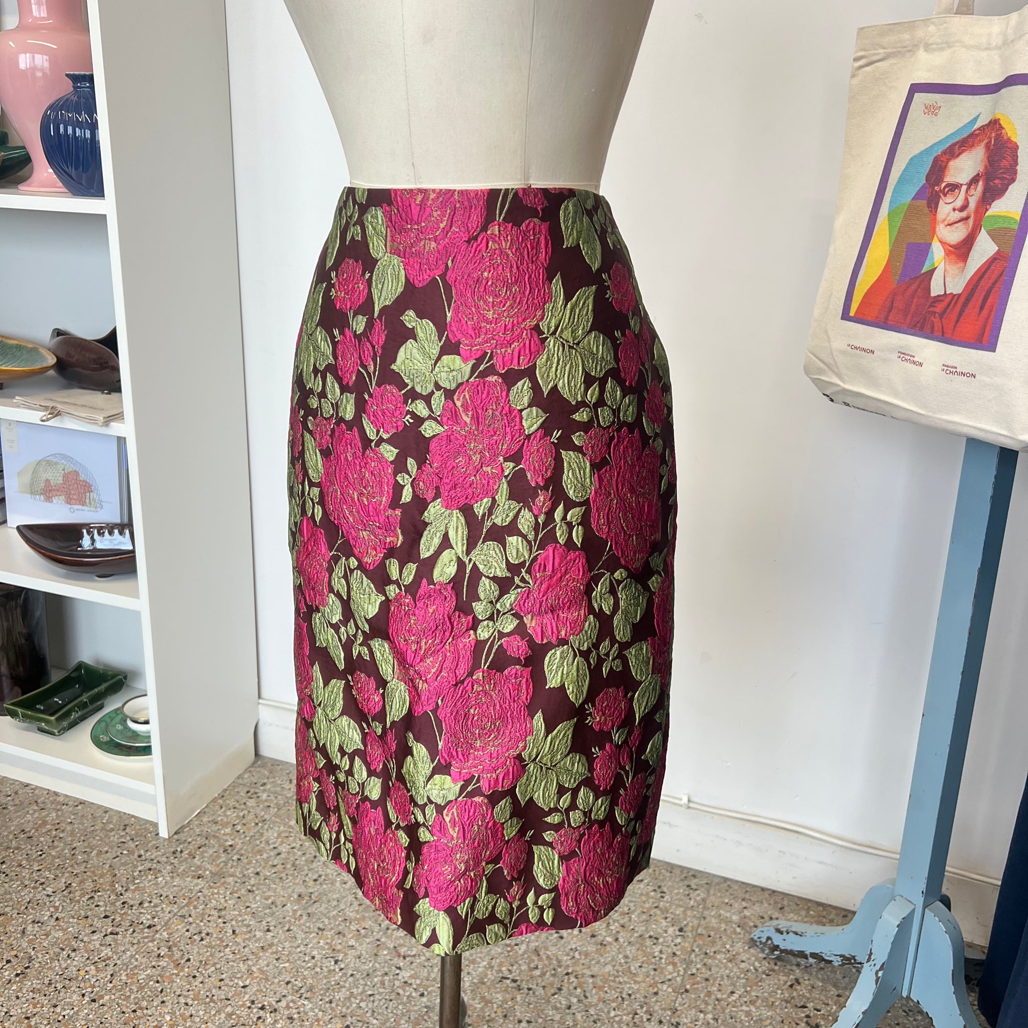 Jupe fleurie de la marque québécoise Ariane Carle Design. Avec doublure et fermeture éclair arrière. D'une valeur de 895$.