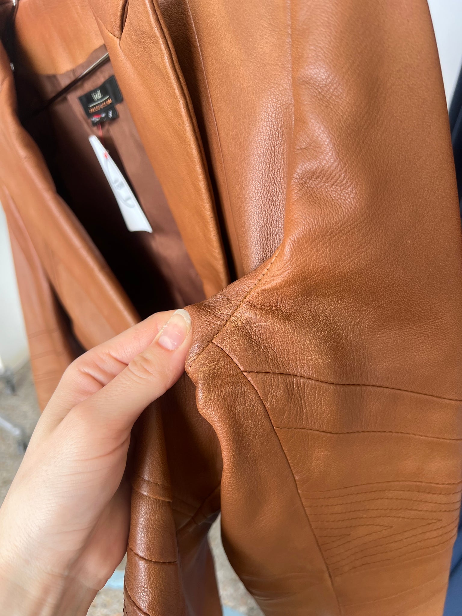 Condition : Bon état, décoloration naturelle du cuir sur l'ensemble de la veste, usure plus prononcée sous l'aisselle gauche, voir photo
