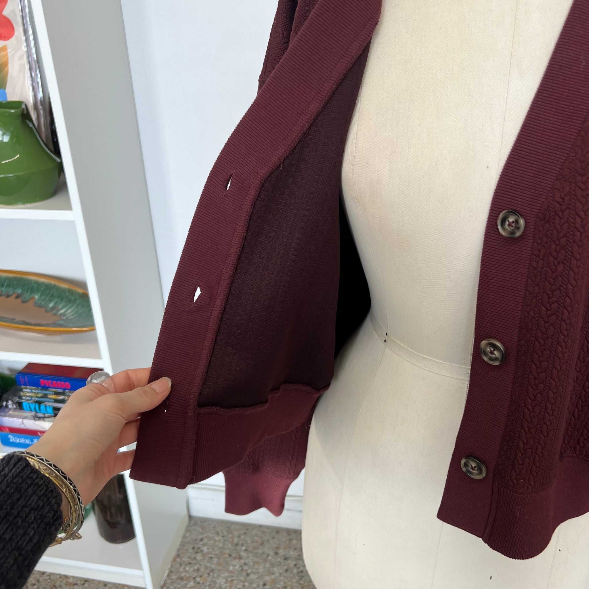 Chandail de style cardigan twik Simons. Avec finition cotelé, non doublée mais très confortable, 3 boutons.
