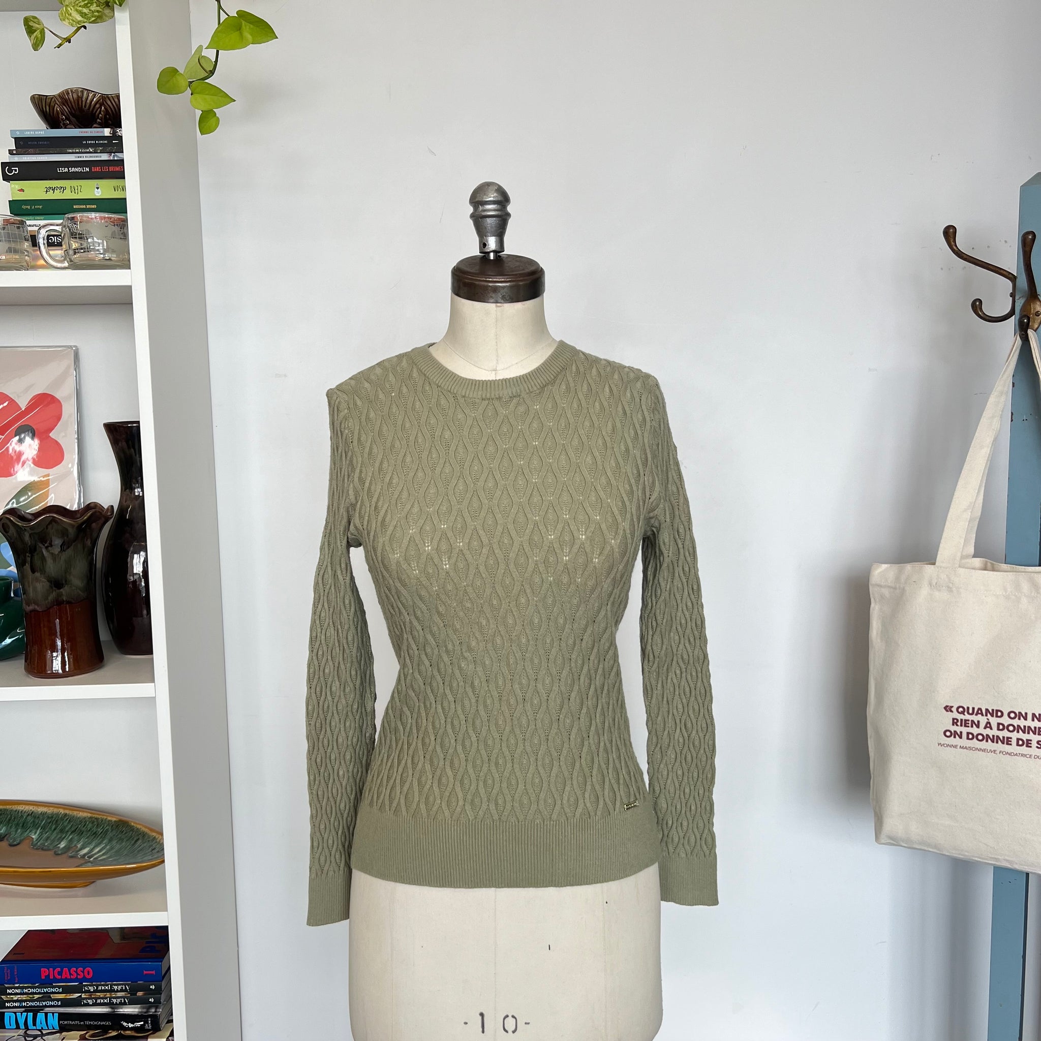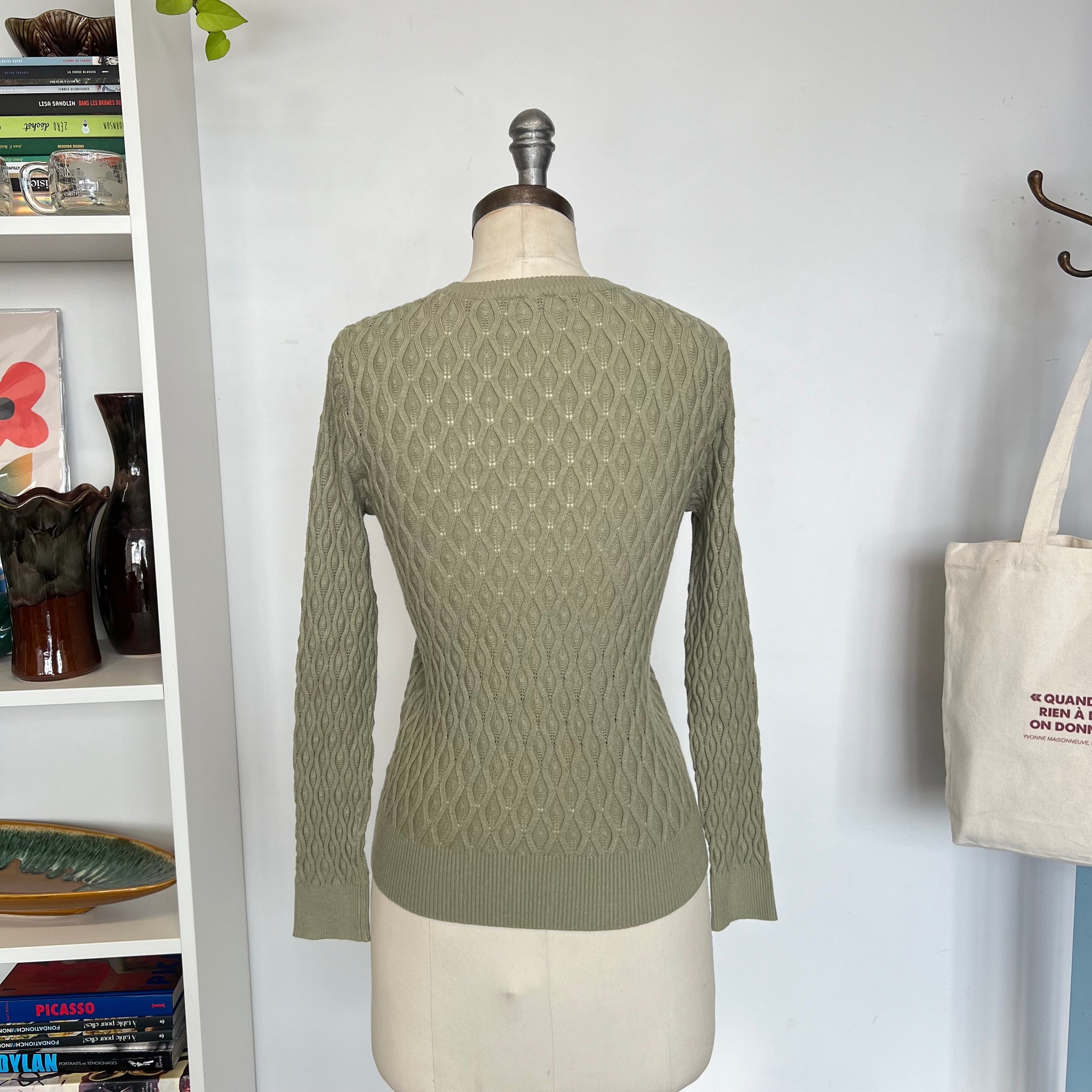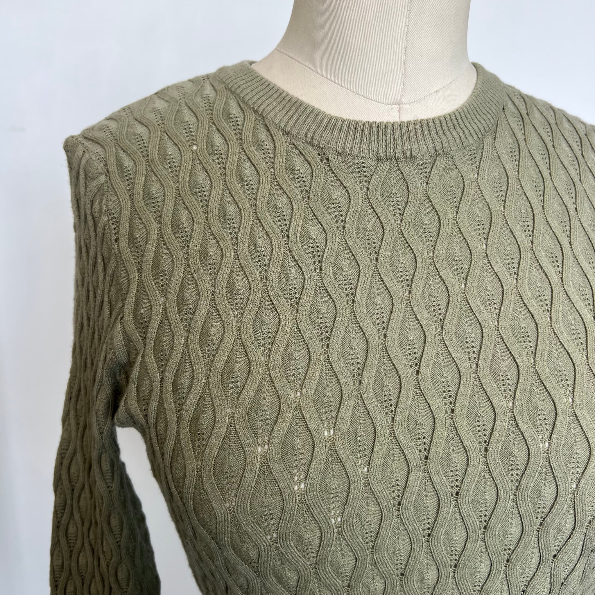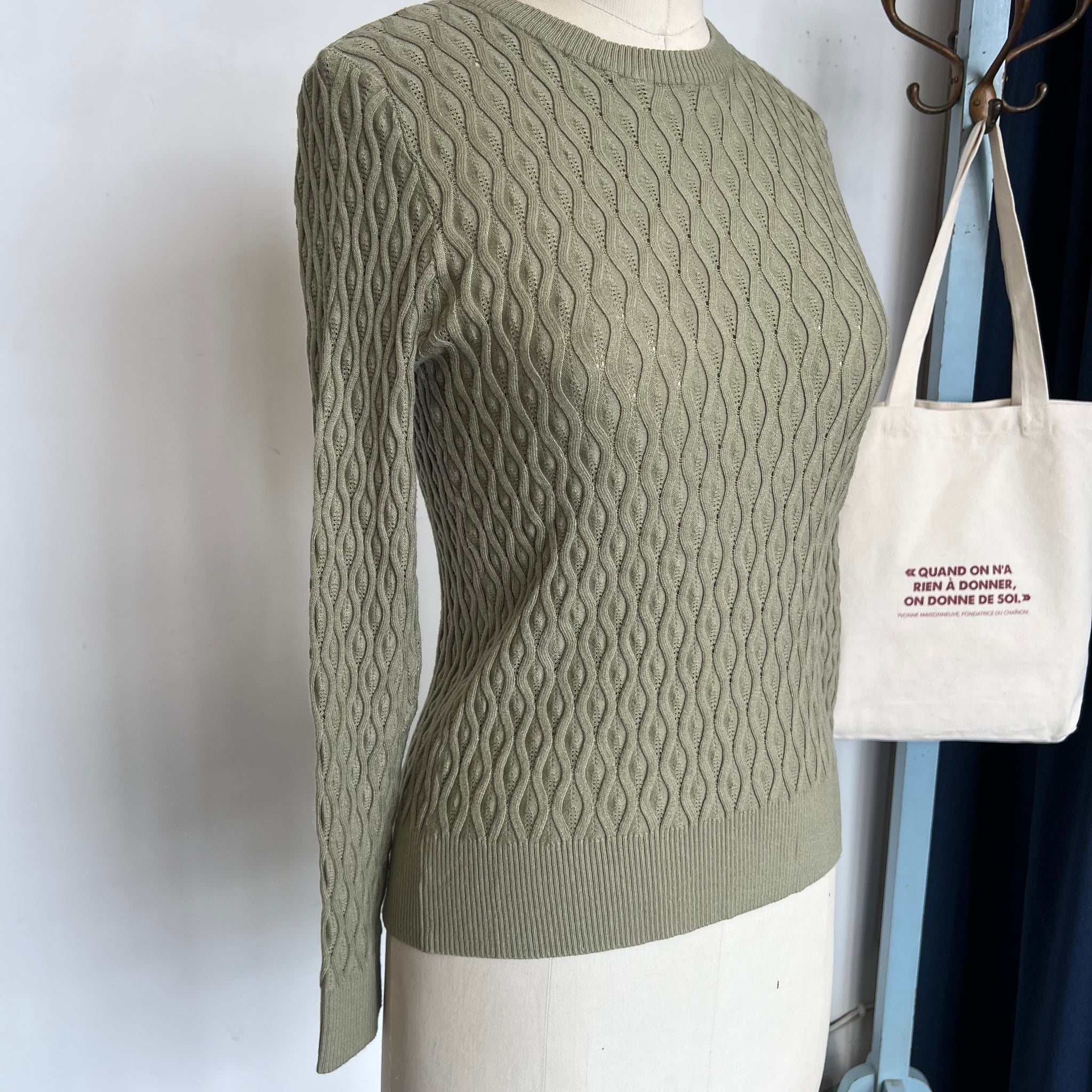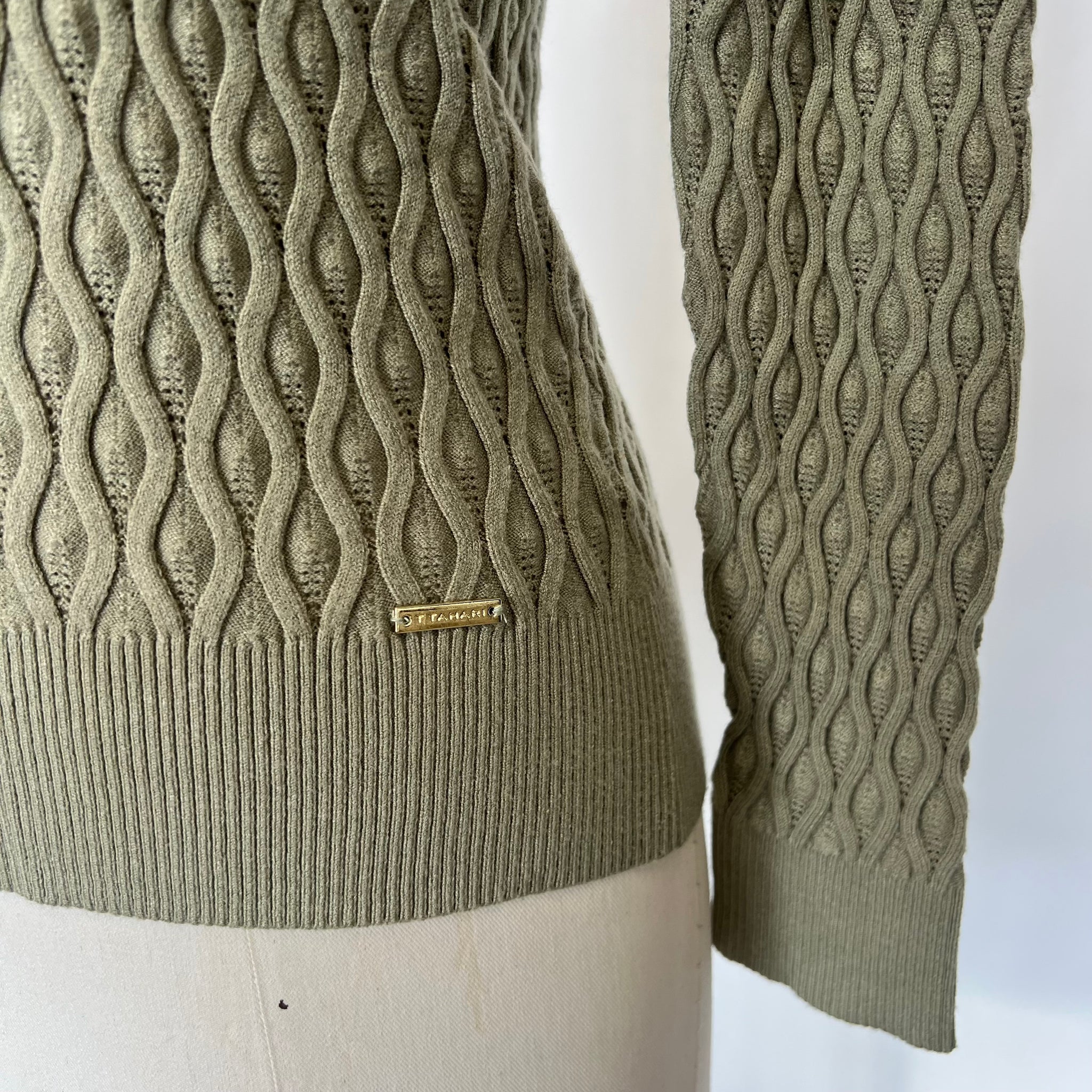 Pull cotelé de la marque Tahari. Doit être porté avec une camisole car tricot avec trous. Super douillet.