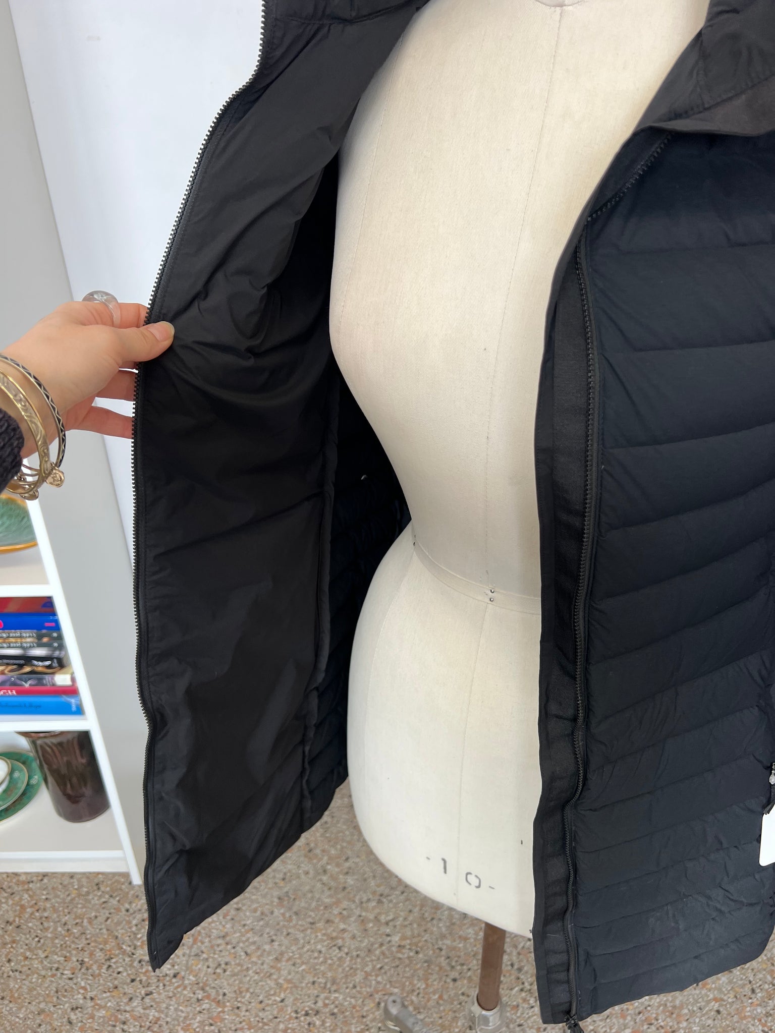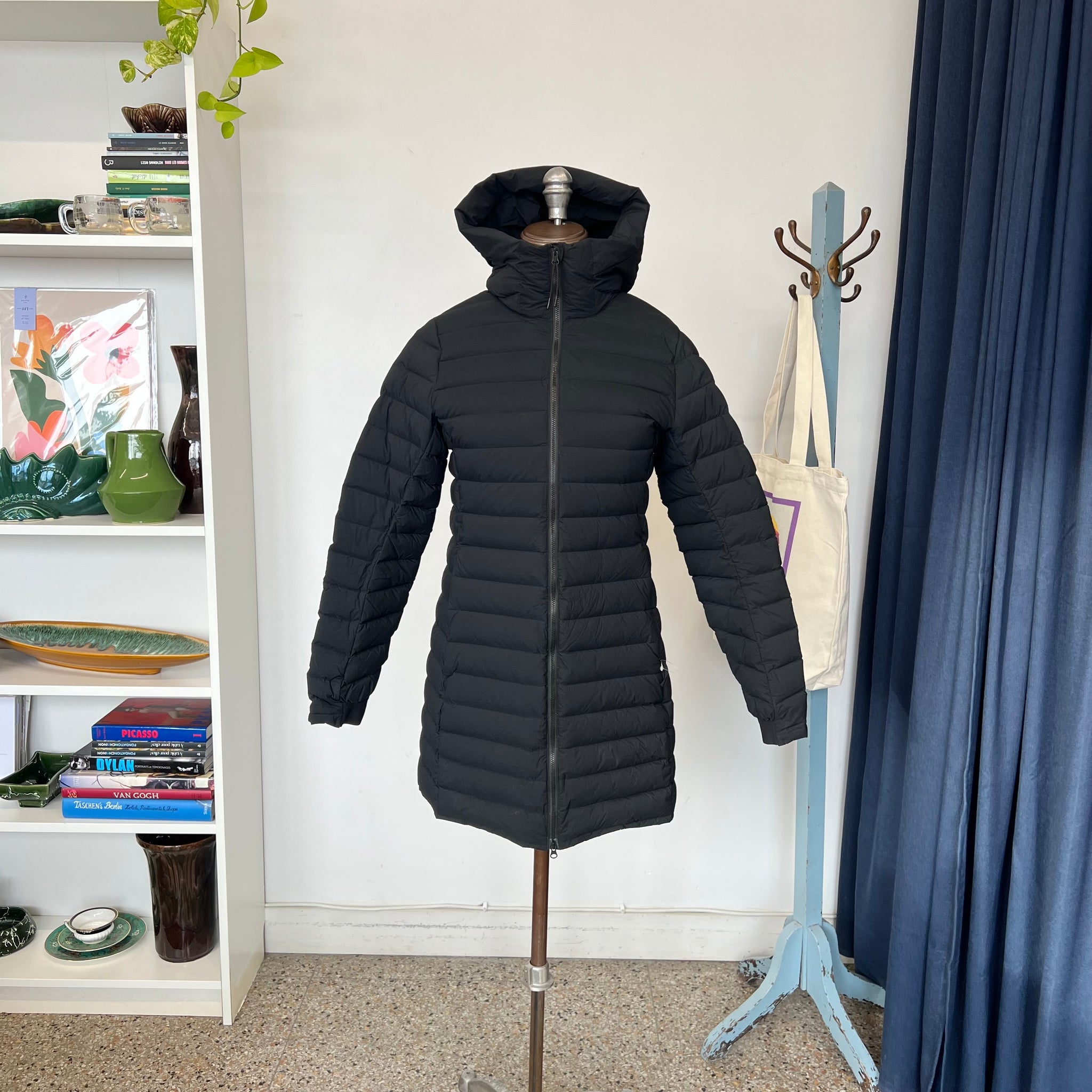 Manteau doudoune pour femme de la marque québécoise Vallier. Avec poches latérales, double fermeture éclair et capuchon.