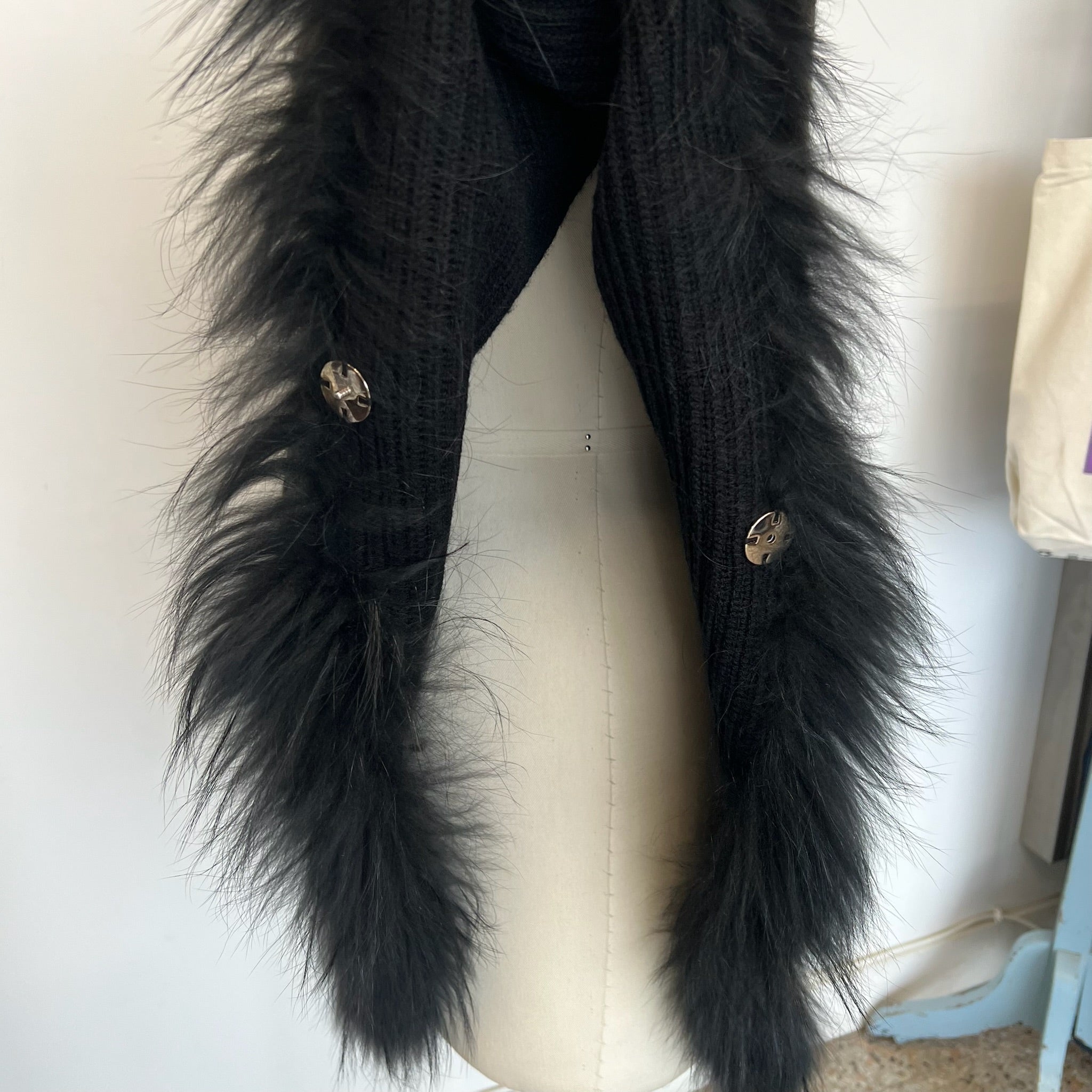 Composition: 50% laine, 50% acrylique, fourrure de raton laveur