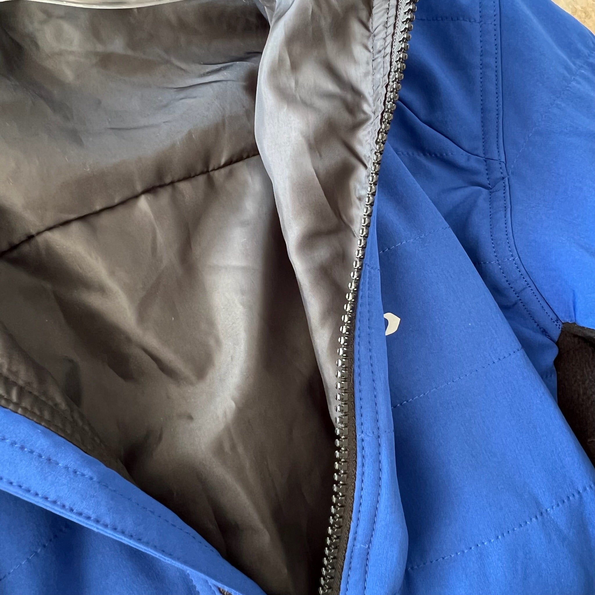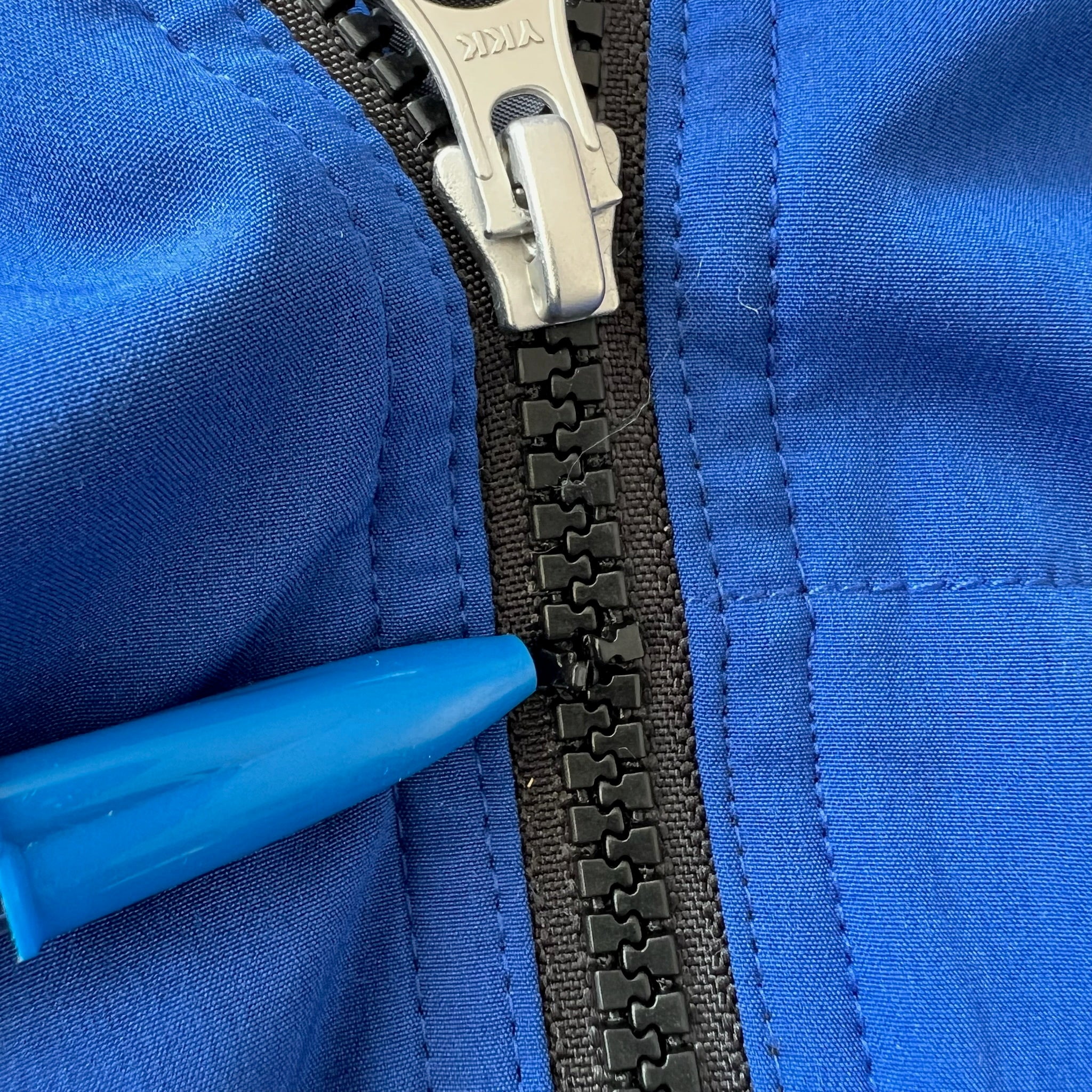 Pourquoi dans Les Mal-Aimés? Fermeture éclair brisée ne ferme pas jusqu'à la moitié, s'enfile tout de même par la tête, voir photos