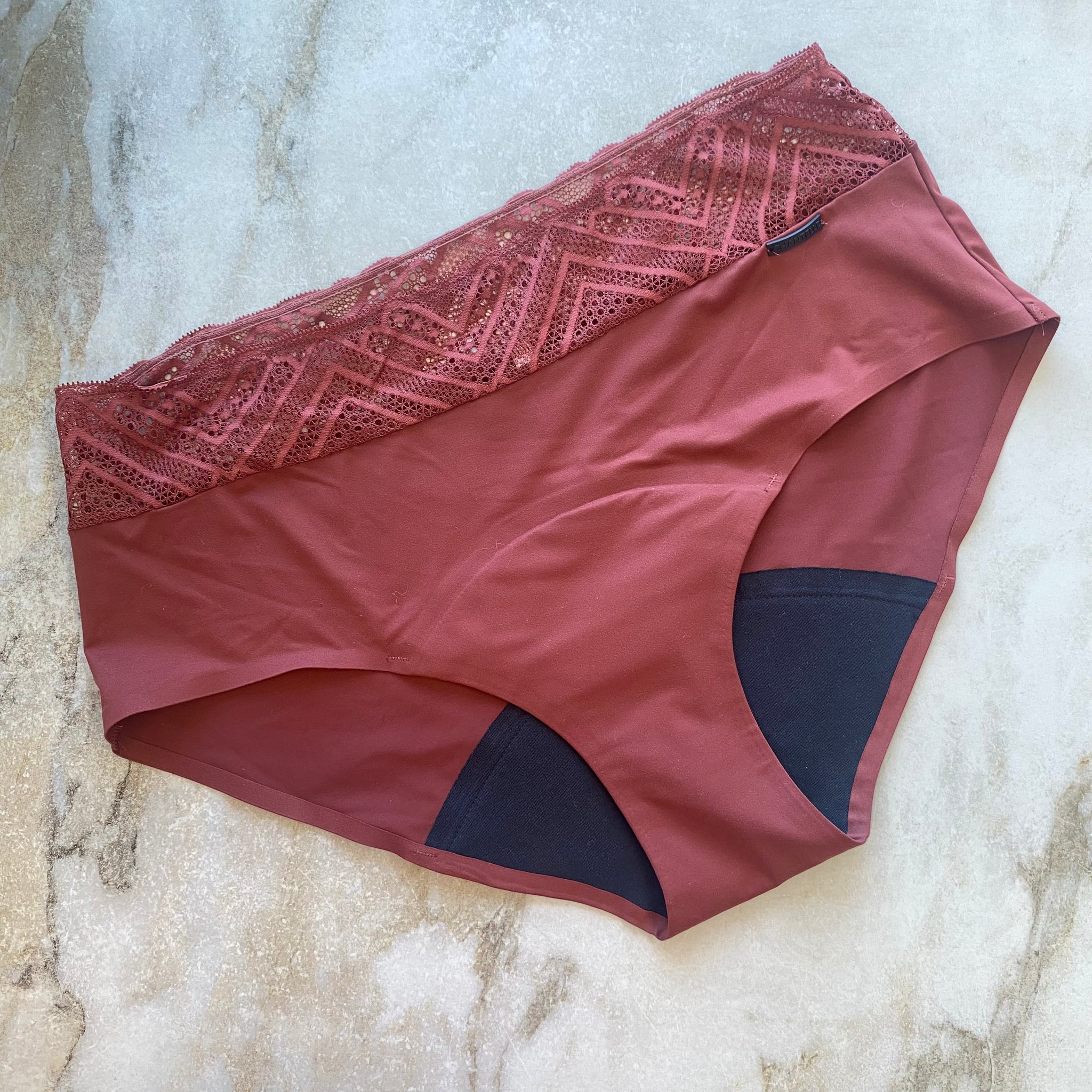 Culottes menstruelles de la marque Chantelle, bande de dentelle à la taille. Protection mince.