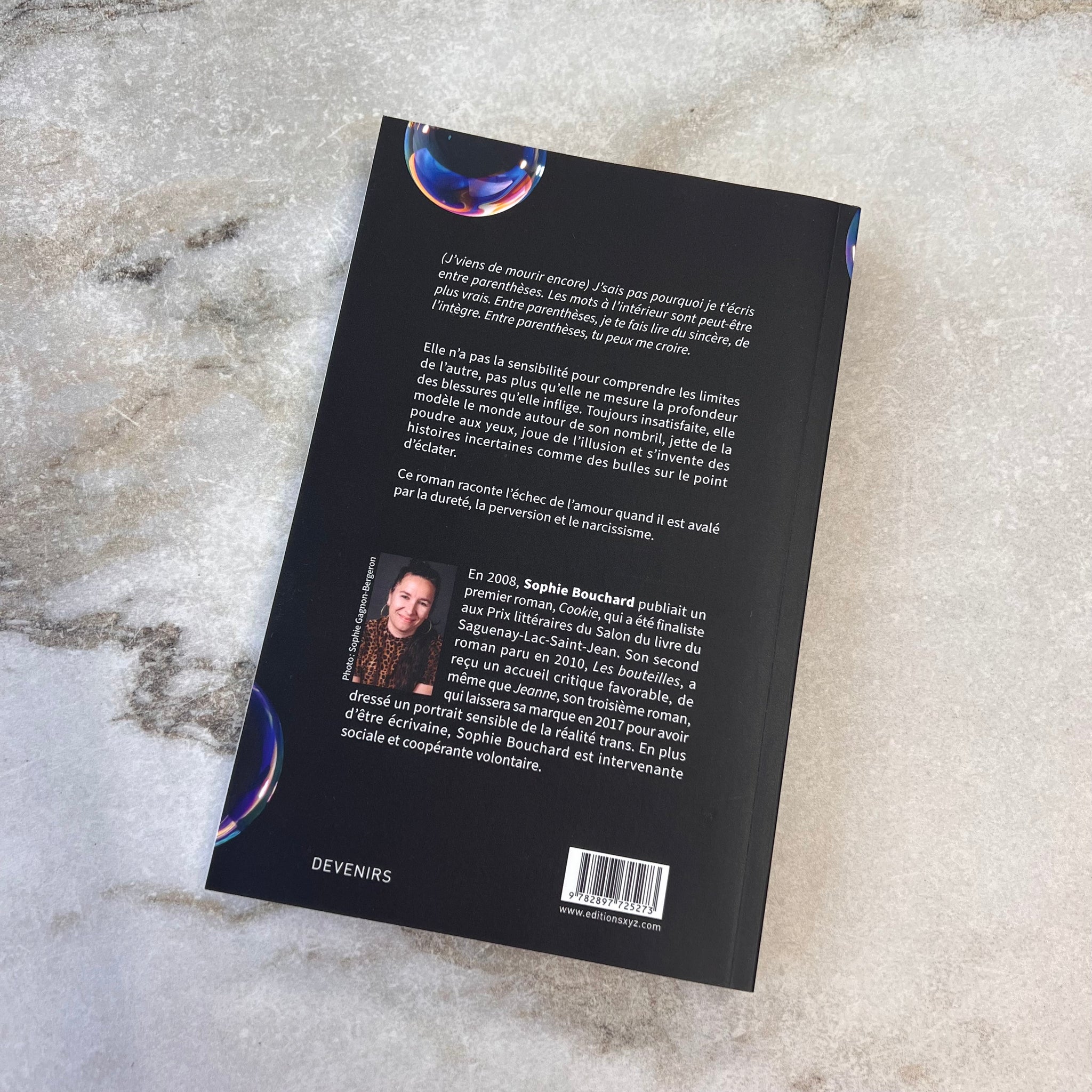 (J’viens de mourir encore) J’sais pas pourquoi je t’écris entre parenthèses. Les mots à l’intérieur sont peut-être plus vrais. Entre parenthèses, je te fais lire du sincère, de l’intègre. Entre parenthèses, tu peux me croire. Elle n’a pas la sensibilité pour comprendre les limites de l’autre, pas plus qu’elle ne mesure la profondeur des blessures qu’elle inflige. Toujours insatisfaite, elle modèle le monde autour de son nombril, jette de la poudre aux yeux, joue de l’illusion et s’invente des histoires incertaines comme des bulles sur le point d’éclater. Ce roman raconte l’échec de l’amour quand il est avalé par la dureté, la perversion et le narcissisme..