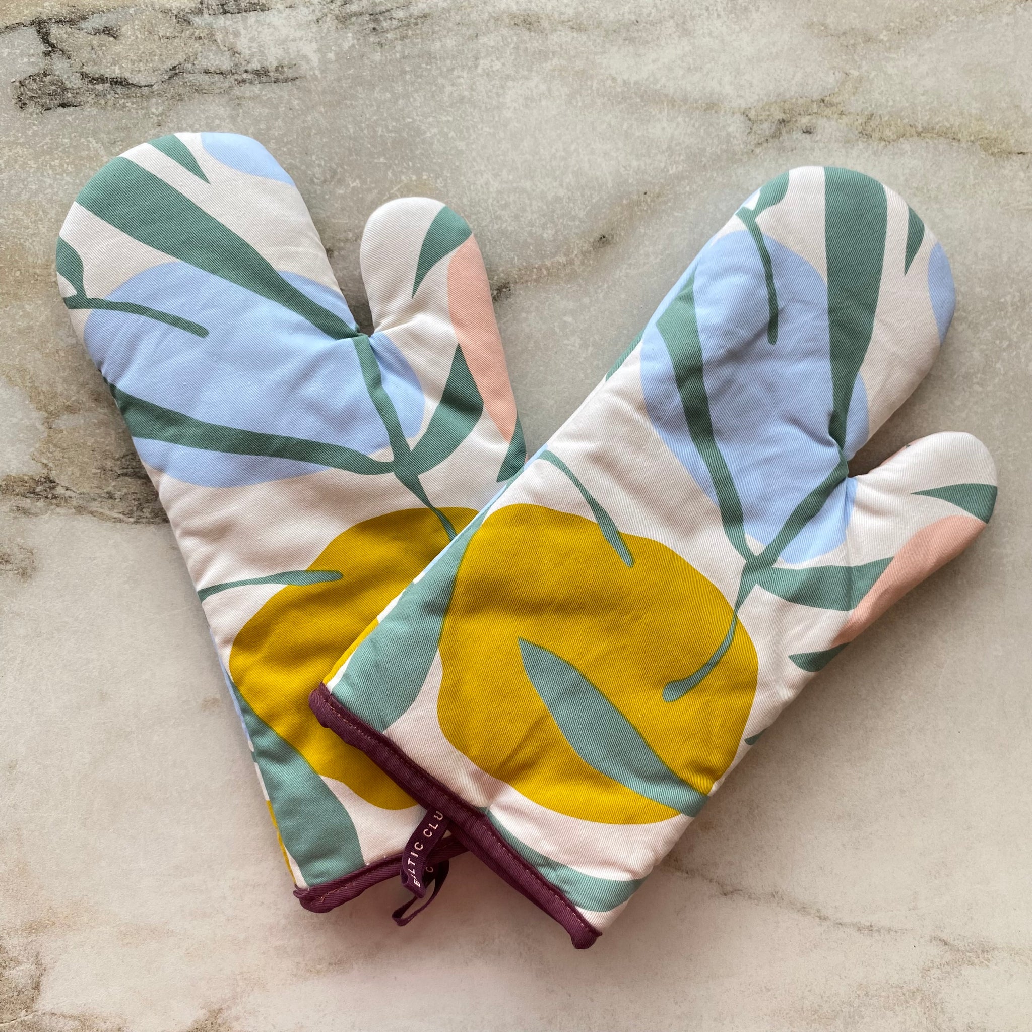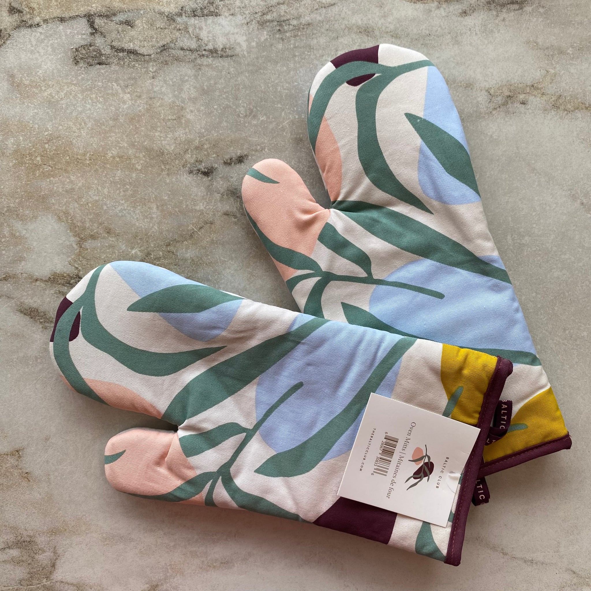 Mitaines de four (2) de la marque Baltic Club. Protégez vos mains en cuisinant avec ces mitaines de four 100% coton. Garantie de confort et de sécurité avec une touche de style à votre cuisine!
