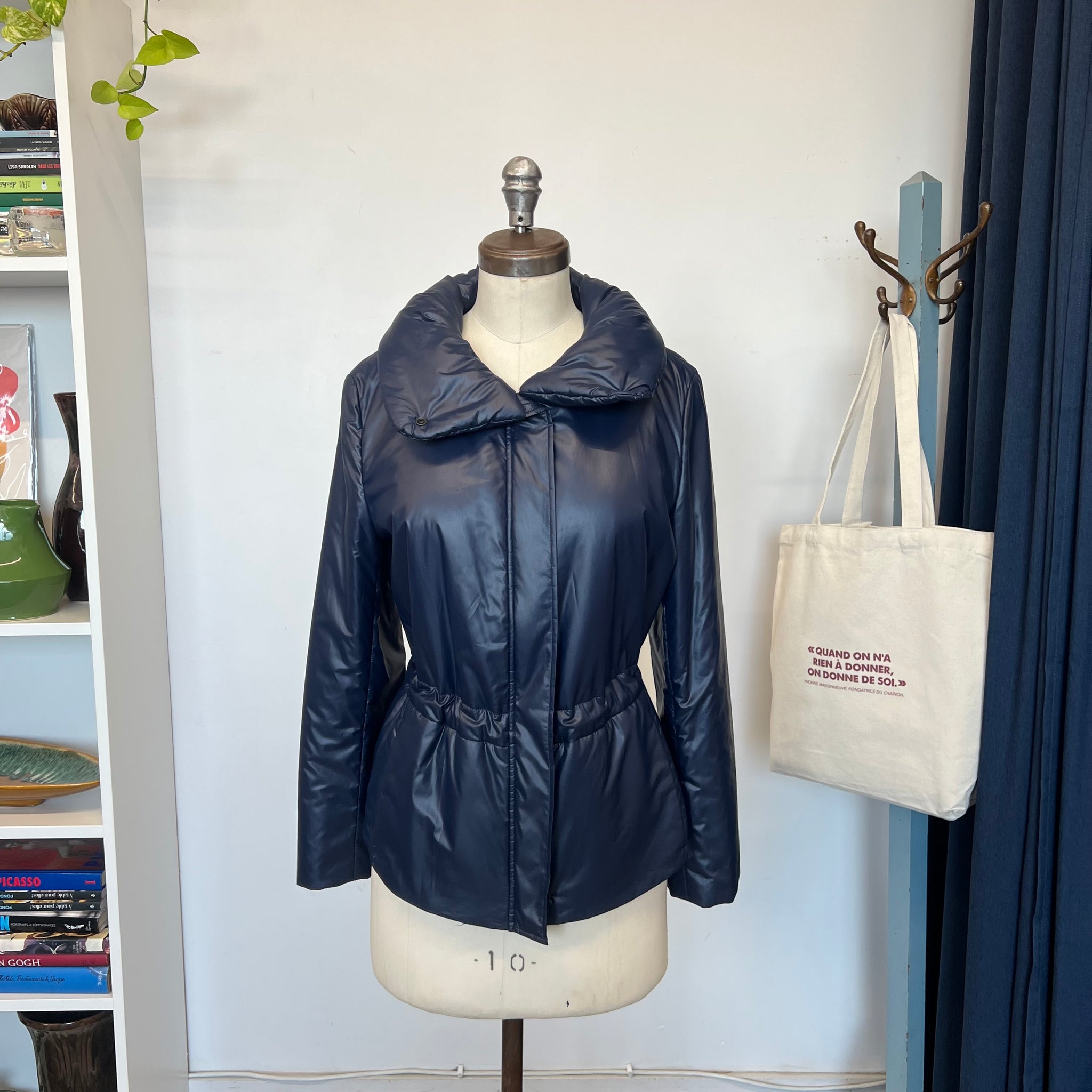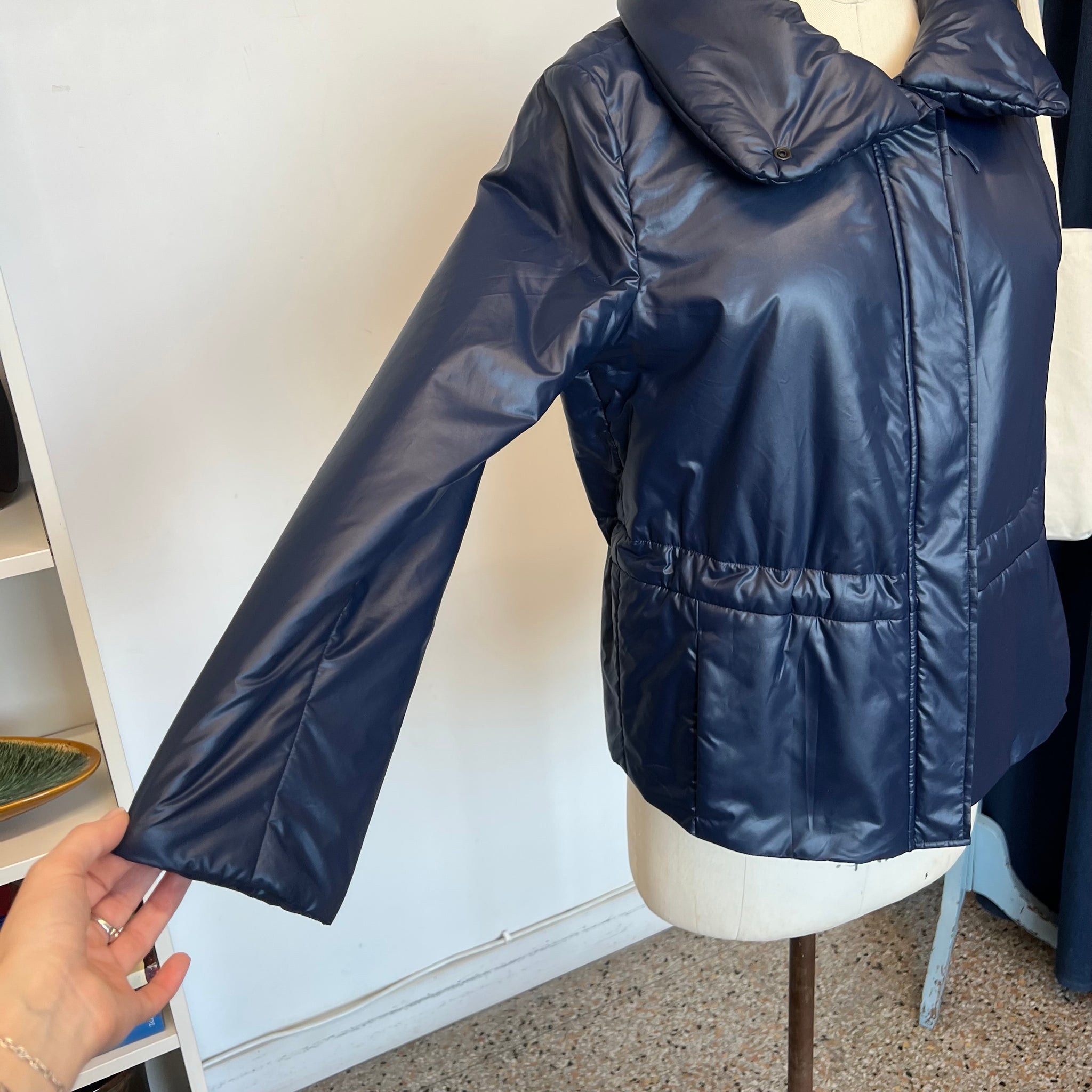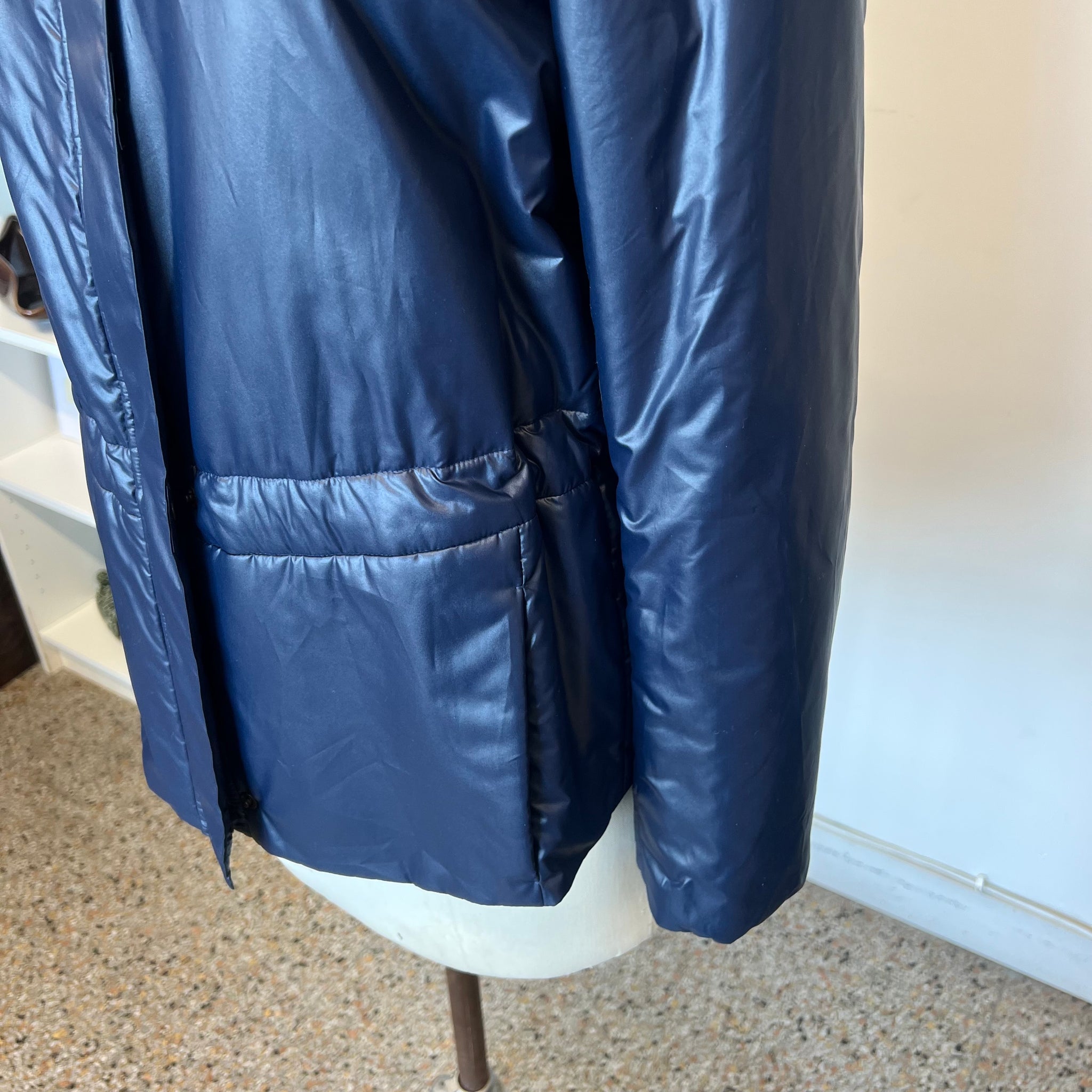 Manteau Akris Punto. Avec ornement à volants et col haut. Poches fentes et fermeture éclair. Avec fermeture éclair longue et boutons-pression. Ajustable à la taille, elle possède deux poches latérales et un col sophistiqué zippé. Déperlante, elle est idéale pour la mi-saison. Sa belle couleur bleu mat et chaude rehaussera de nombreuses tenues. Les vestes d’Akris Punto sont généralement petites, pensez à prendre une taille au-dessus.