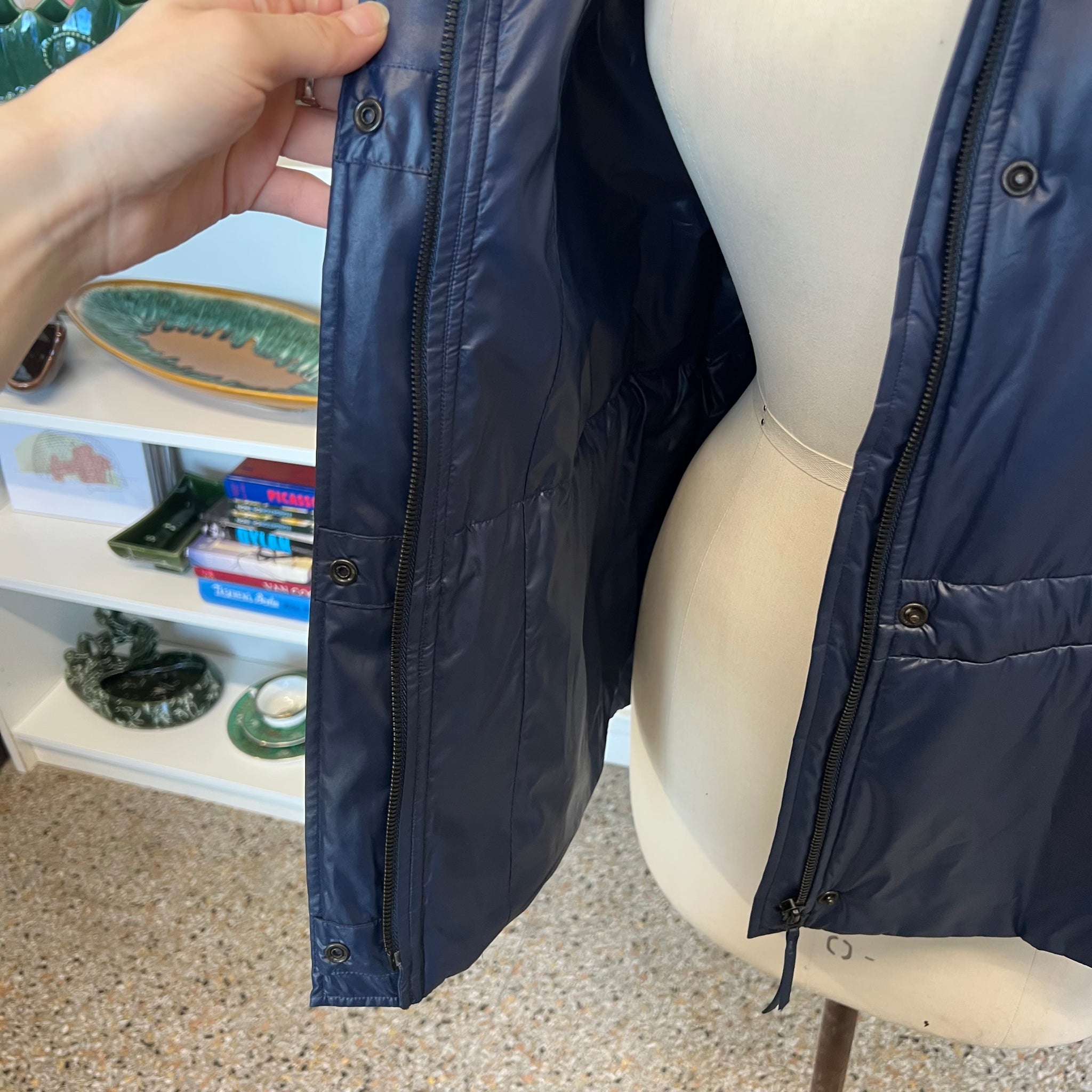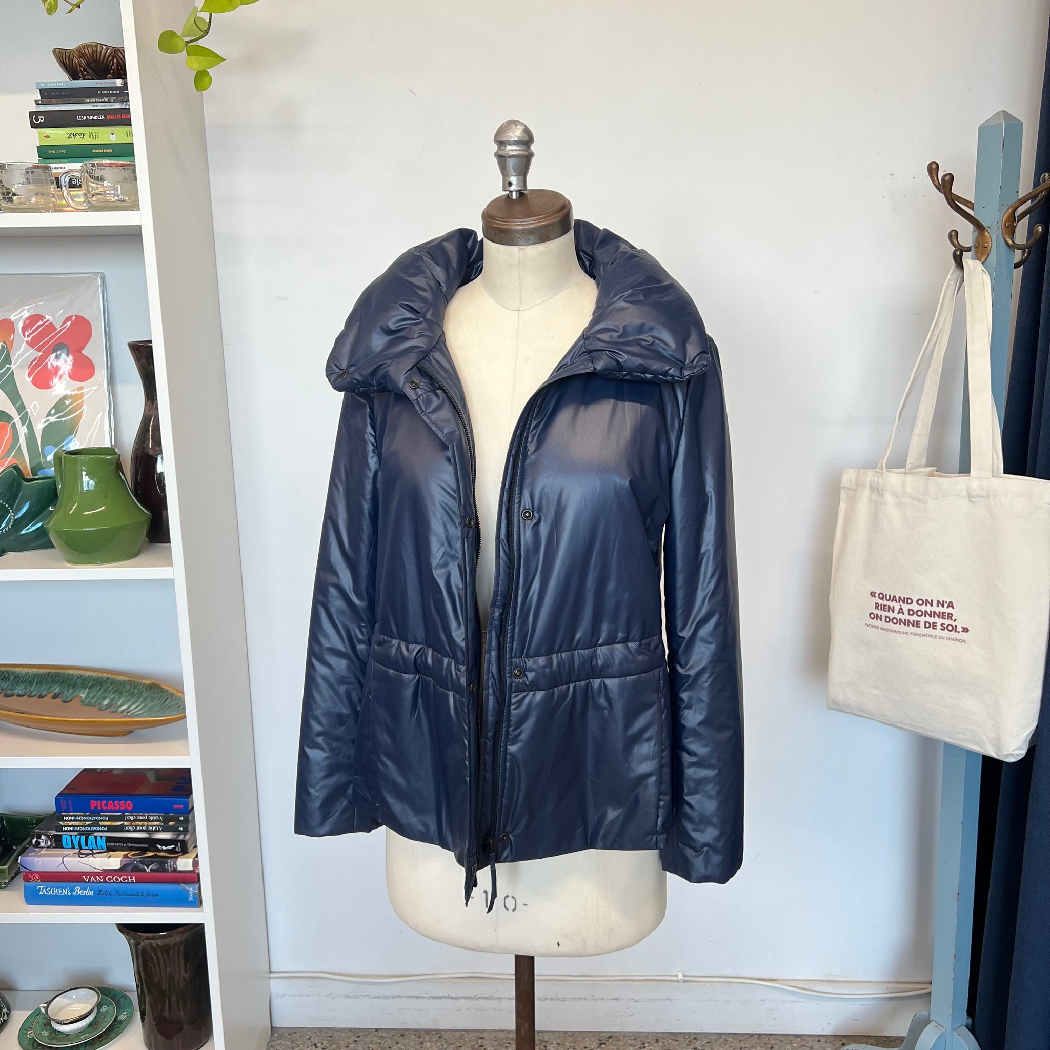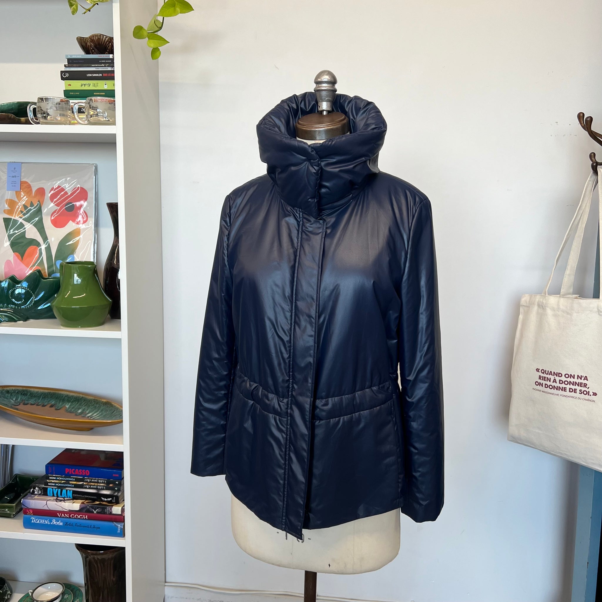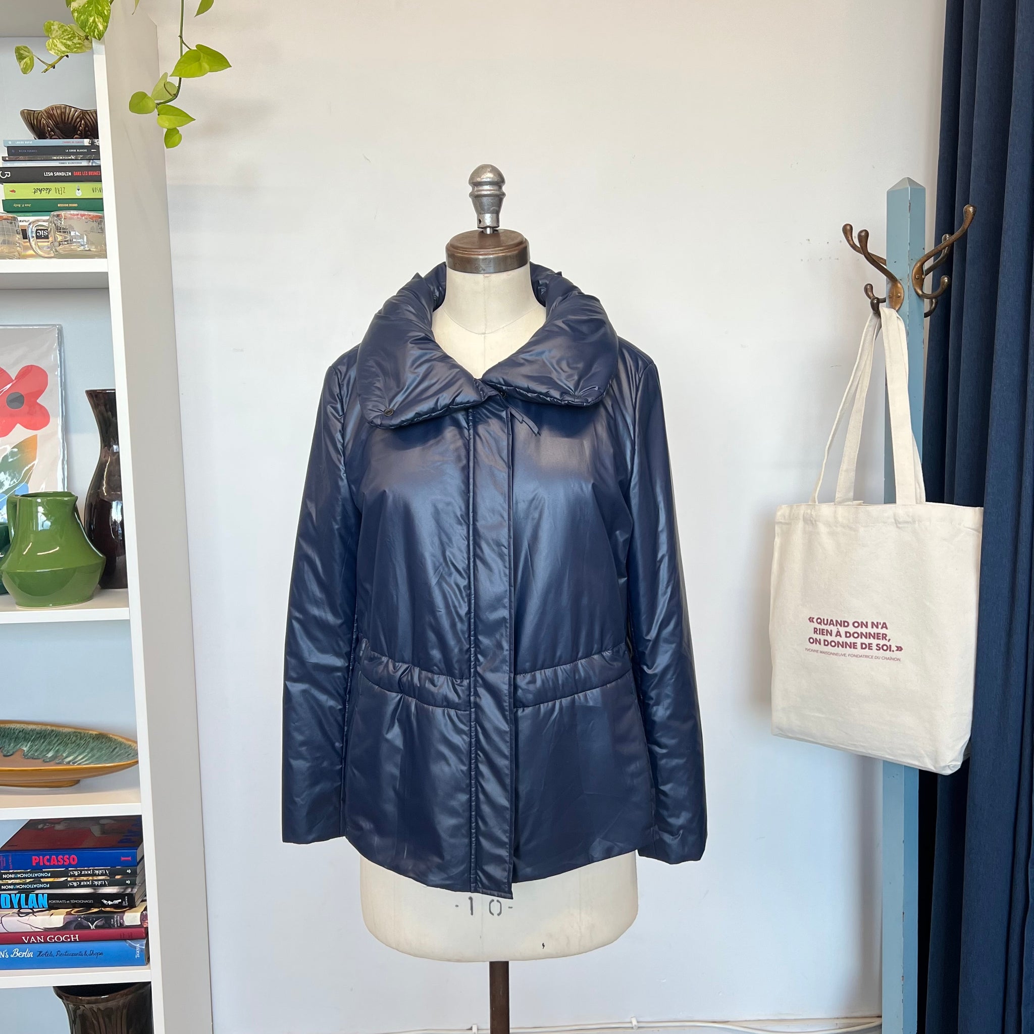 Manteau Akris Punto. Avec ornement à volants et col haut. Poches fentes et fermeture éclair. Avec fermeture éclair longue et boutons-pression. Ajustable à la taille, elle possède deux poches latérales et un col sophistiqué zippé. Déperlante, elle est idéale pour la mi-saison. Sa belle couleur bleu mat et chaude rehaussera de nombreuses tenues. Les vestes d’Akris Punto sont généralement petites, pensez à prendre une taille au-dessus.
