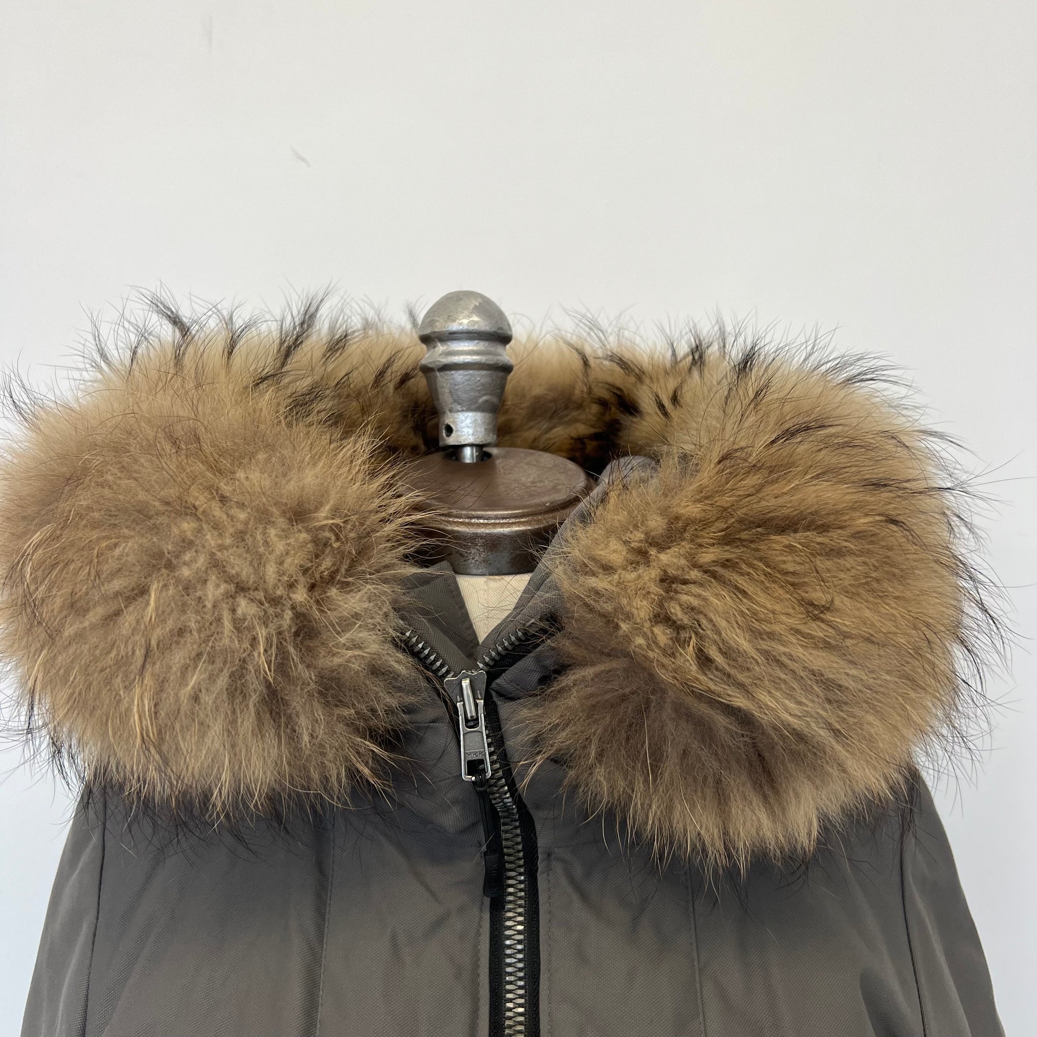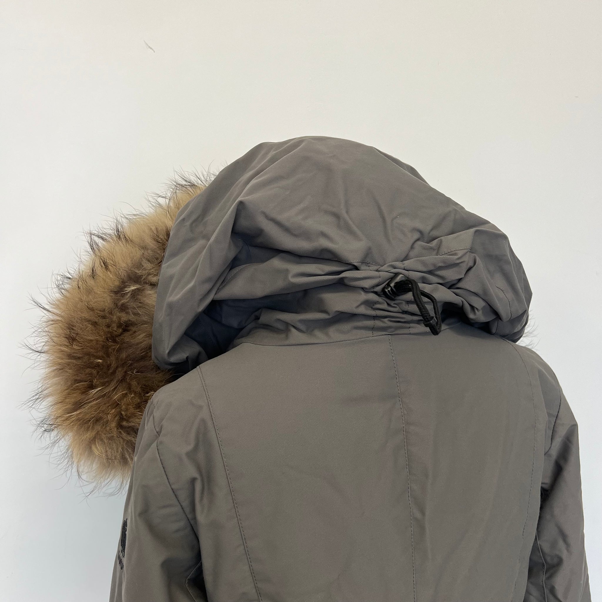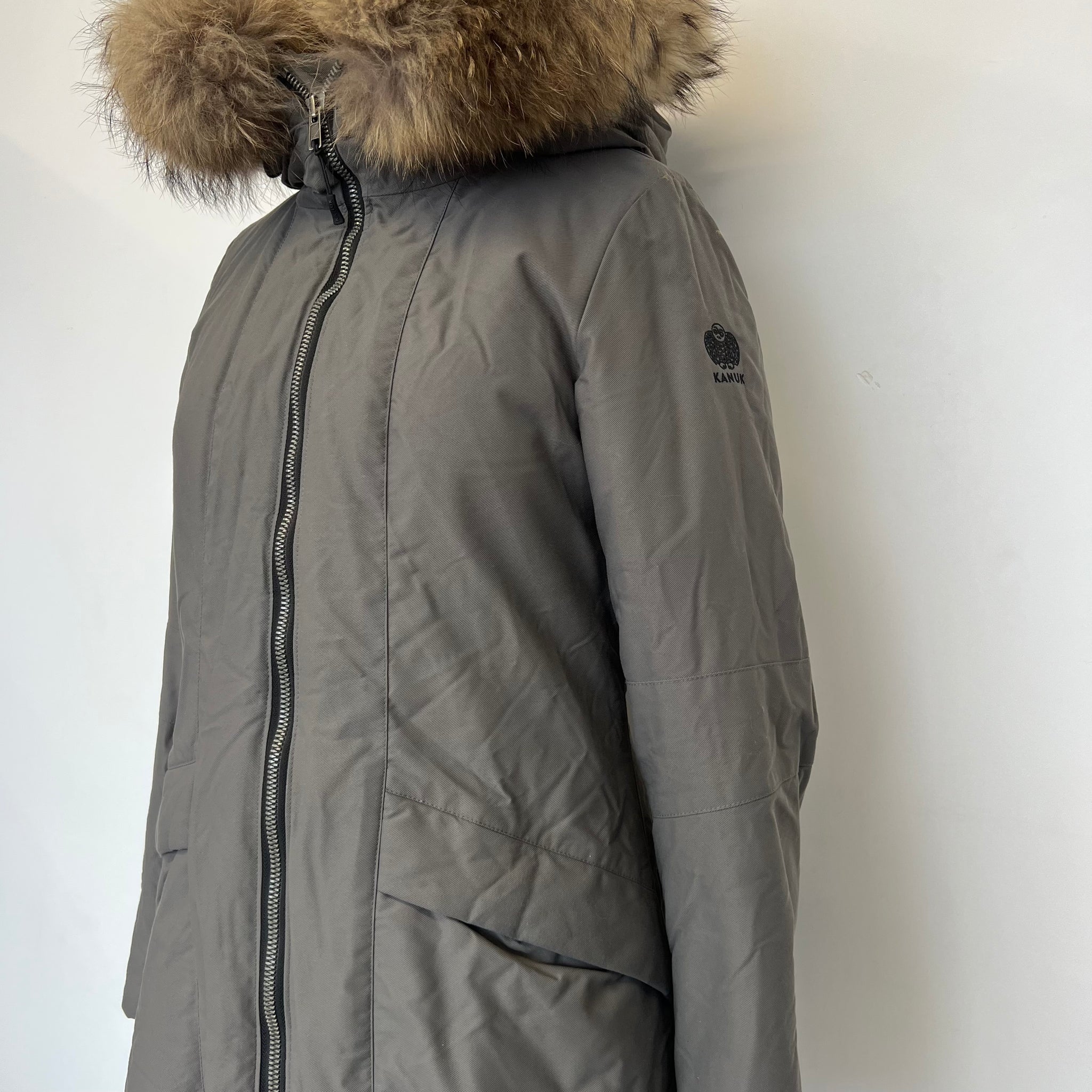 Manteau de la marque Kanuk issu de la collaboration Kanuk+Dubuc modèle Glacier. Long avec capuchon en fourrure amovible, deux larges poches verticales et une pochette intérieure à la poitrine. Manches coudées préformés. Languettes curseurs. Avec logo emblématique brodé sur l'épaule.