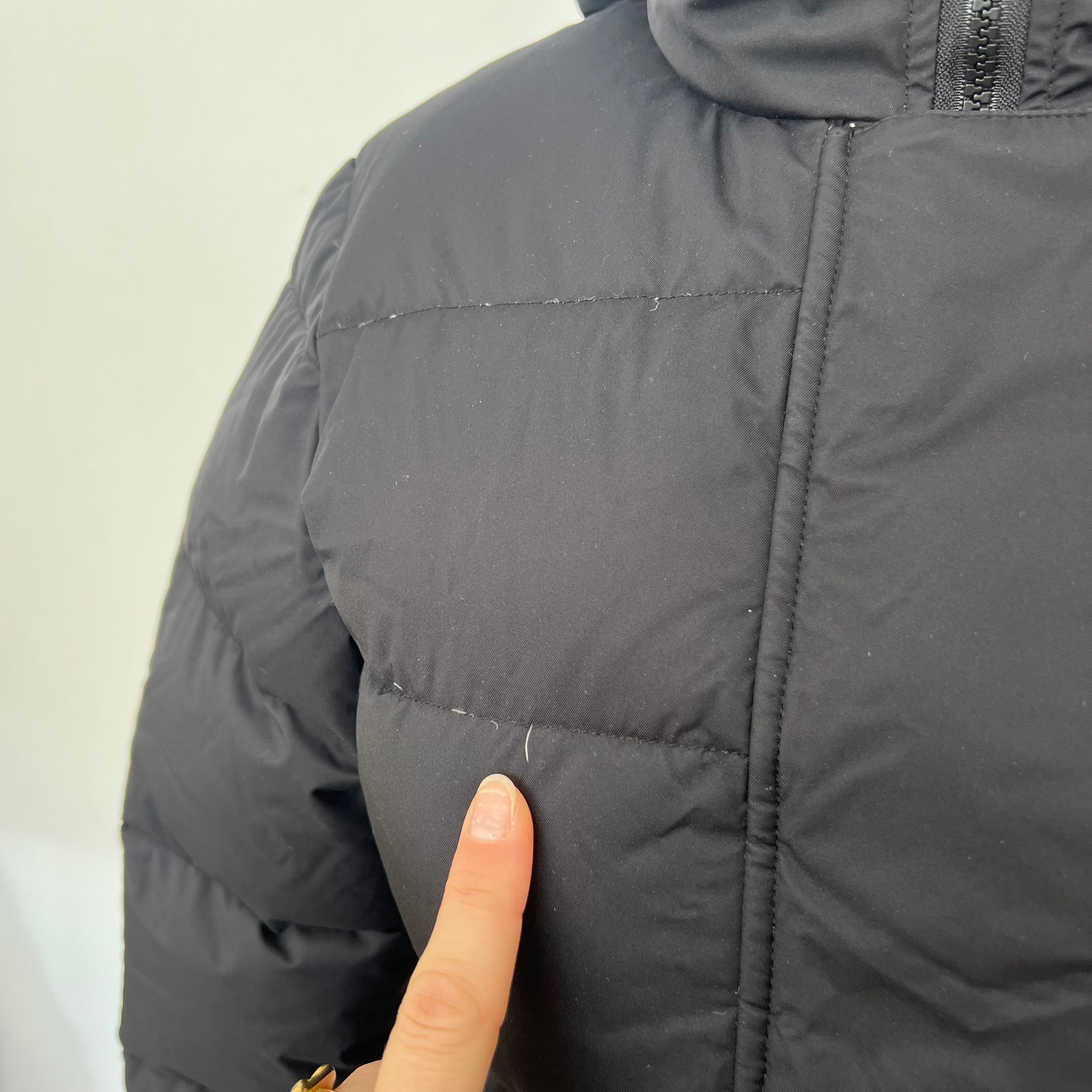Pourquoi dans Les Mal-Aimés? Petite déchirure proche de la poche extérieure droite. Perd légèrement ses plumes. Un bouton manquant (avant dernier à partir du bas). Manque la fourrure sur le capuchon. Voir photos.