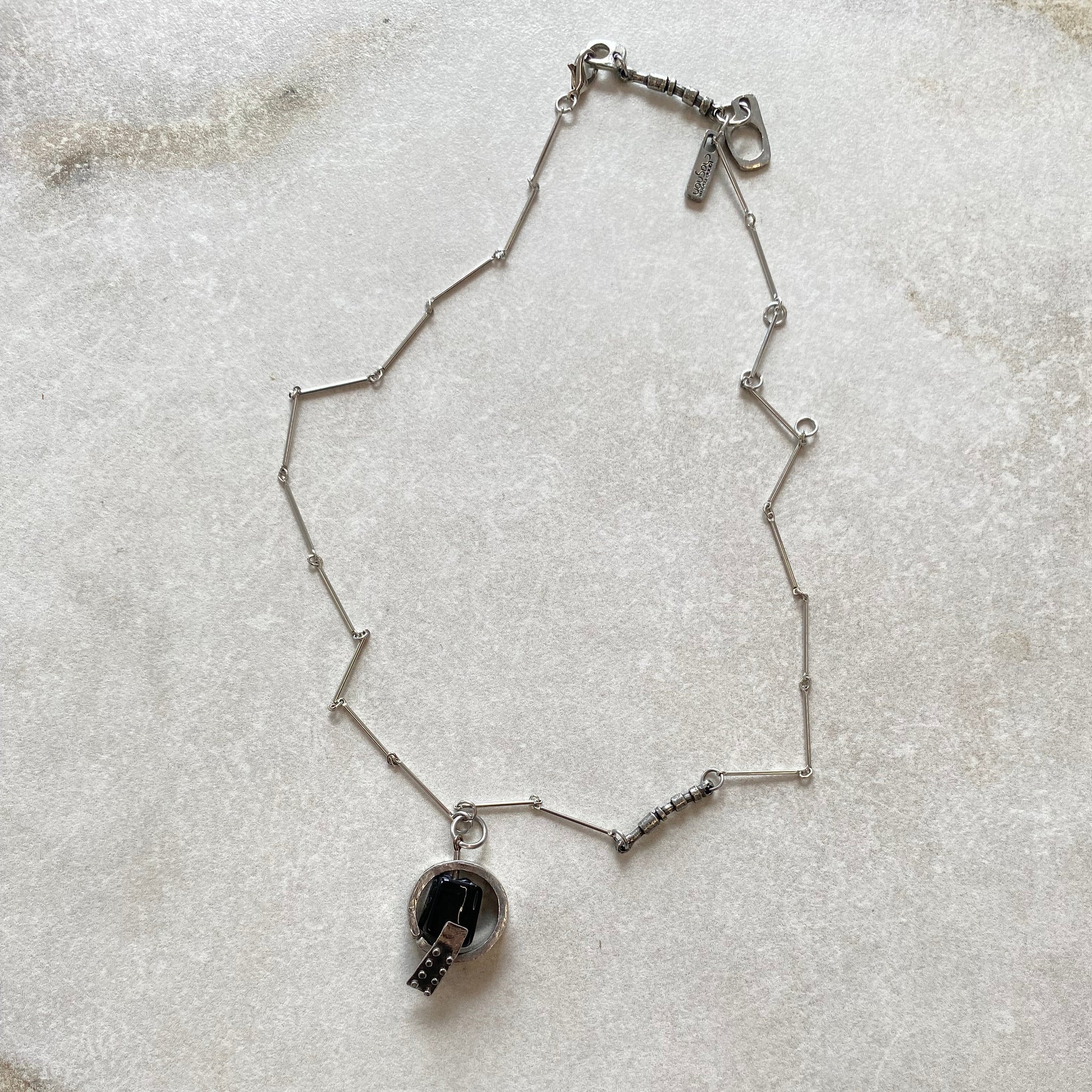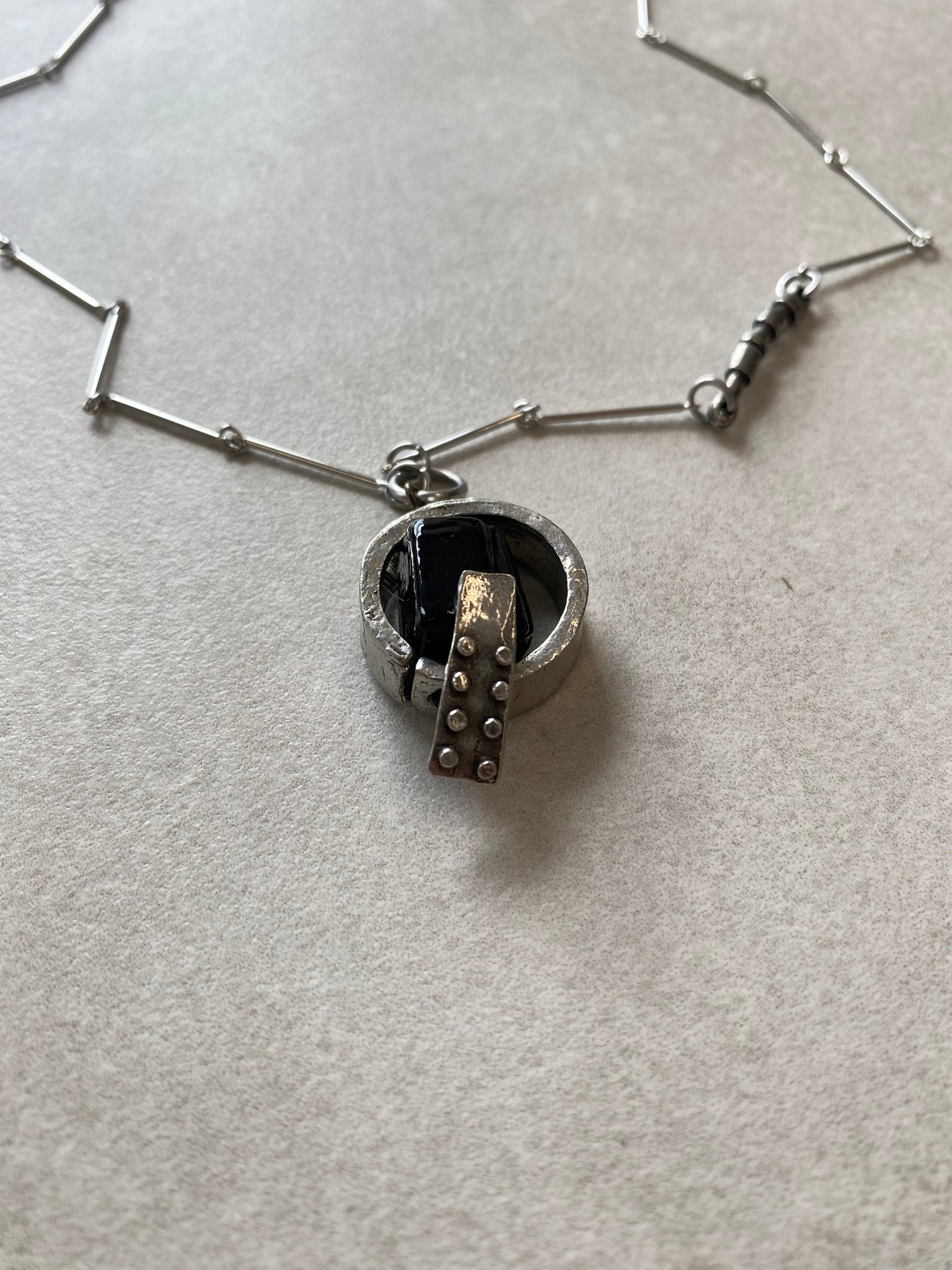 Superbe collier fait à Montréal Anne-Marie Chagnon. Pendentif noir cubique