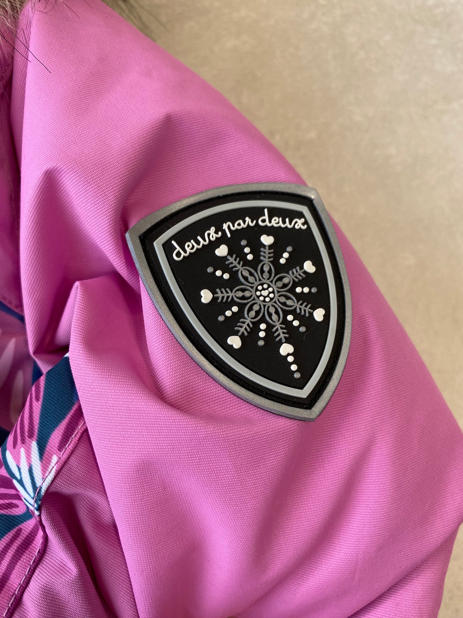 Manteau d'hiver à imprimé de fleurs et de jungle de la marque Deux par Deux. Chaud et résistant, conçu pour affronter l’hiver jusqu’à -30 °C (-22 °F). Doublé en polar (corps, dos, col, capuchon), il offre une excellente isolation en fibres de polyester (capuchon 57 g, corps 170 g, manches 170 g). Le tissu est imperméable (5000 mm) et respirant (5000 g/m²/24h), idéal pour les jeux actifs et les sports d’hiver. Capuchon amovible et ajustable, avec fausse fourrure détachable.