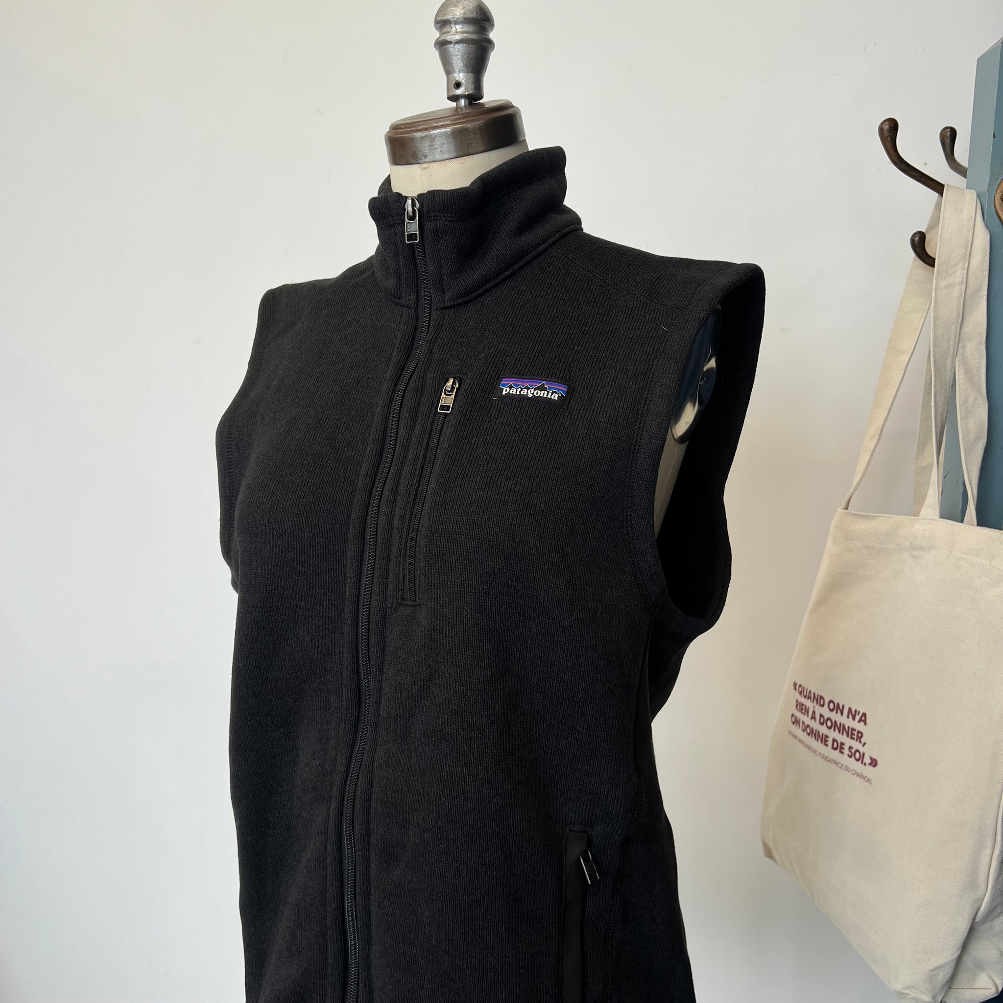 Veste pour homme sans manches de la marque Patagonia modèle Better Sweater. Teint avec un processus à faible impact qui réduit l’utilisation de colorants, d’énergie et d’eau par rapport aux méthodes conventionnelles de teinture en bruyère. Fabriqué dans une usine certifiéeTM équitable. Gilet à fermeture éclair avec col montant. Coutures d’épaule décalées. Deux poches chauffe-mains à fermeture éclair et passepoilées, et une poche de sécurité poitrine gauche à fermeture éclair verticale. Douce bordure en tricot brossé sur les emmanchures et l’ourlet pour plus de confort. D'une valeur de 150$.