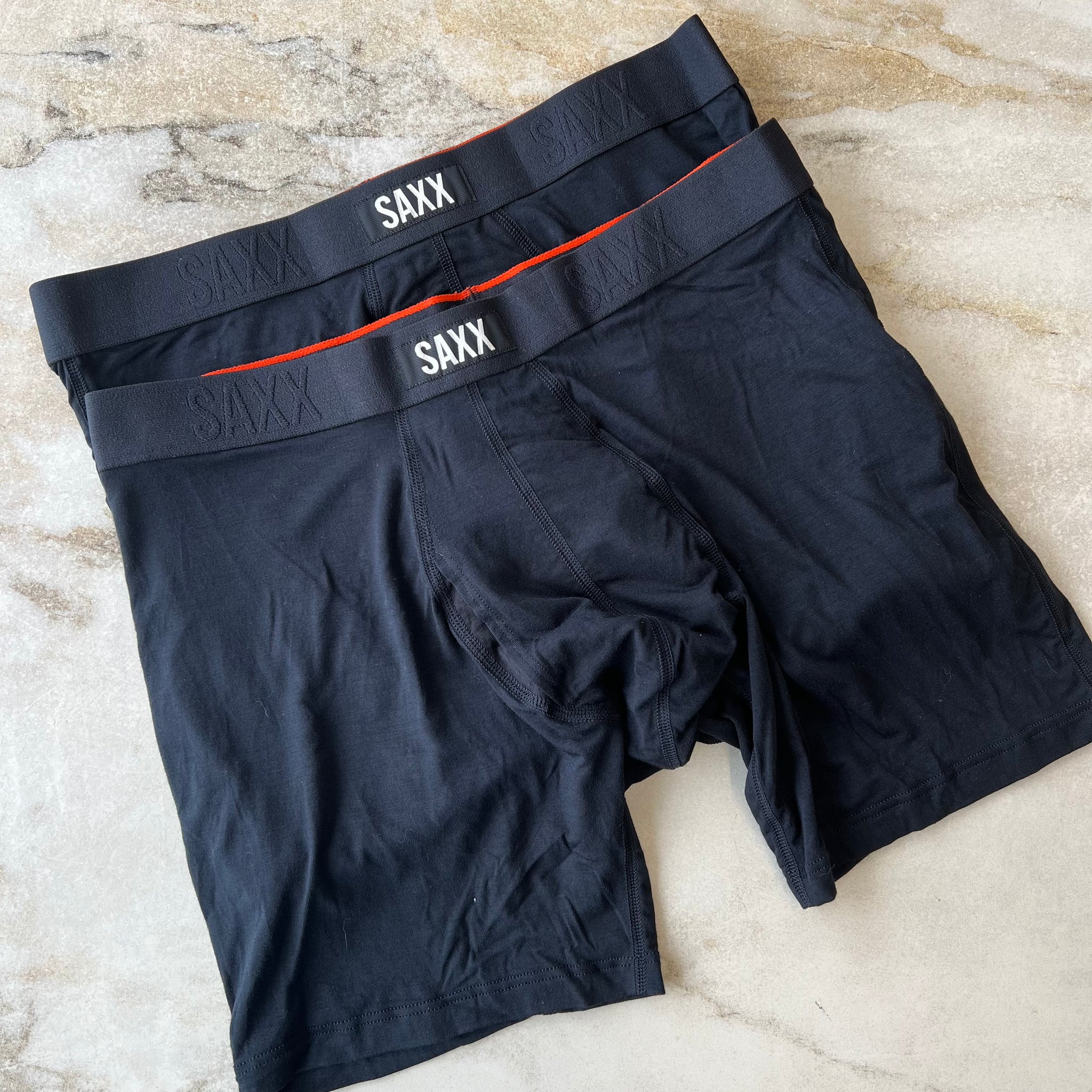 Ensemble de 2 boxeurs court en coton extensible de la marque SAXX modèle Vibe Xtra avec Stop Drop Technology™ intègre l'innovation technologique de détente intégrée dans la poche® Ballpark. Fabriqué en tissu ultra-doux, le Vibe Xtra propose une jambe de mouche et une jambe™ sans ride-up. D'une valeur de plus de 65$.